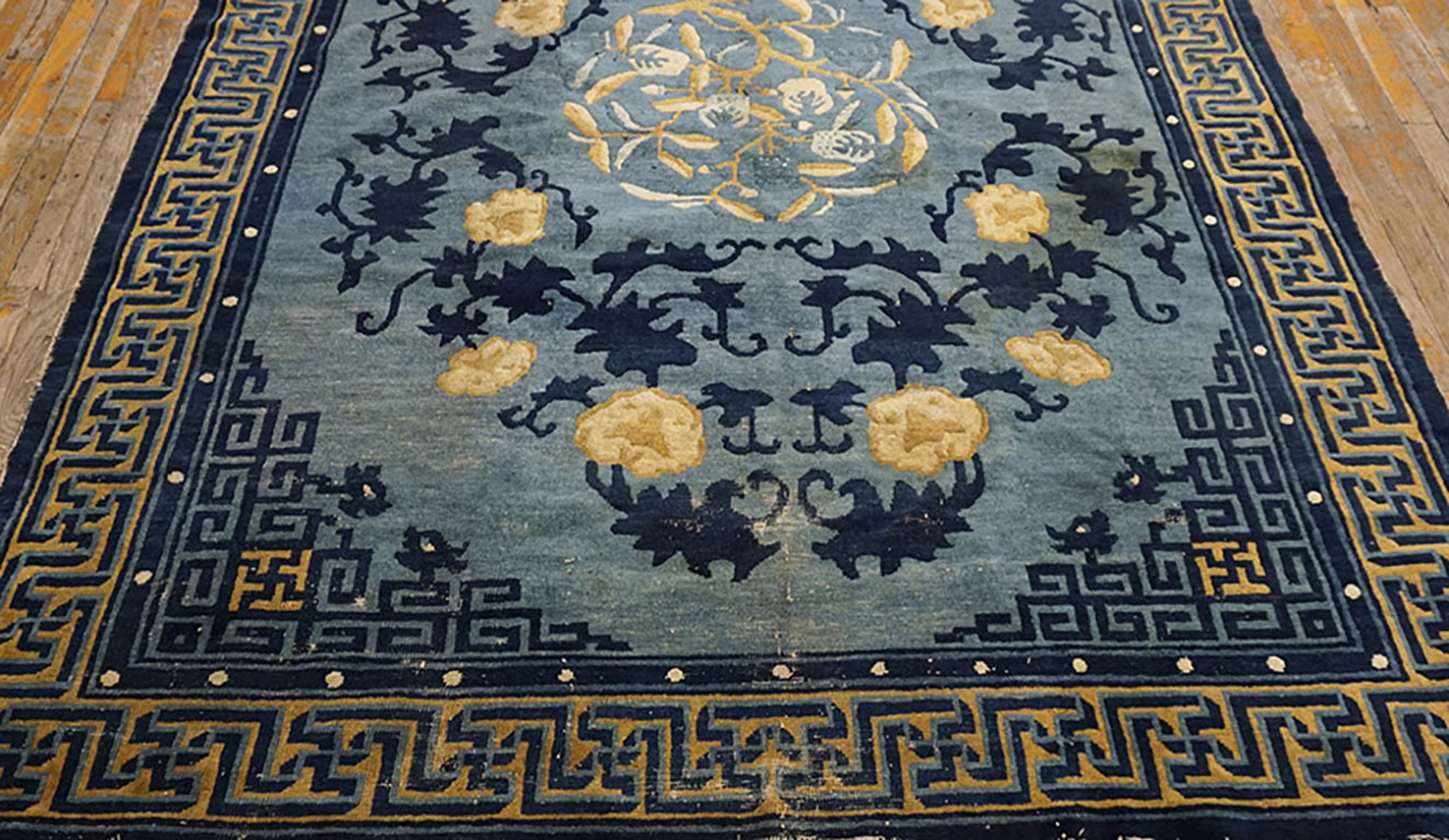 As a genuine artifact from the 1880s, this Peking rug represents a significant piece of textile history. The quality of the knotting and the enduring vibrancy of the natural dyes confirm its status among highly collectible antique rugs. It stands as a testament to the enduring elegance and cultural significance of Chinese artistry.