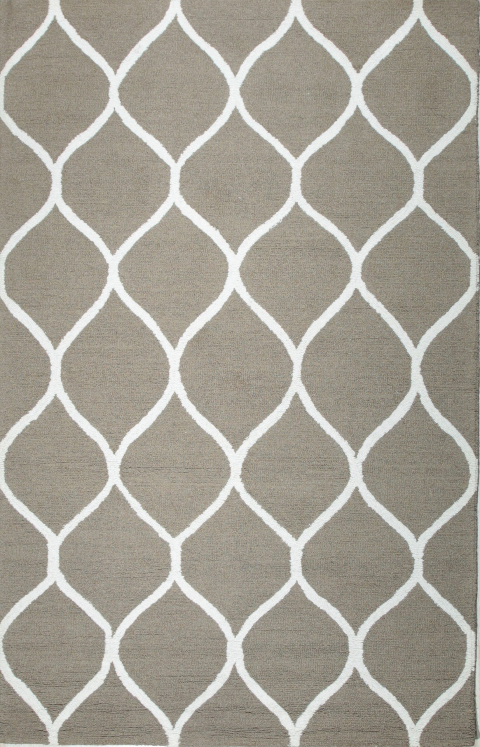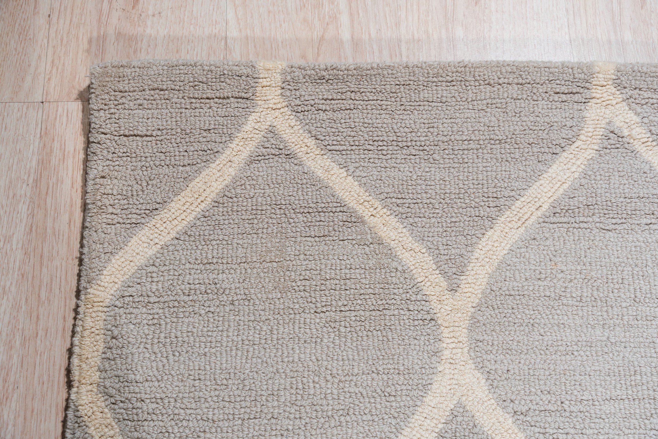 Classic Cozy Light Brown Hand Tufted Wool Rug, Country of Origin: India. This piece exemplifies the modern output from skilled artisans in India. The light brown field provides a versatile neutral base, perfectly complemented by the crisp white trellis design. The quality of modern Indian rugs continues to impress collectors globally.