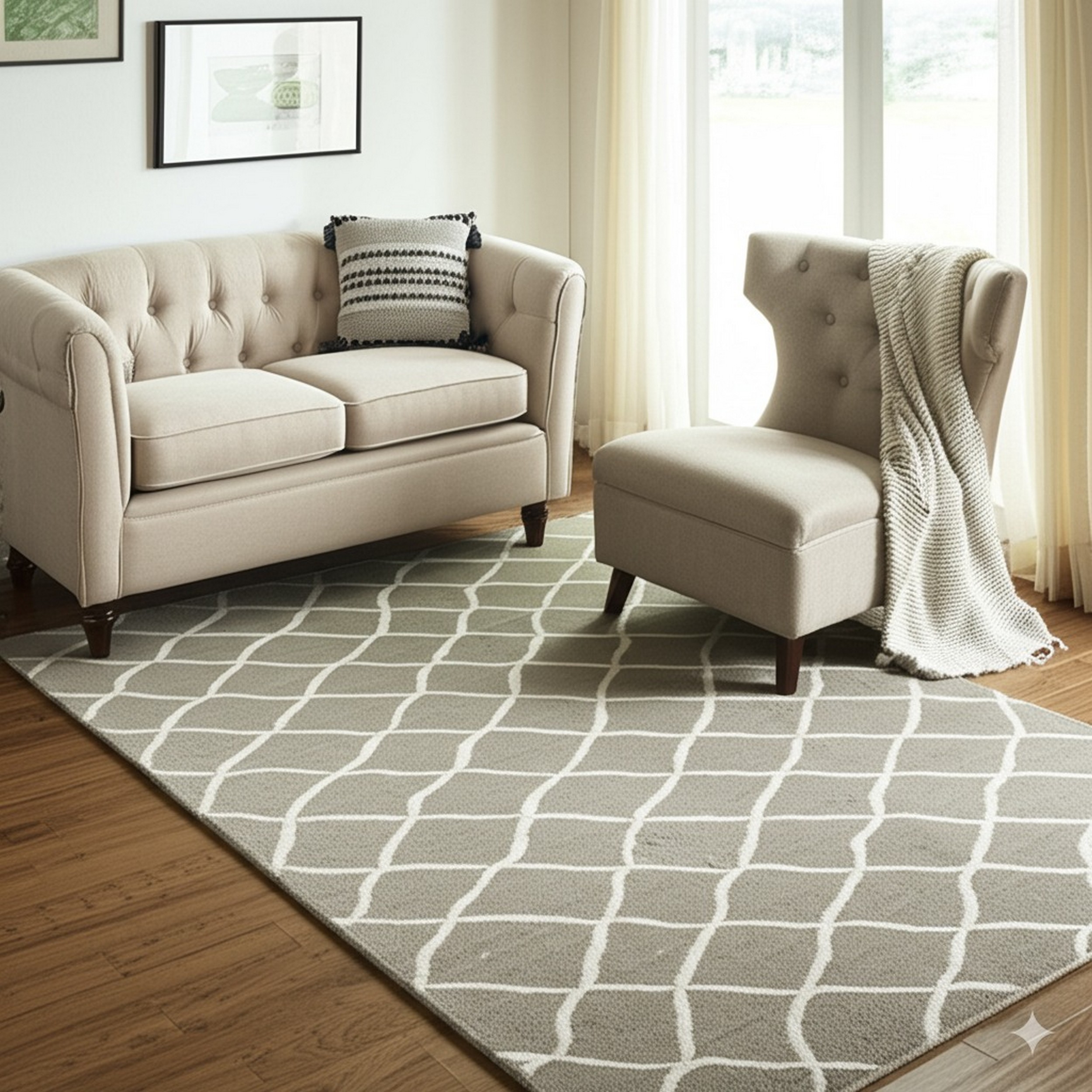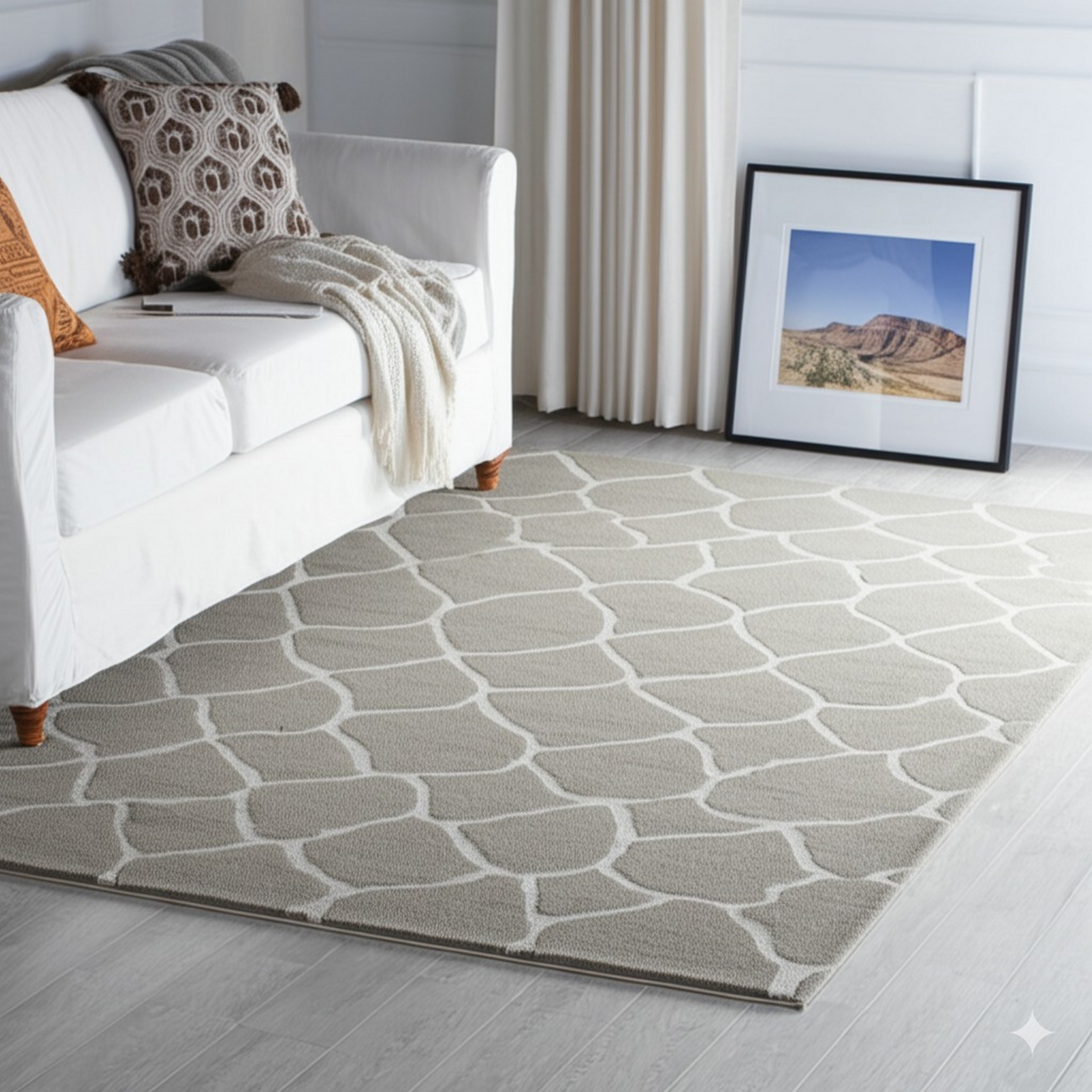 While the image suggests a versatile size, this pattern is particularly effective in defining smaller zones, such as entryways or bedside placements. Its neutral palette and engaging pattern make it a foundational element for any room seeking quiet sophistication. Explore our collection of small scatter size rugs to find the perfect fit for those transitional spaces in your home.