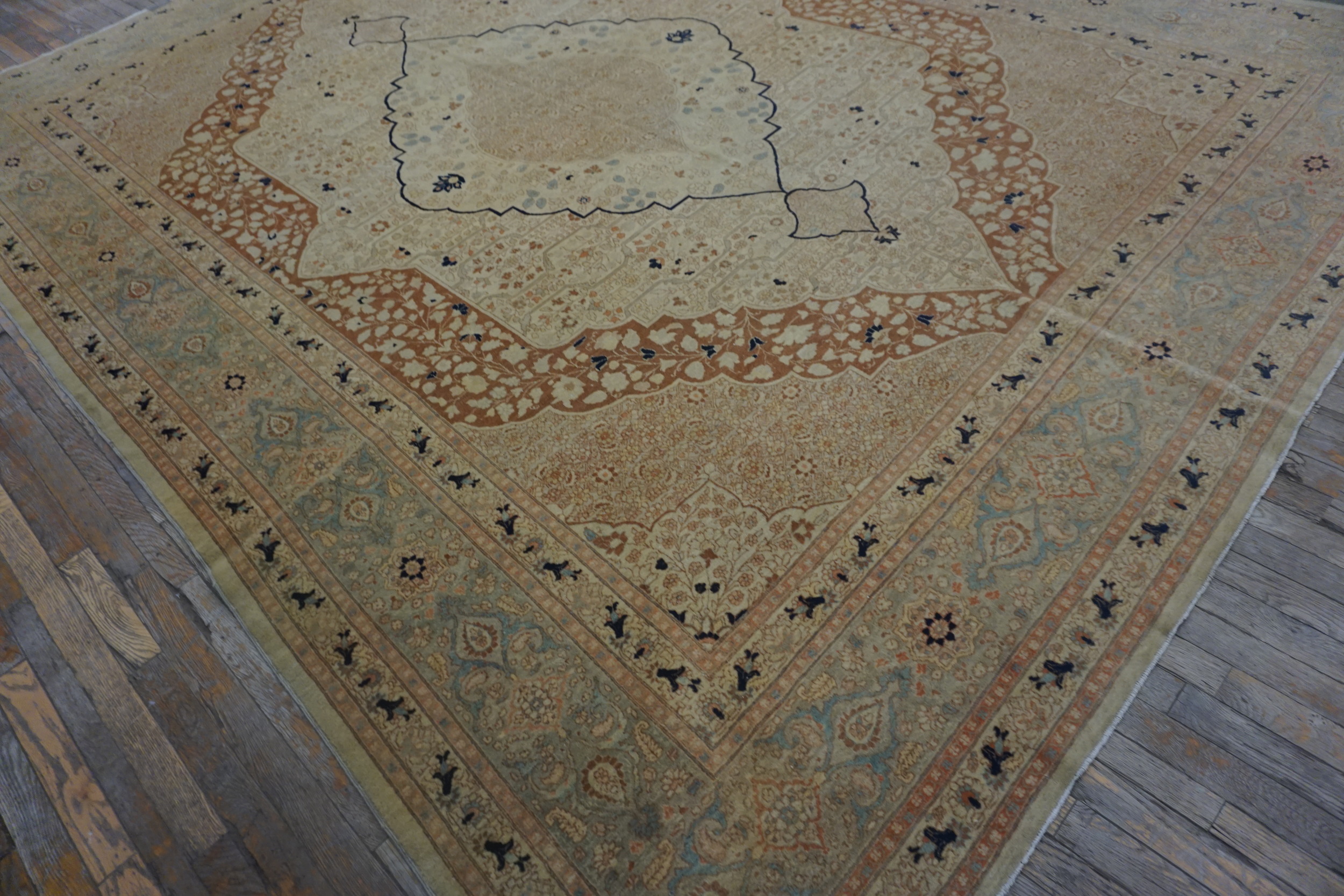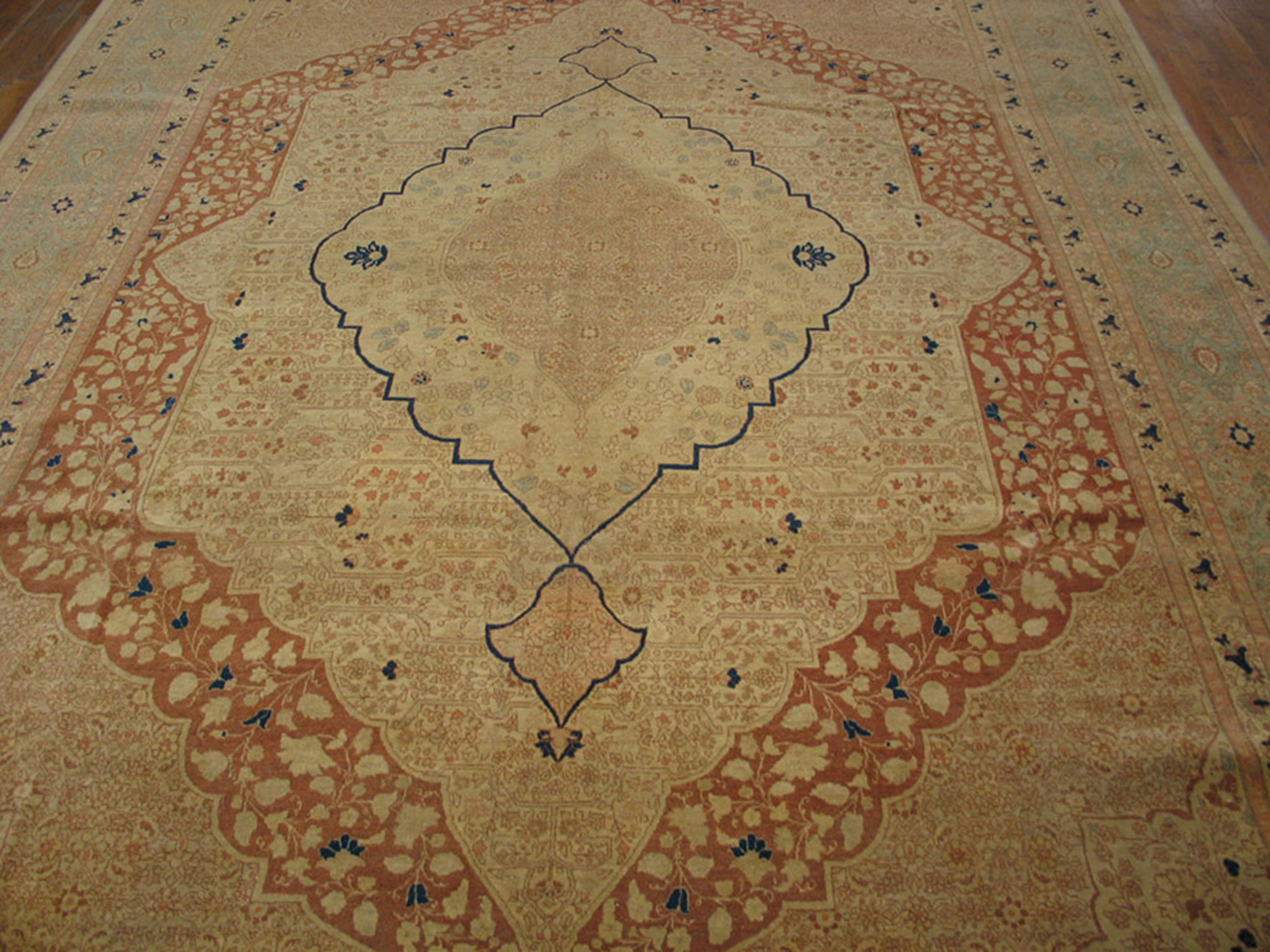 Preserved in remarkable condition for its age, this Tabriz retains a soft wool pile and excellent structural integrity. Its substantial dimensions qualify it as one of the highly sought-after room size rugs, capable of anchoring a formal living space or grand reception hall with historical gravitas and elegance.