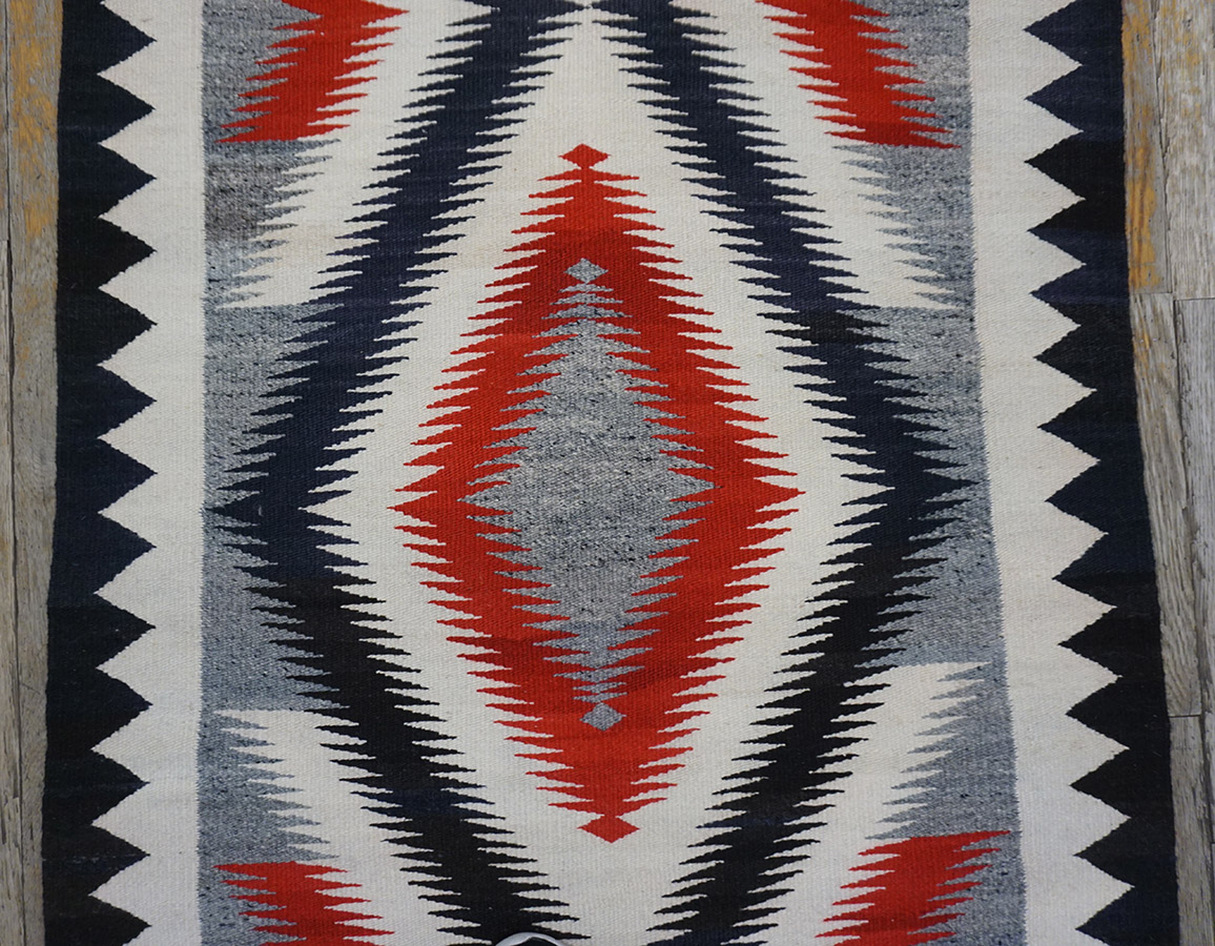 Navajo Wool Small Scatter Size Flat Weave 1930s Rectangle Antique Native American Gray Color Rug, Circa Date: 1930s. This exceptional example of Native American rug weaving captures the powerful geometric aesthetic inherent to the Navajo tradition. Its flat weave construction emphasizes the crispness of the design, making it a compelling piece among antique rugs that define early 20th-century textile art.