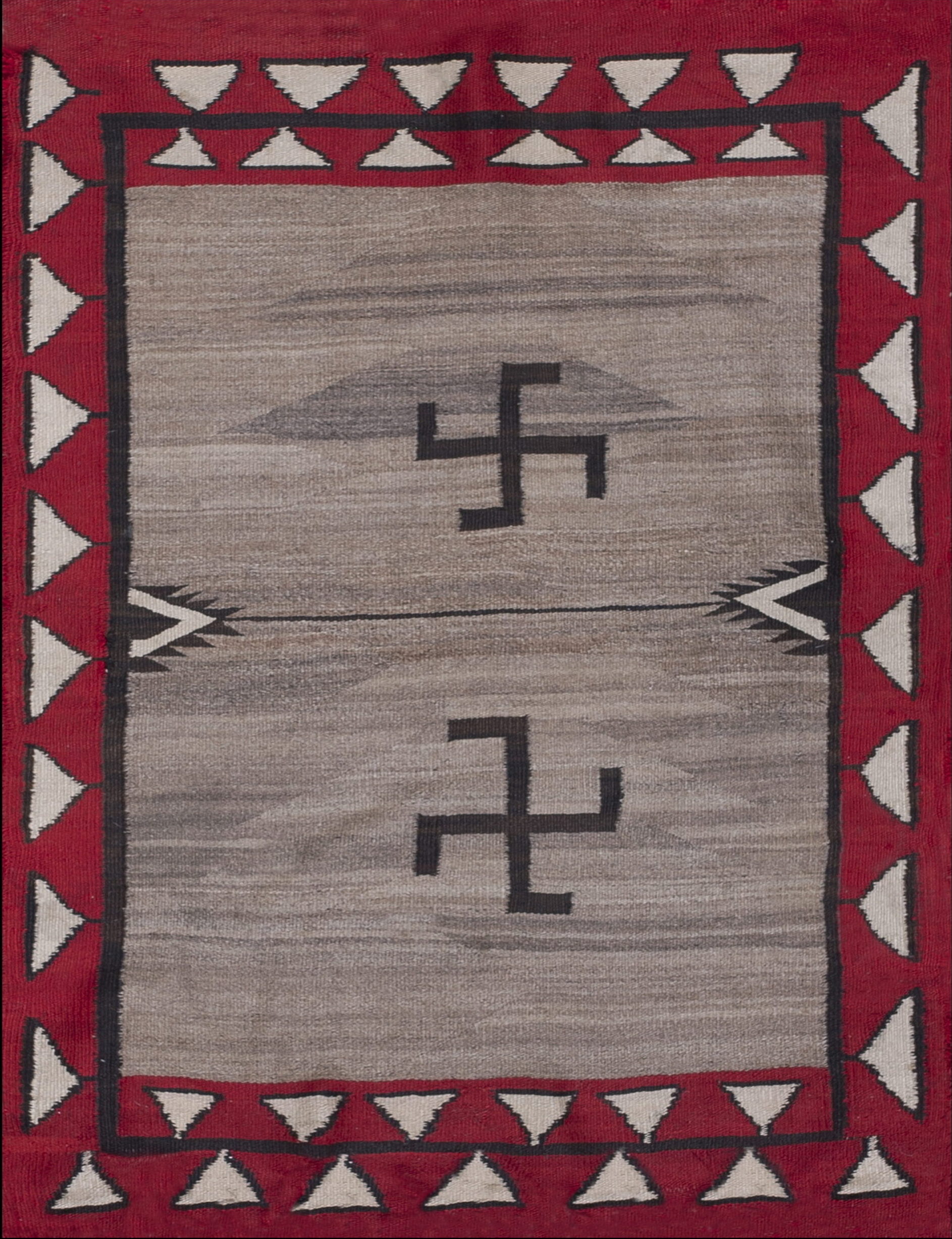 Antique Navajo Native American Swastika Pattern Flat Weave Rug, Circa Date: 1930s. This exceptional piece of Native American textile art represents the pinnacle of early 20th-century weaving traditions, offering a profound cultural statement. Collectors seeking authentic antique rugs often prize these flat-weave examples for their durability and powerful design integrity.