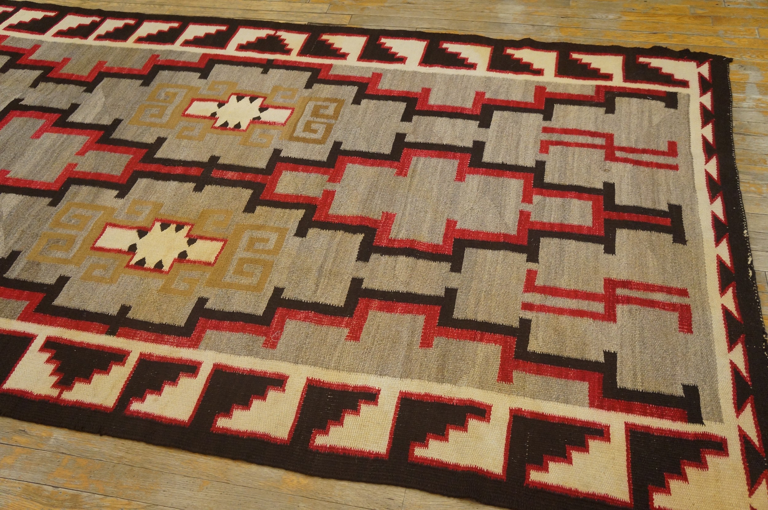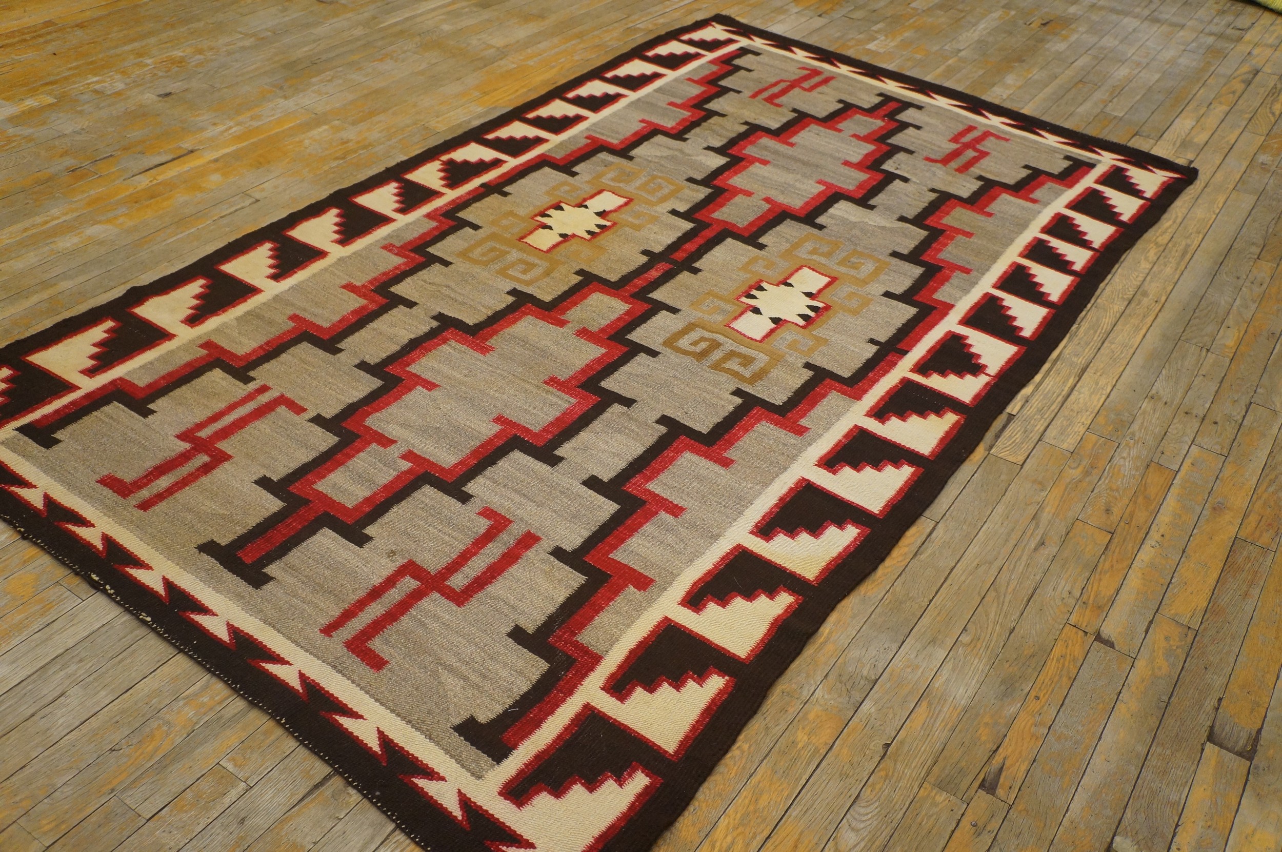 Far more than mere floor covering, this Navajo textile is a piece of wearable art, reflecting the cultural narrative of its time. It is a highly collectible item for those seeking authentic antique rugs that blend powerful graphic design with a rich, documented history.