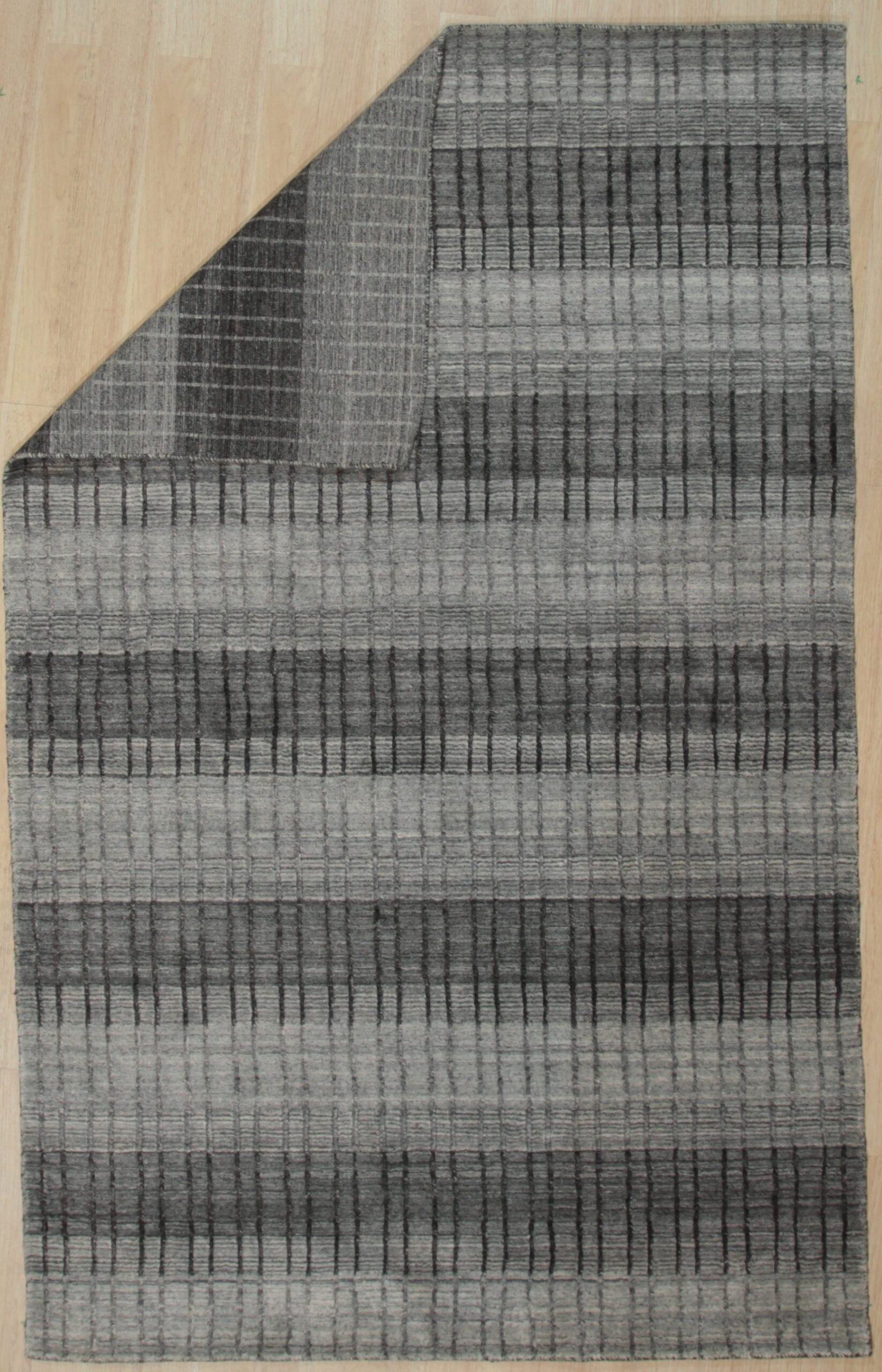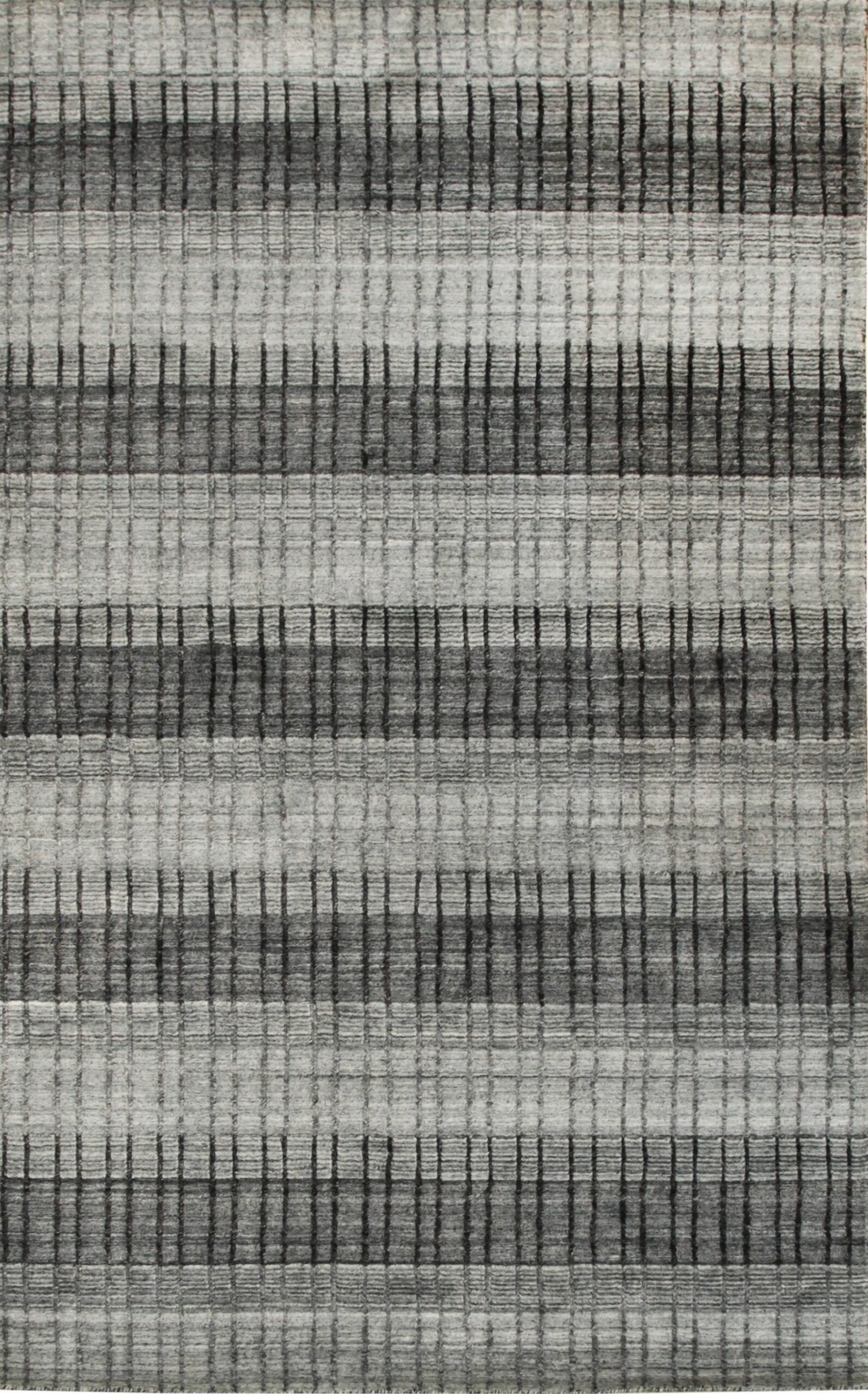 The palette is defined by sophisticated tonal variations of charcoal and light gray, creating a subtle yet impactful striped effect. The unique blend of wool and luminous viscose enhances the depth and softness underfoot, making it an ideal choice for those seeking refined gray color rugs that anchor a space without overwhelming it.