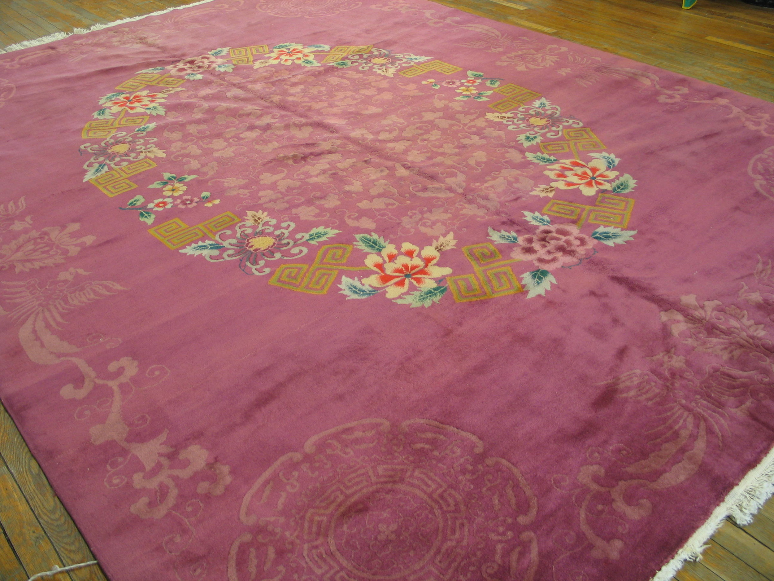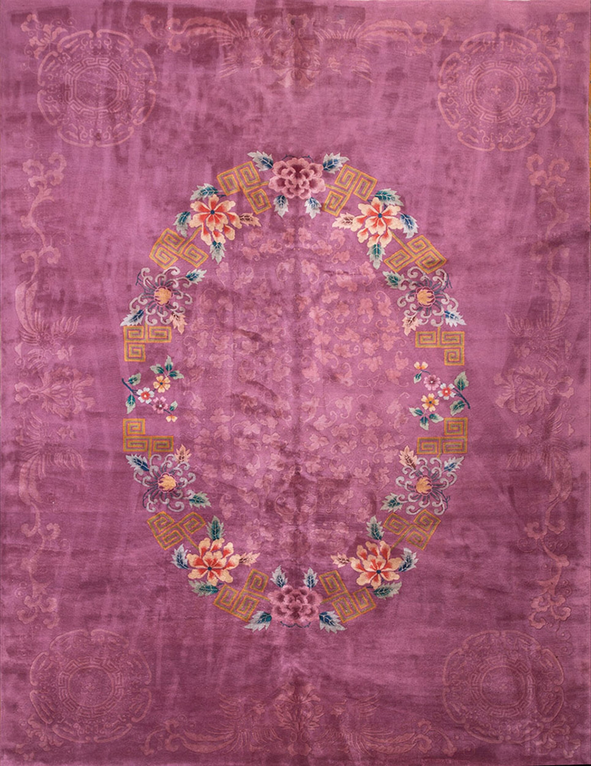 The luxurious wool pile and expert knotting speak to the high quality expected of Chinese textiles produced during this influential decade. This rug is a superb example of how Eastern artistry adapted to Western design trends, offering collectors a vibrant, historically significant piece among our finest antique rugs.
