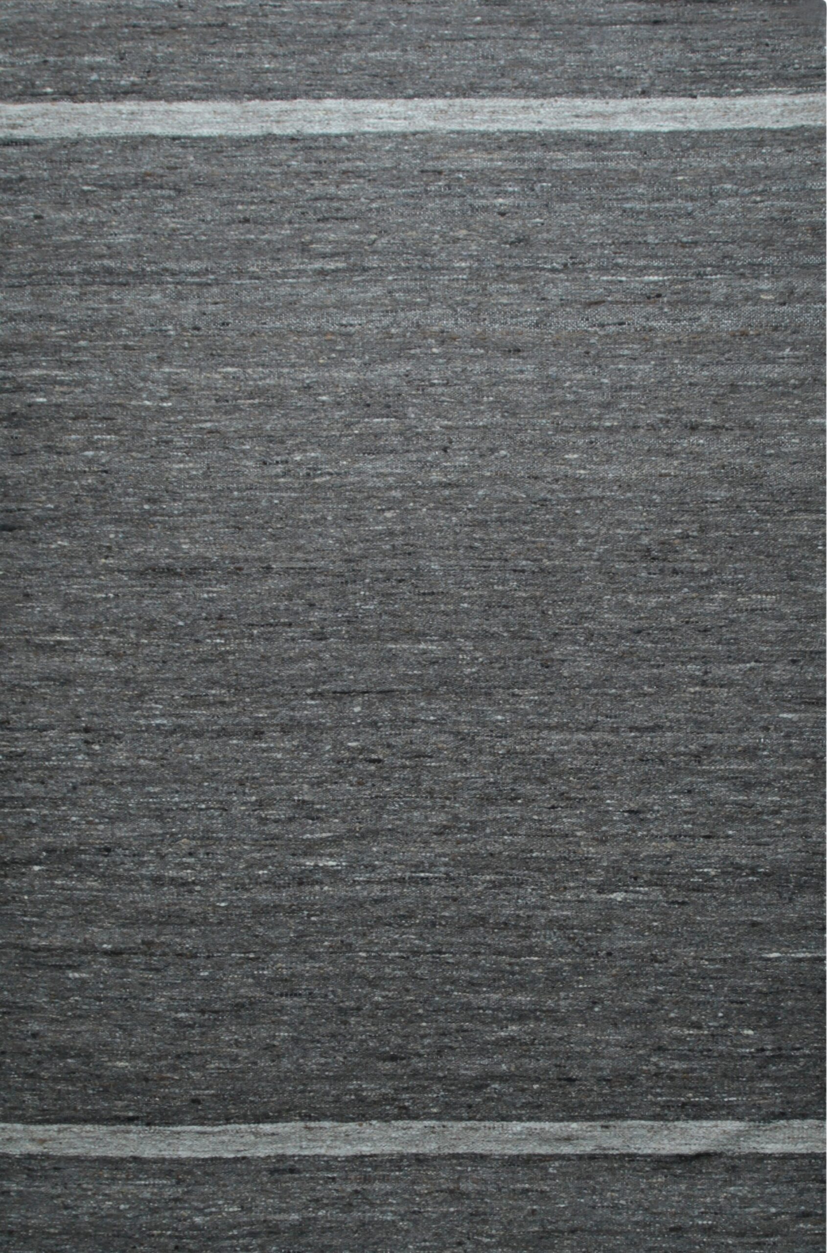 The palette is a sophisticated blend of charcoal and light silver fibers, creating a nuanced, mottled effect that prevents the color from appearing monolithic. This subtle variation is crucial for integrating the piece seamlessly into diverse interiors, making it a standout among gray color rugs. A single, slender ivory stripe near the border provides a crisp, linear contrast to the otherwise organic texture.