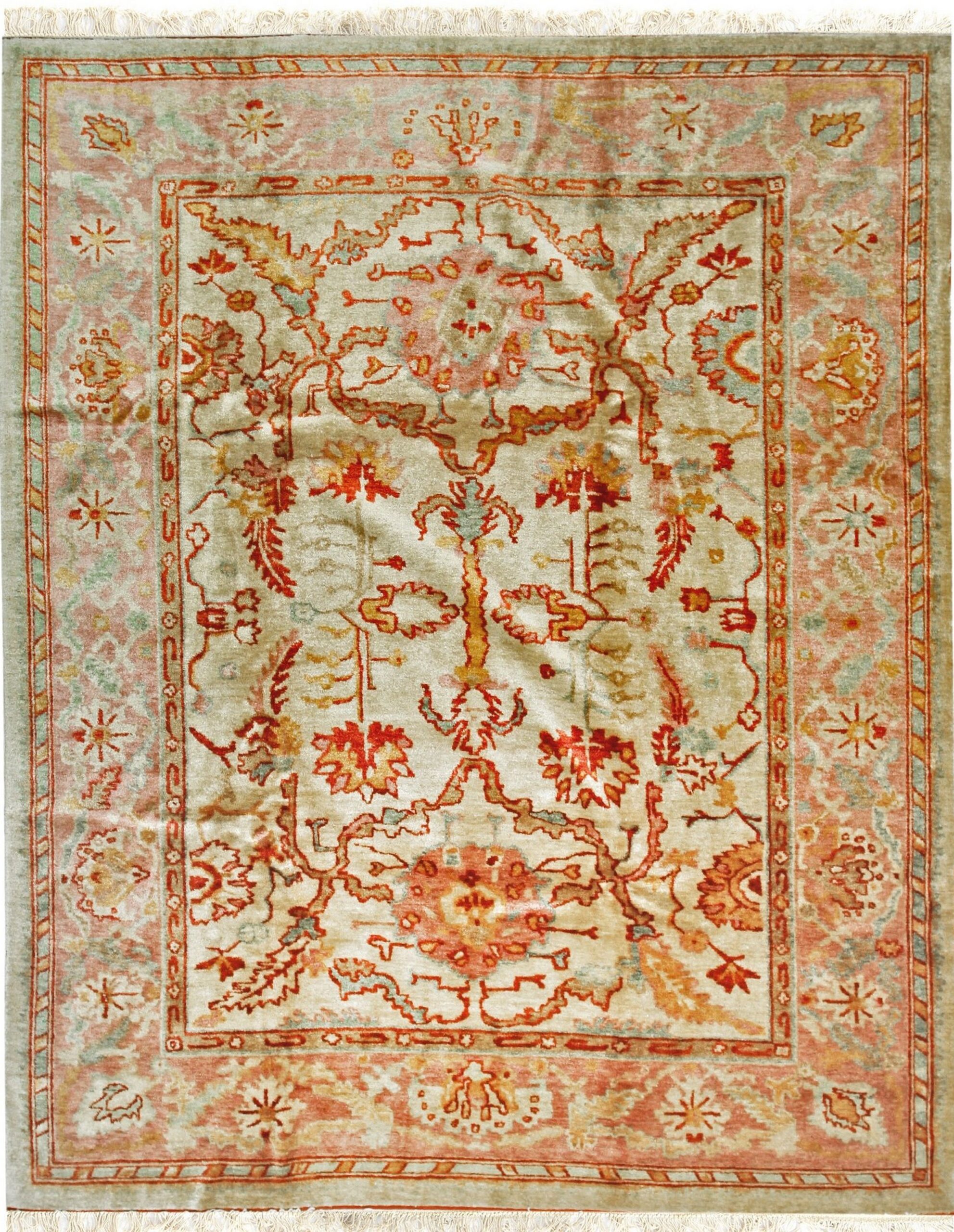 The expansive field is dominated by a warm, luminous beige, creating a neutral yet rich foundation that complements a wide range of contemporary and classical interiors. This subtle coloration places it among our most desirable ivory beige cream white color rugs. The open, all-over pattern features stylized palmettes and delicate vinery rendered in soft terracotta, faded rust, and gentle sage green accents, providing visual depth without overwhelming the eye.