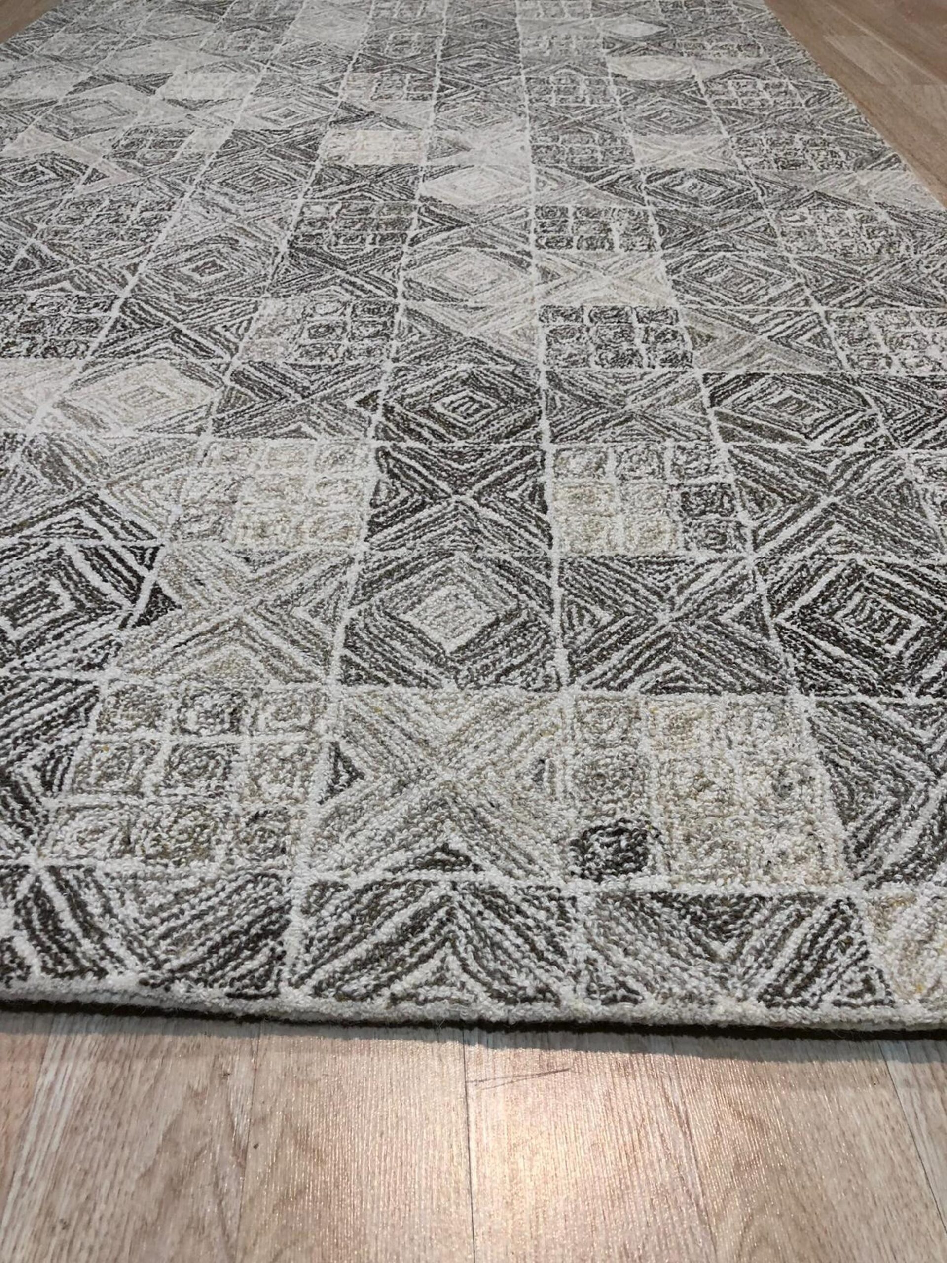 Cozy Quinn Gray Hand Tufted Wool Rug, Country of Origin: India. This piece exemplifies the modern output of Indian rugs. It features a highly textural, dense wool pile, constructed for both comfort and resilience in high-traffic areas. The hand-tufted technique provides a substantial feel underfoot, making it an ideal anchor for contemporary settings.