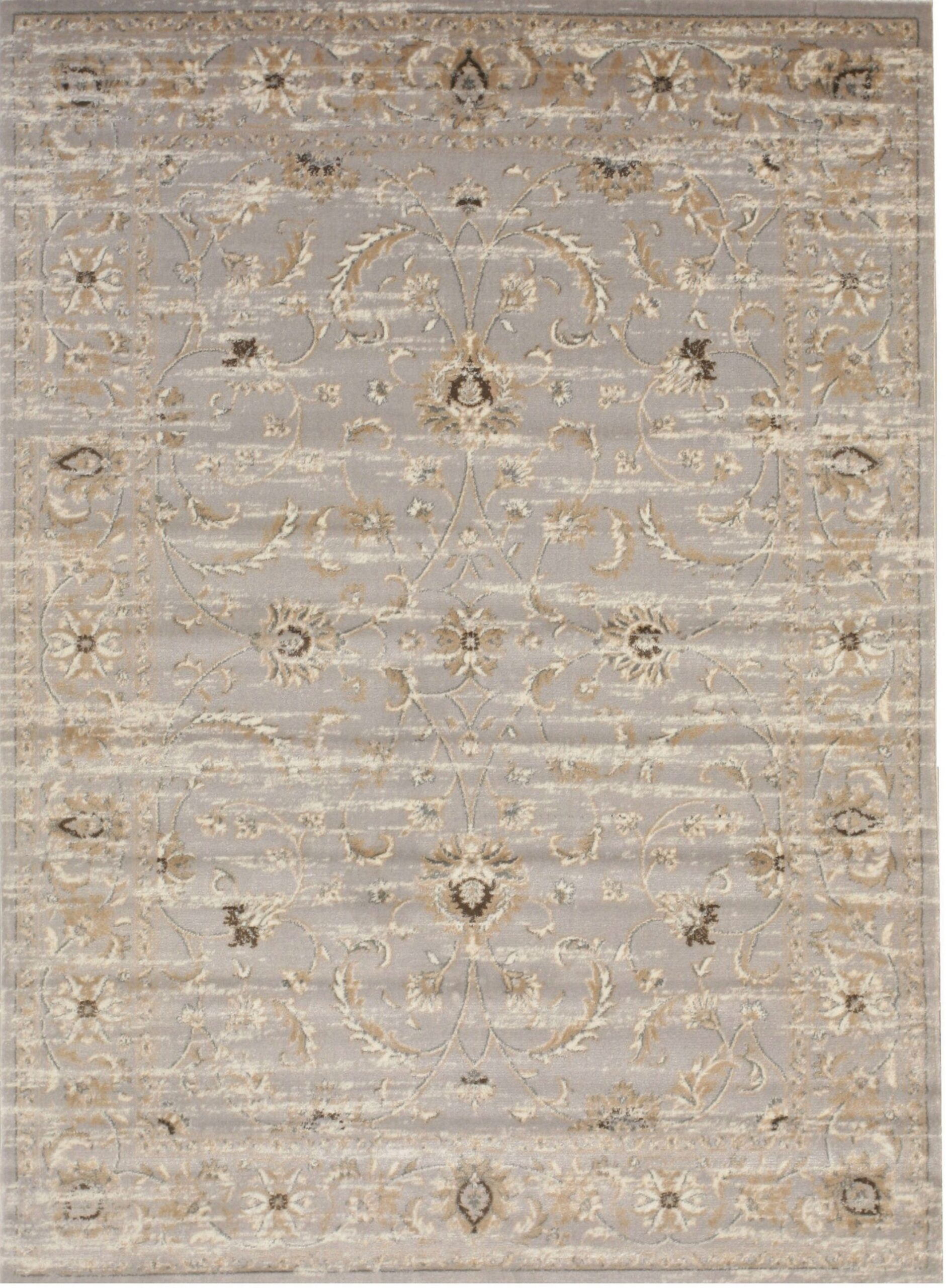 Cozy Zinnia Gray Machine Made Rug, Country of Origin: Turkey. This elegant piece offers a contemporary interpretation of classical ornamental design, rendered in a sophisticated, muted palette. The soft, silvery gray color rugs foundation is highlighted by distressed accents of cream and warm taupe, providing depth and textural interest.
