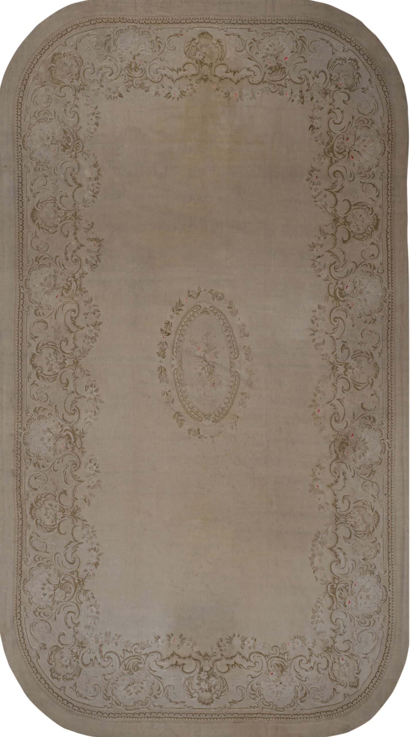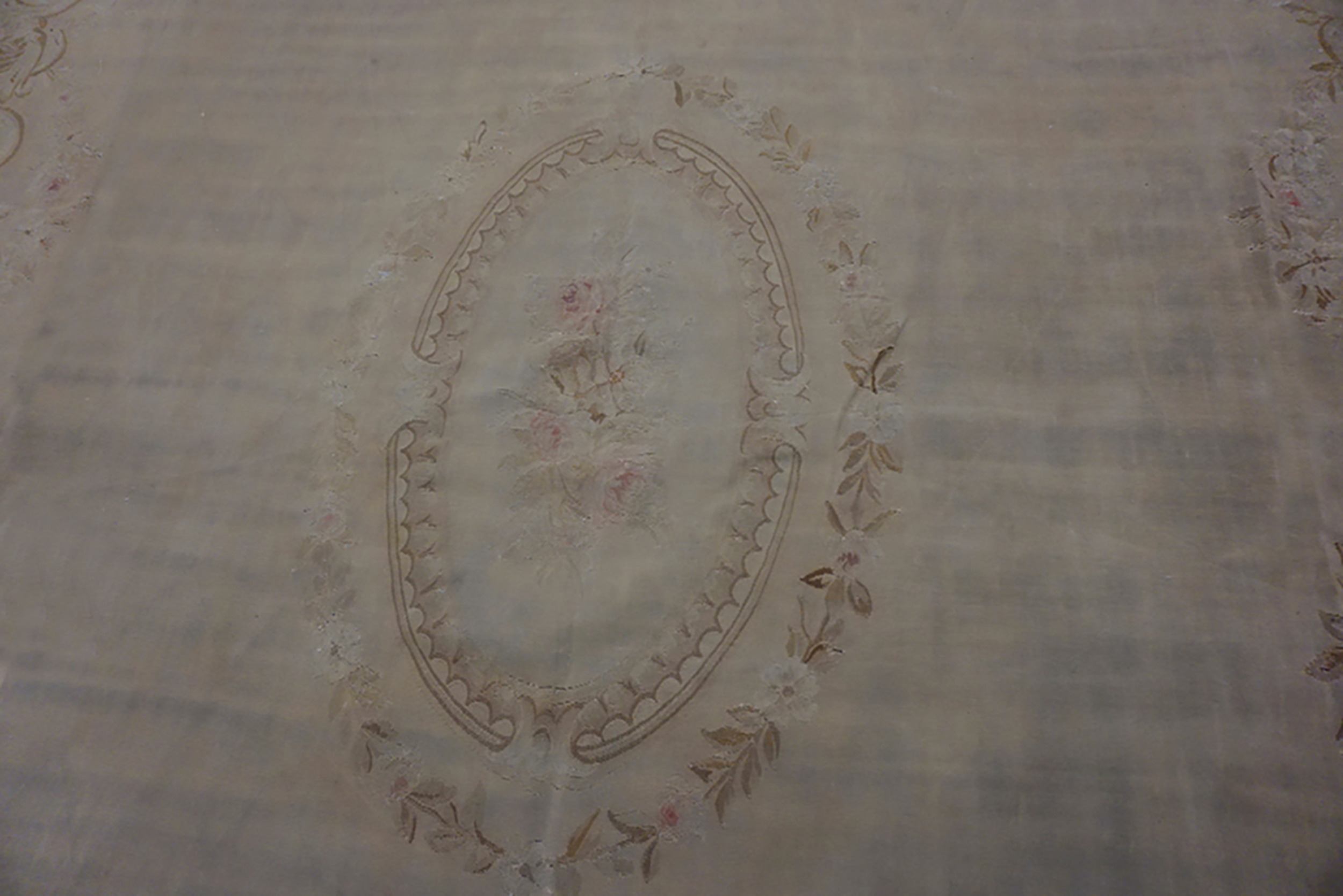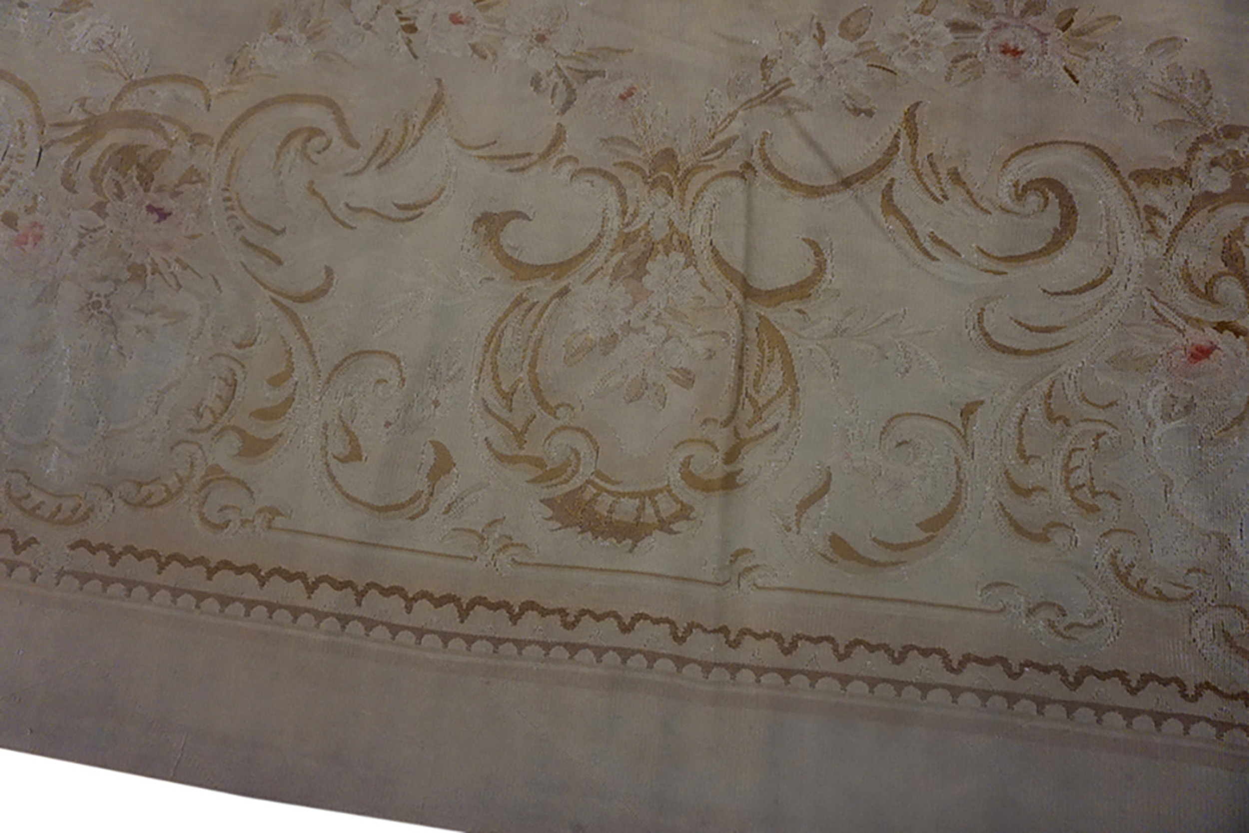 Cream Floral Antique Early 19th Century Large Size French Aubusson Carpet