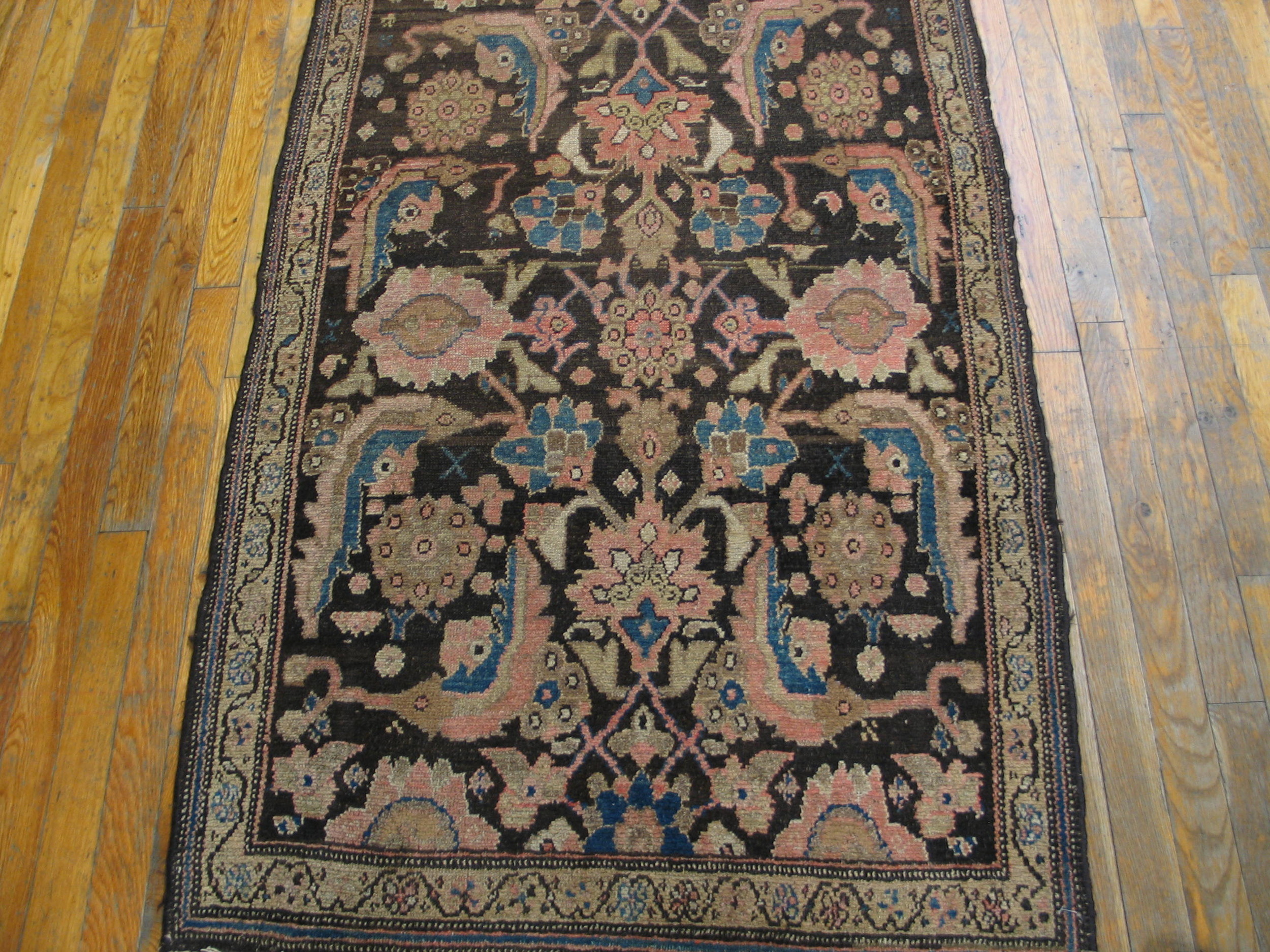 Antique Malayer Persian Knotted Rug, Country of Origin: Iran / Persia, Circa Date: 1890s. This exceptional example of malayer weaving originates from the Hamadan region of Western Persia. Known for their robust construction and deep, saturated dyes, Malayer rugs represent a sophisticated blend of village and city design influences.