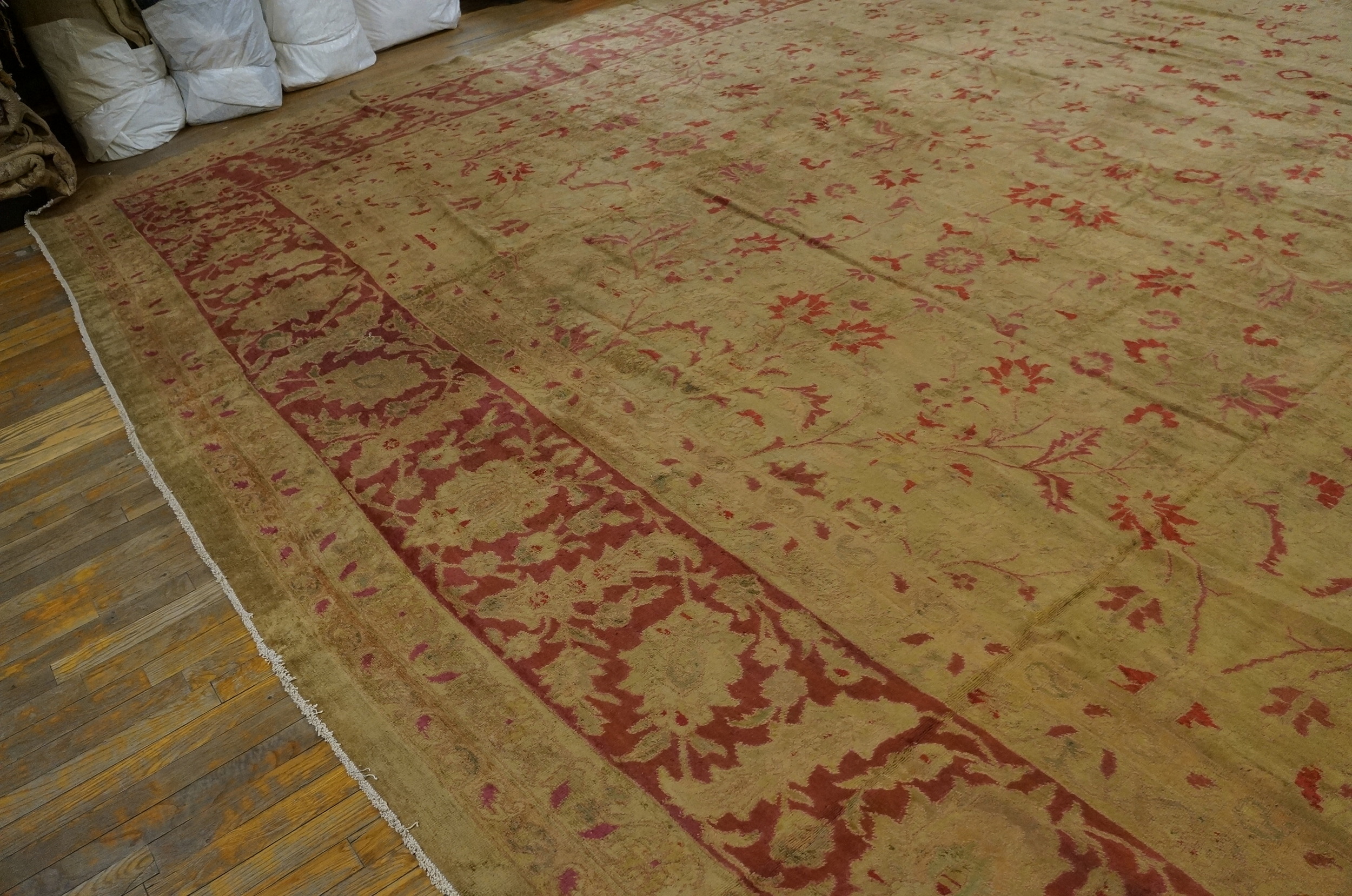 Antique Sultanabad Oversized Large Big Wool Ivory Rug, Circa Date: 1930s. This magnificent example of Sultanabad rugs showcases the grand scale and sophisticated palette characteristic of Persian revival weaving from this era. Its impressive dimensions classify it as a true large oversized rug, ideal for anchoring a substantial formal space.