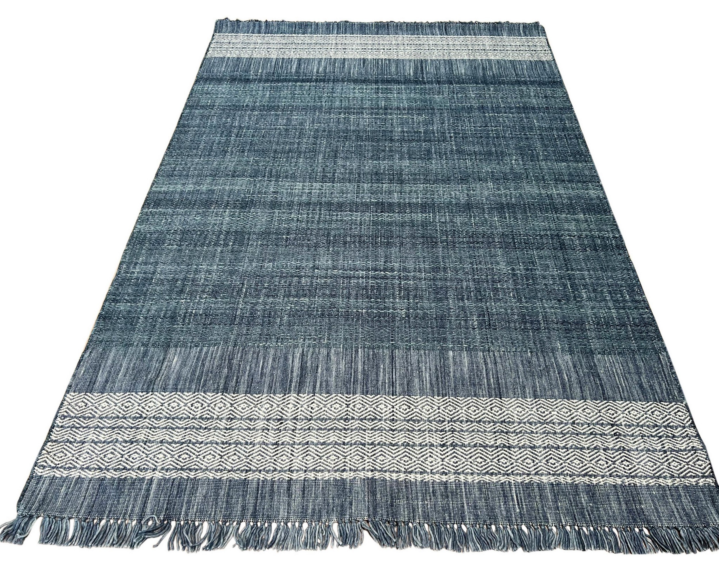 Delicate Elena Blue Flatweave Wool Rug, Country of Origin: India. This exceptional flatweave piece is rendered in soft wool, offering a sophisticated, low-profile foundation for any contemporary space. The meticulous construction, characterized by tightly woven fibers, exemplifies the quality and craftsmanship inherent in Indian rugs.