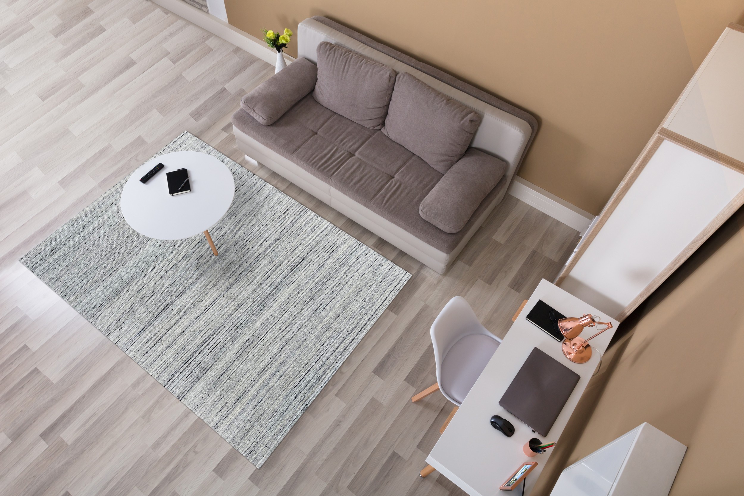 The horizontal striping is incredibly fine, almost appearing as a textural variation rather than a bold pattern, lending a sophisticated, architectural quality to the composition. This quiet elegance makes it a standout selection among current new area rugs designed for modern living environments.