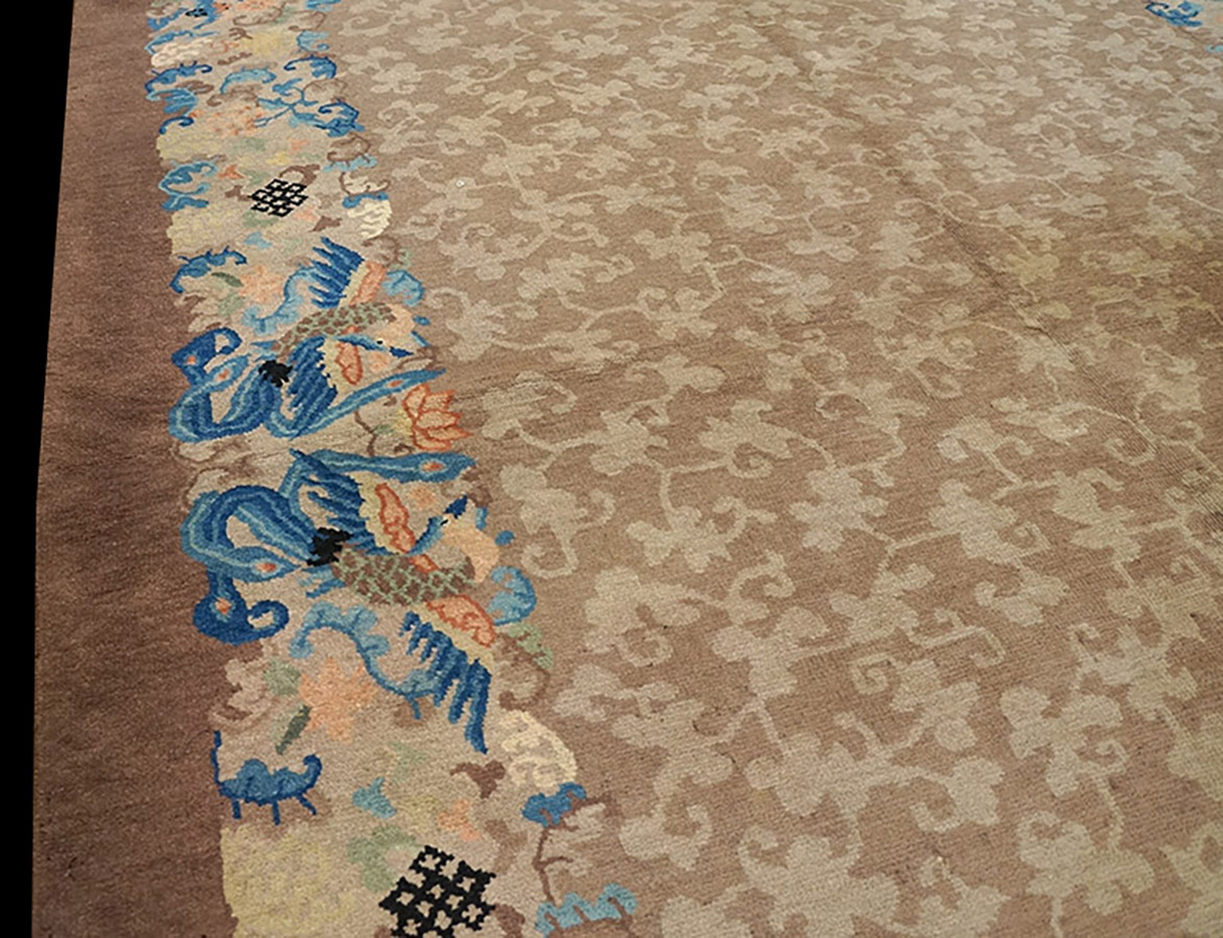 Earth Tone Allover Cloud Band Antique Chinese Bird Of Paradise Design Peking Rug