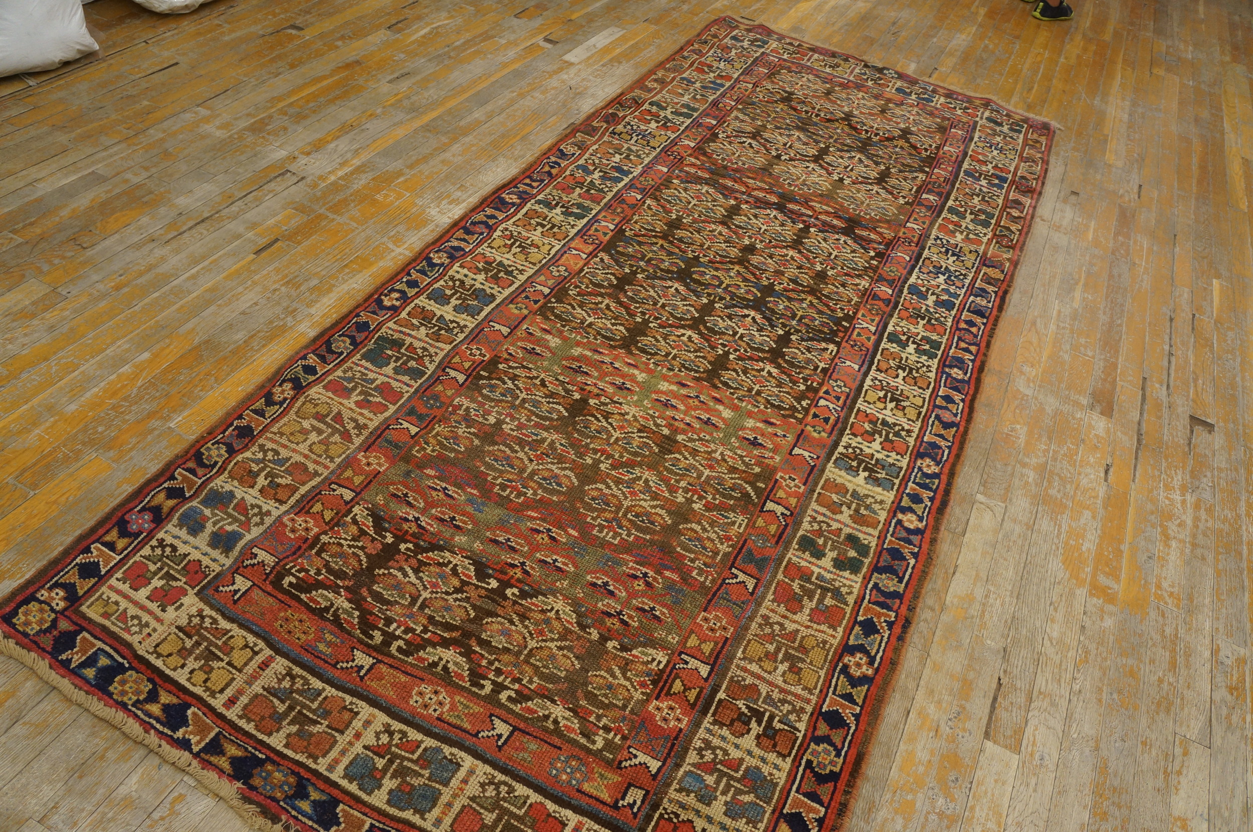 Woven in a long, narrow format, this textile functions perfectly as one of the finest examples of hallway runner rugs. Its exceptional length and rich patina speak to a century of history, offering an authentic, sophisticated grounding element for a contemporary or traditional interior space.