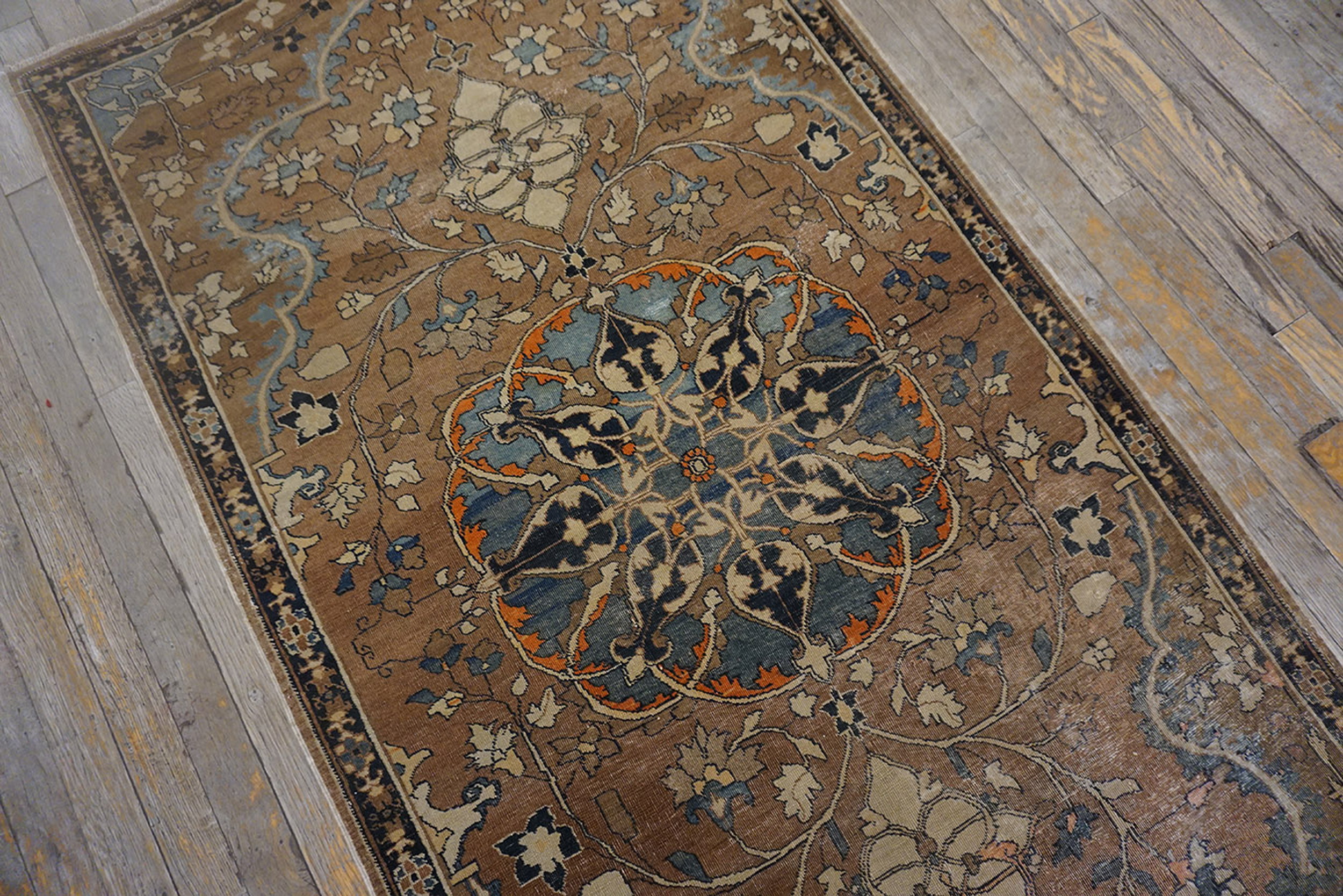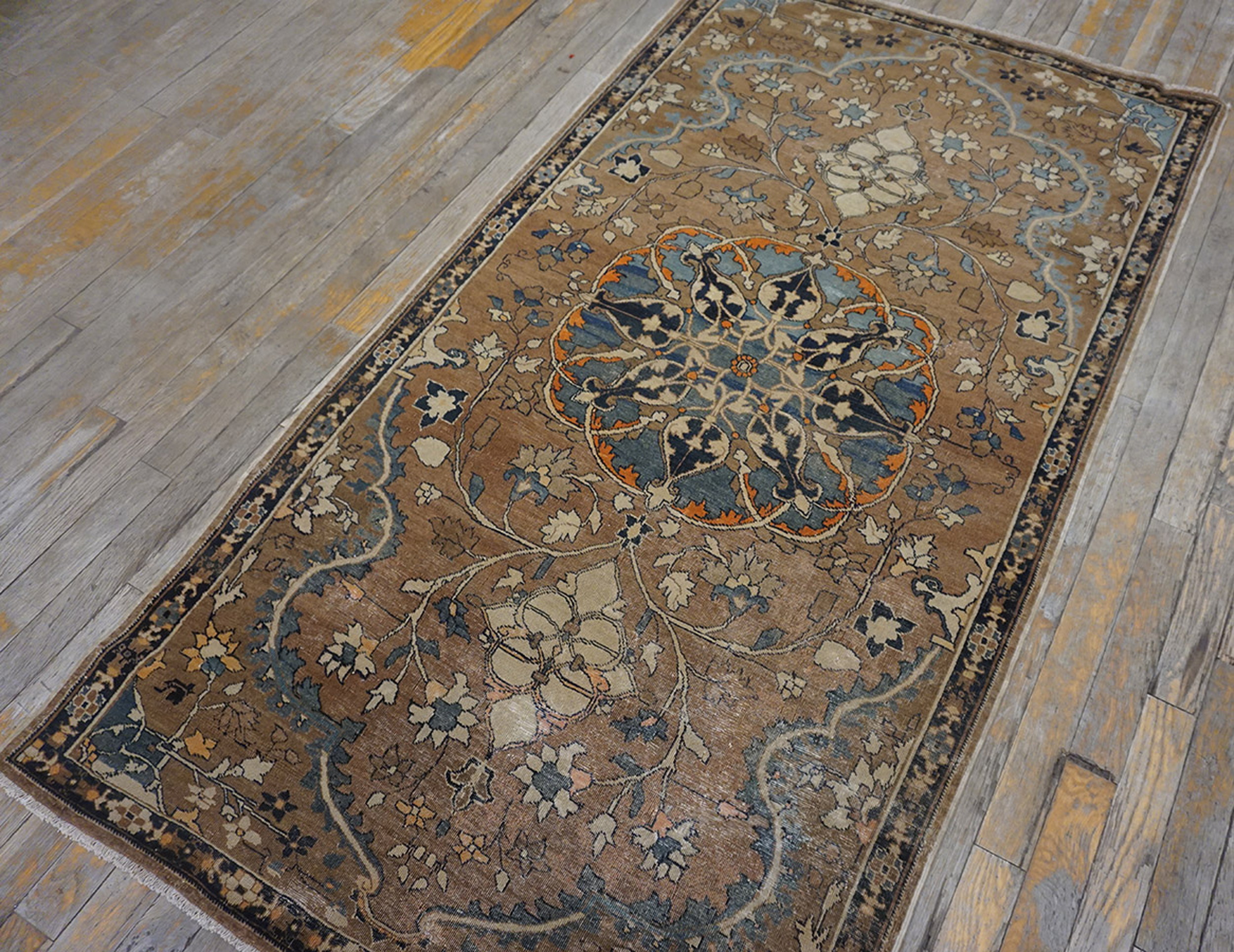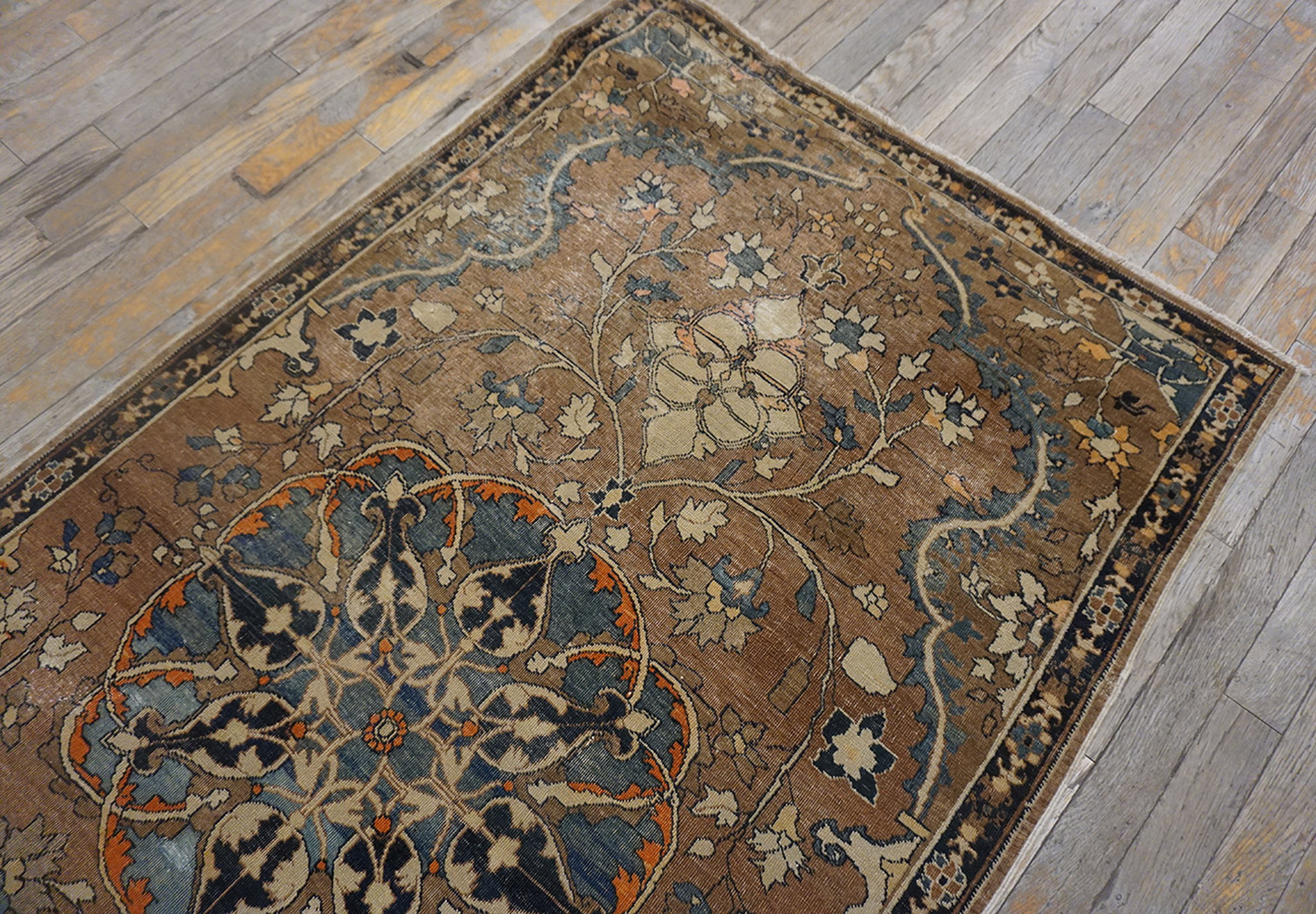 Antique Tabriz Small Scatter Size Wool Brown Rug, Circa Date: 1900s. This exquisite Persian weaving represents the pinnacle of early 20th-century craftsmanship, characteristic of high-quality antique rugs from the Tabriz region. Its enduring appeal lies in the sophisticated use of classical motifs and finely spun wool.