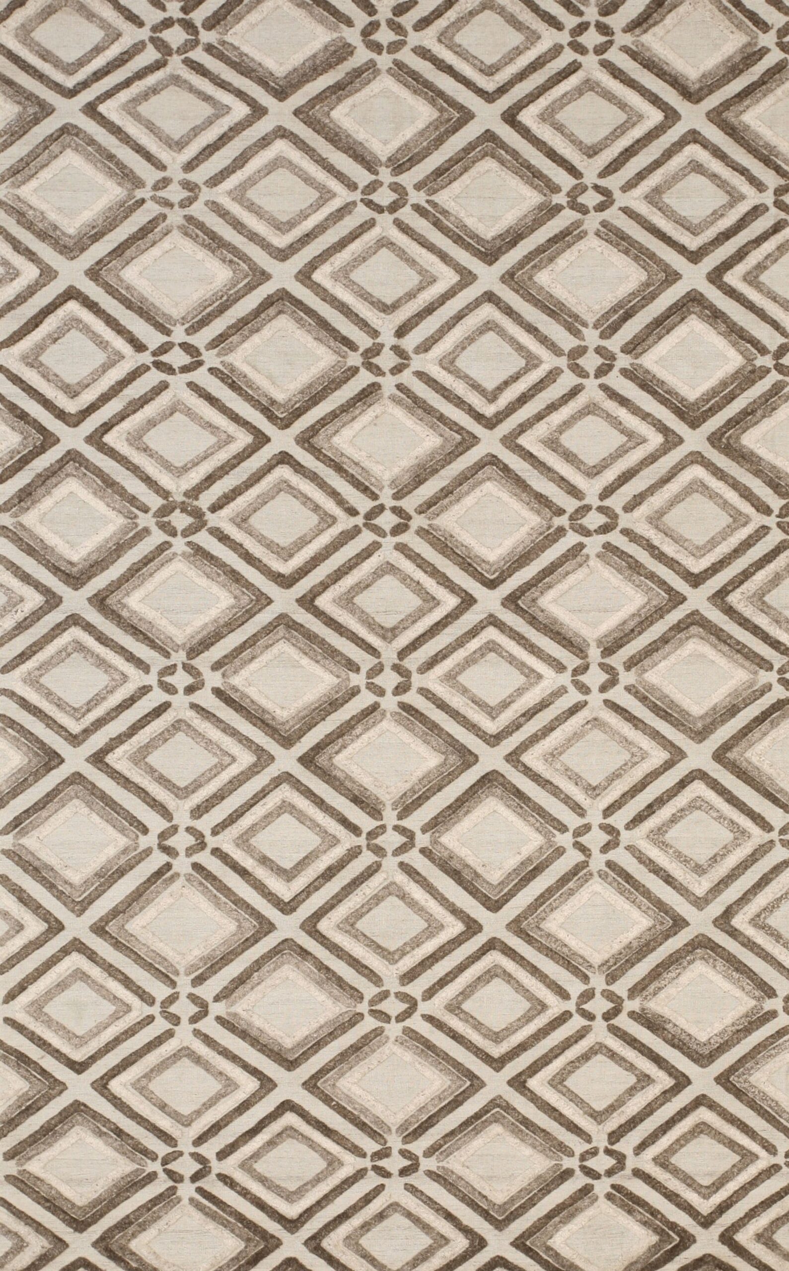 The design features a striking, repeating trellis of concentric diamond motifs, rendered in varying pile heights to create a tactile, three-dimensional surface. This interplay of texture adds visual depth and prevents the uniform pattern from feeling flat. The masterful use of ivory beige cream tones ensures seamless integration into modern or minimalist environments, offering warmth without visual clutter.