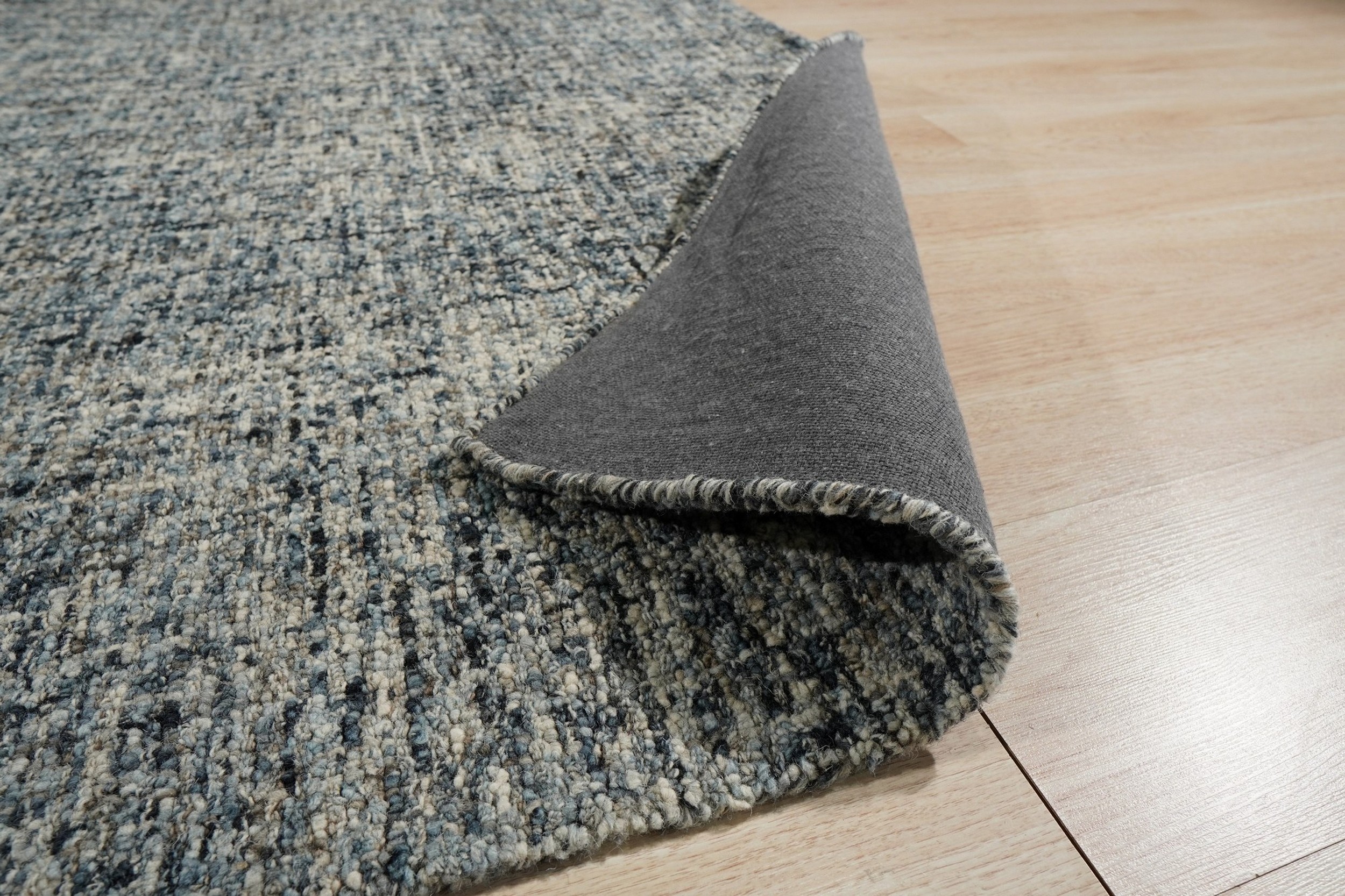 Elena Modern Dark Blue Hand Tufted Wool Rug, Country of Origin: India. This piece presents a compelling study in texture, utilizing a densely mottled surface that blends deep indigo and slate gray. The abstract, non-directional design ensures remarkable versatility, making it a sophisticated cornerstone for contemporary design schemes. The high quality of the wool and the craftsmanship reflect the enduring tradition of Indian rugs.