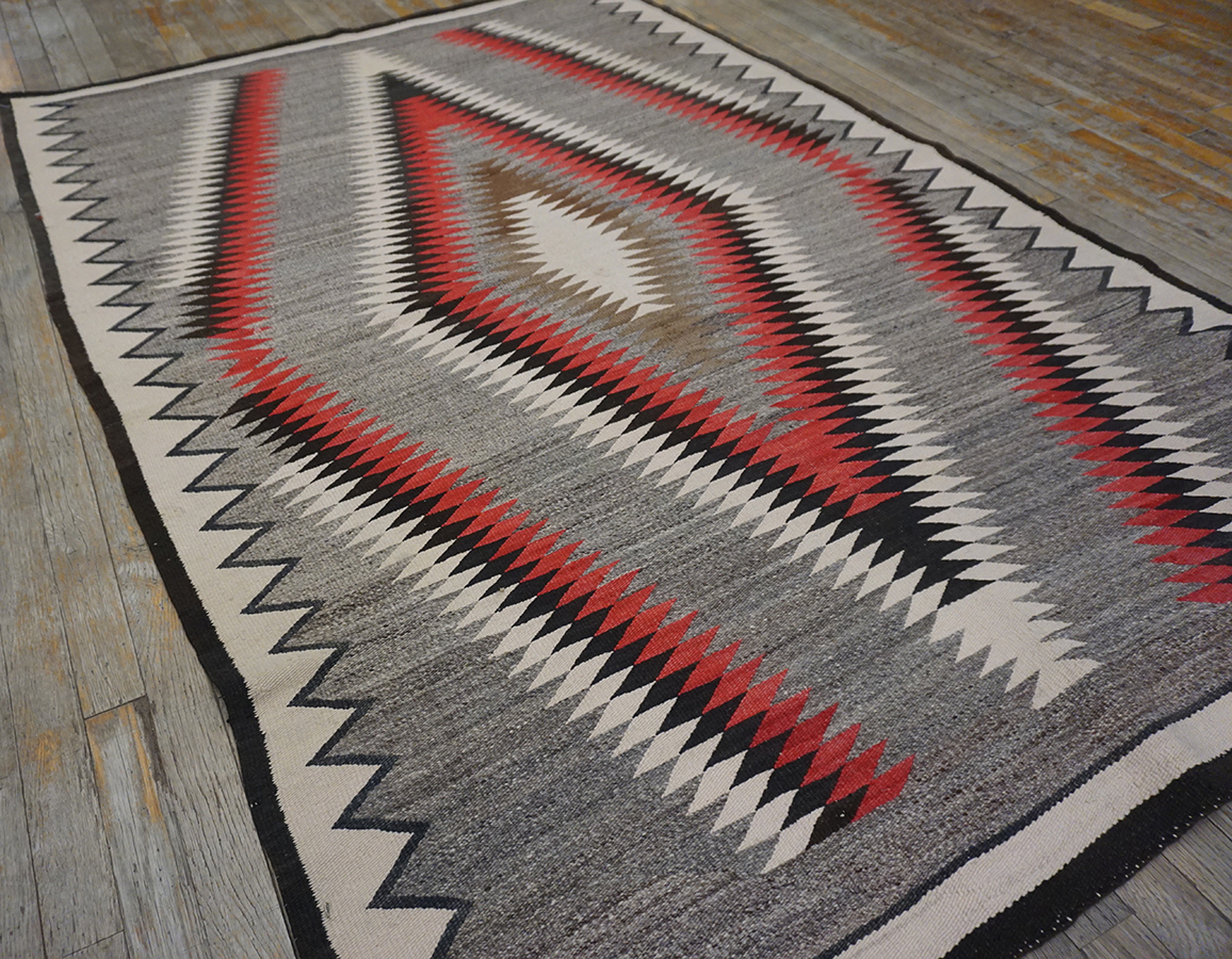 Antique American Navajo Gray 1935 Rug, Circa Date: 1935. This exceptional example of early 20th-century weaving represents the pinnacle of Southwestern textile artistry. Such pieces are highly sought after among collectors of antique rugs due to their authenticity and powerful visual impact, reflecting a period of intense artistic innovation within the Navajo nation.