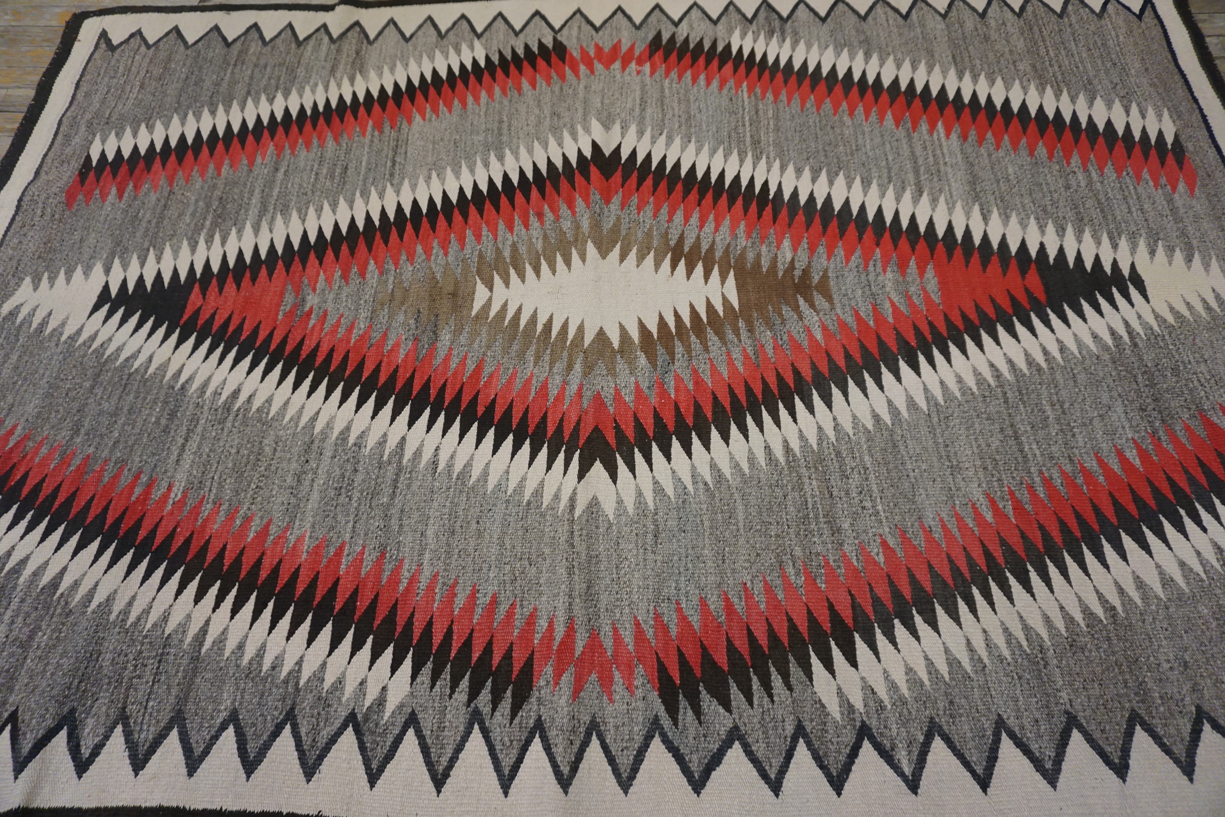 Woven in a versatile format, this textile functions perfectly as one of the highly desirable small scatter size rugs. Its tight, durable weave and sophisticated design ensure that it remains a functional piece of art, offering a rare glimpse into the enduring legacy of American weaving traditions nearly a century after its creation.