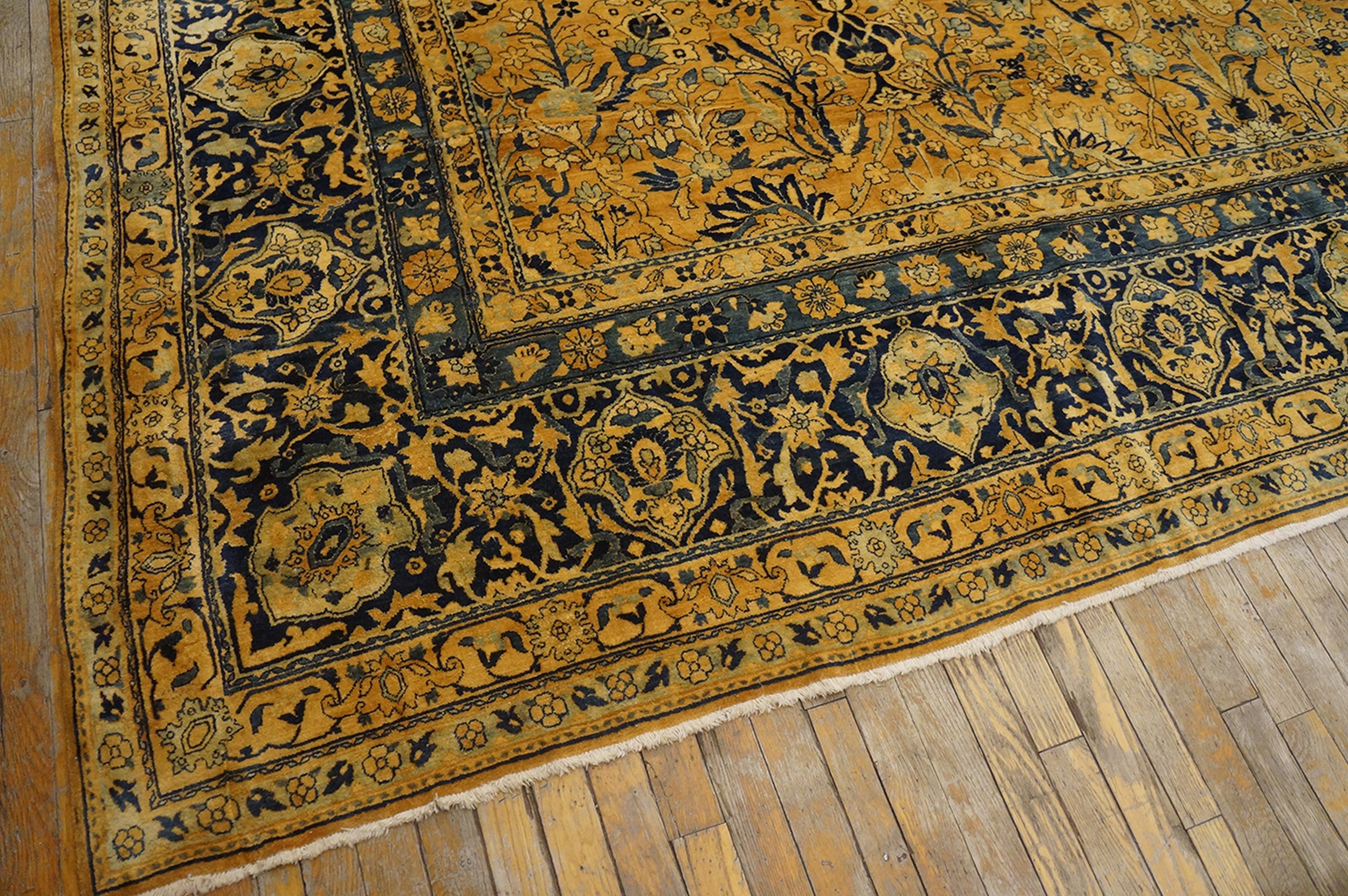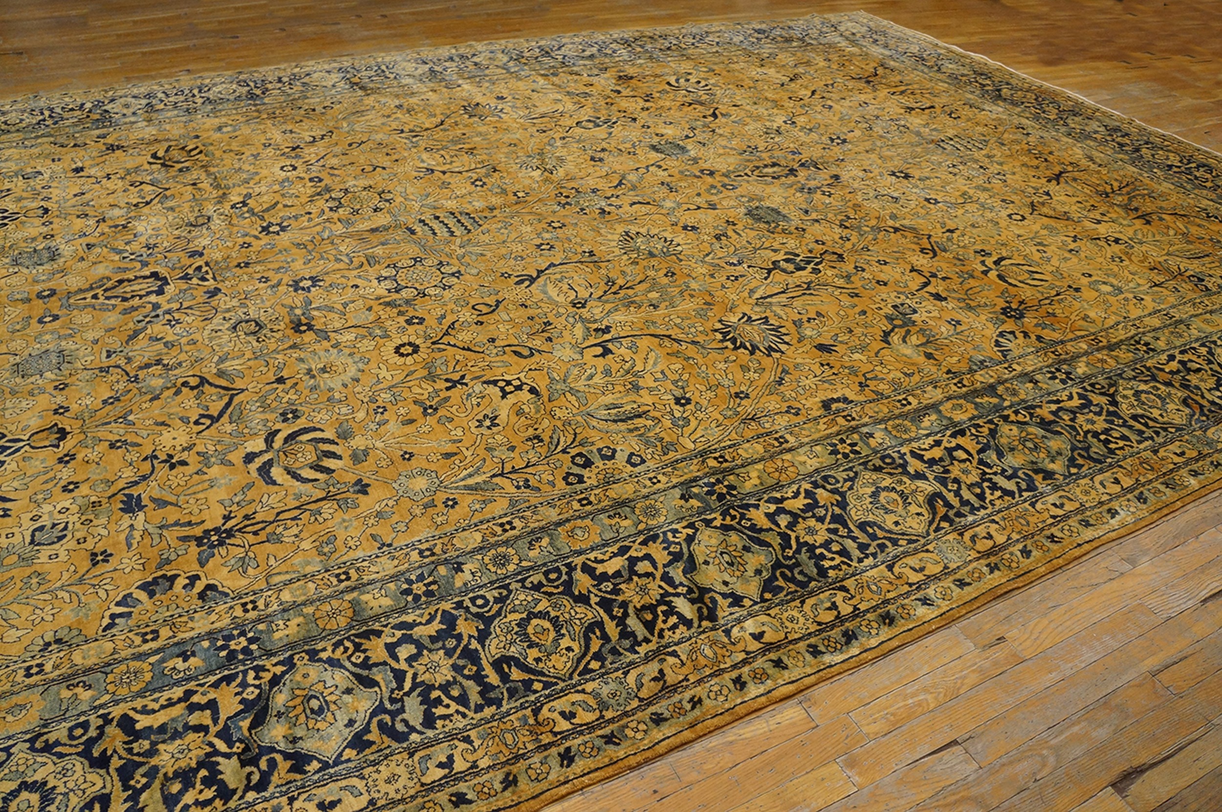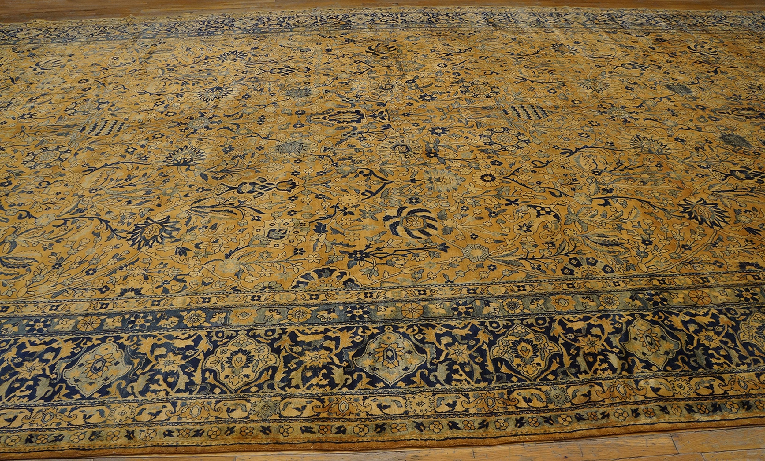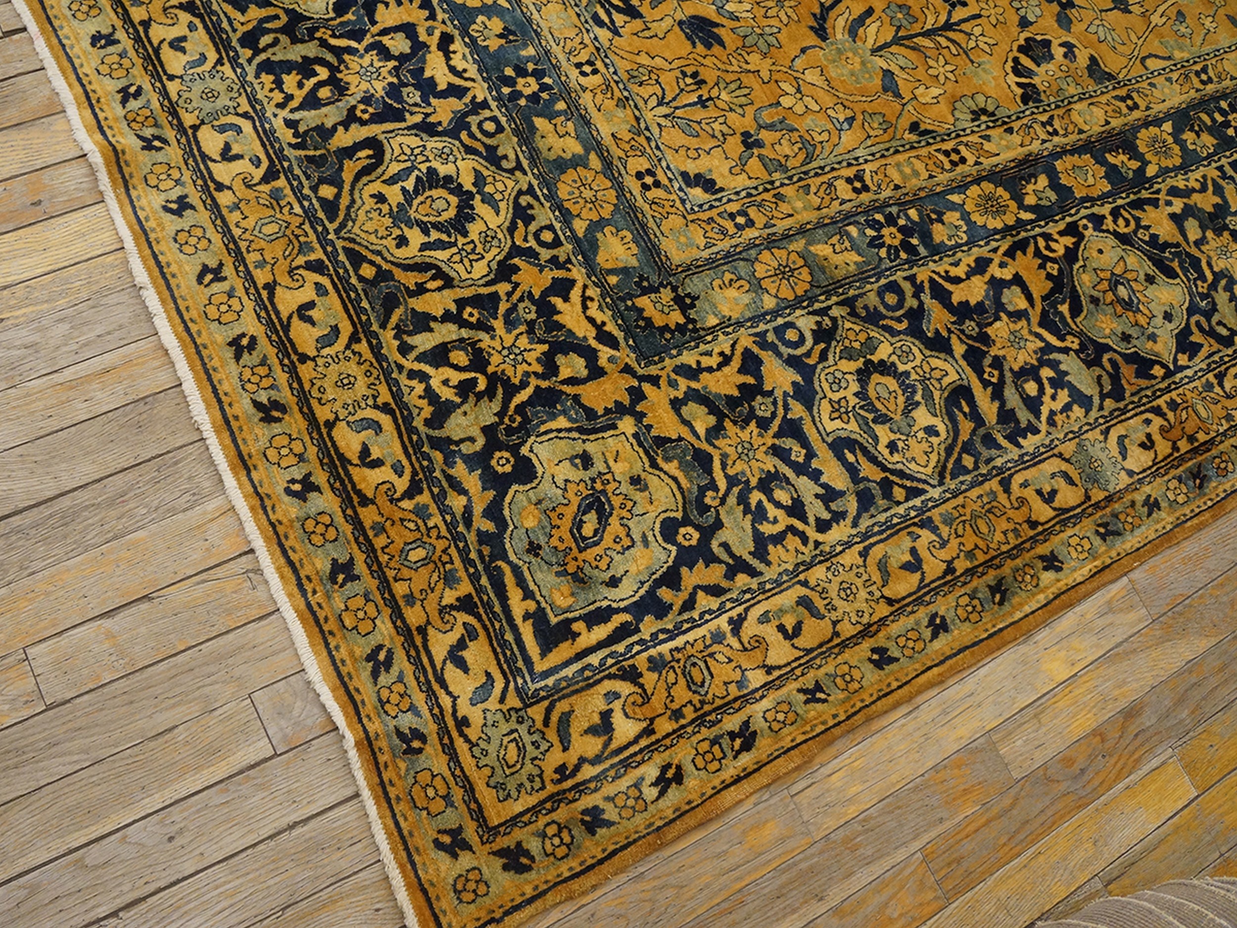 The presence of such an oversized carpet suggests a high-status commission, likely destined for a palatial setting where its expansive surface could anchor a large architectural space. Antique Persian Kerman rugs from this era became the favorites of Western royalty and industrial magnates precisely because of their “Lavar” quality—a term denoting the finest weave from the nearby village of Ravar. The durability of the hand-spun wool, combined with the sophisticated palette of soft blushes, sage greens, and ochres, ensures that the carpet retains its luminous “glow” even after a century of use. To stand upon this Kerman is to experience the pinnacle of the Persian city-weaving tradition, where mathematical precision in the knotting meets the wild, romantic abundance of the Iranian plateau’s most fabled gardens.