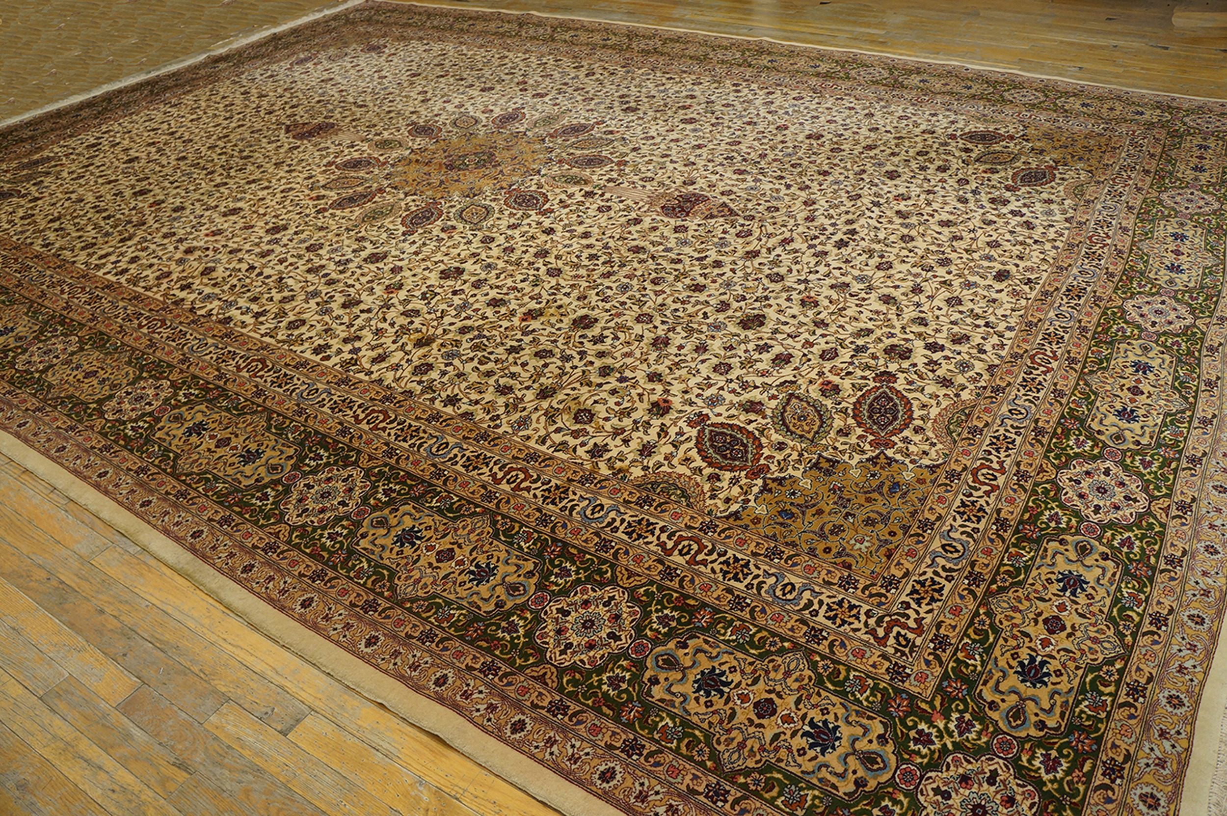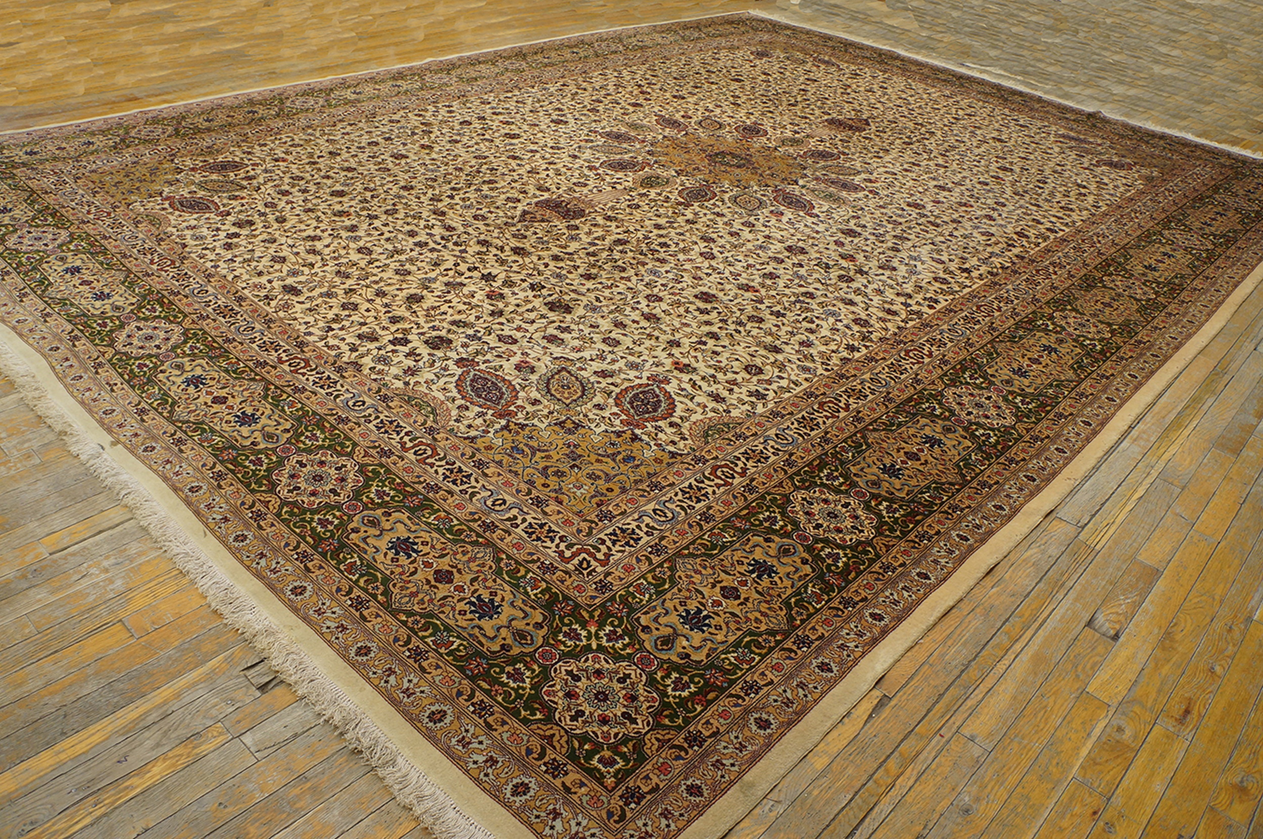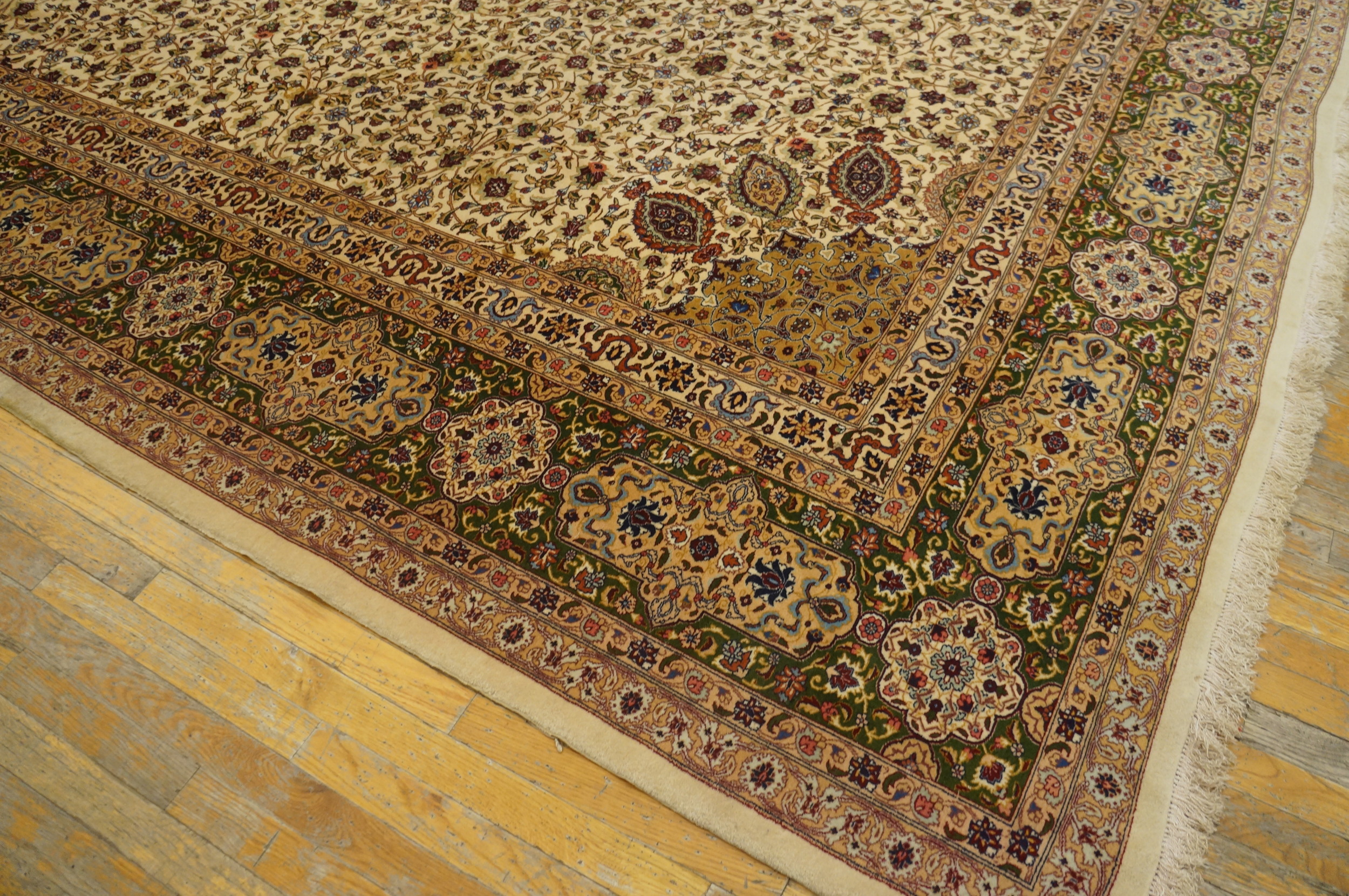 Fine Weave Vintage Ivory Floral Ardabil Design Persian Tabriz Rug