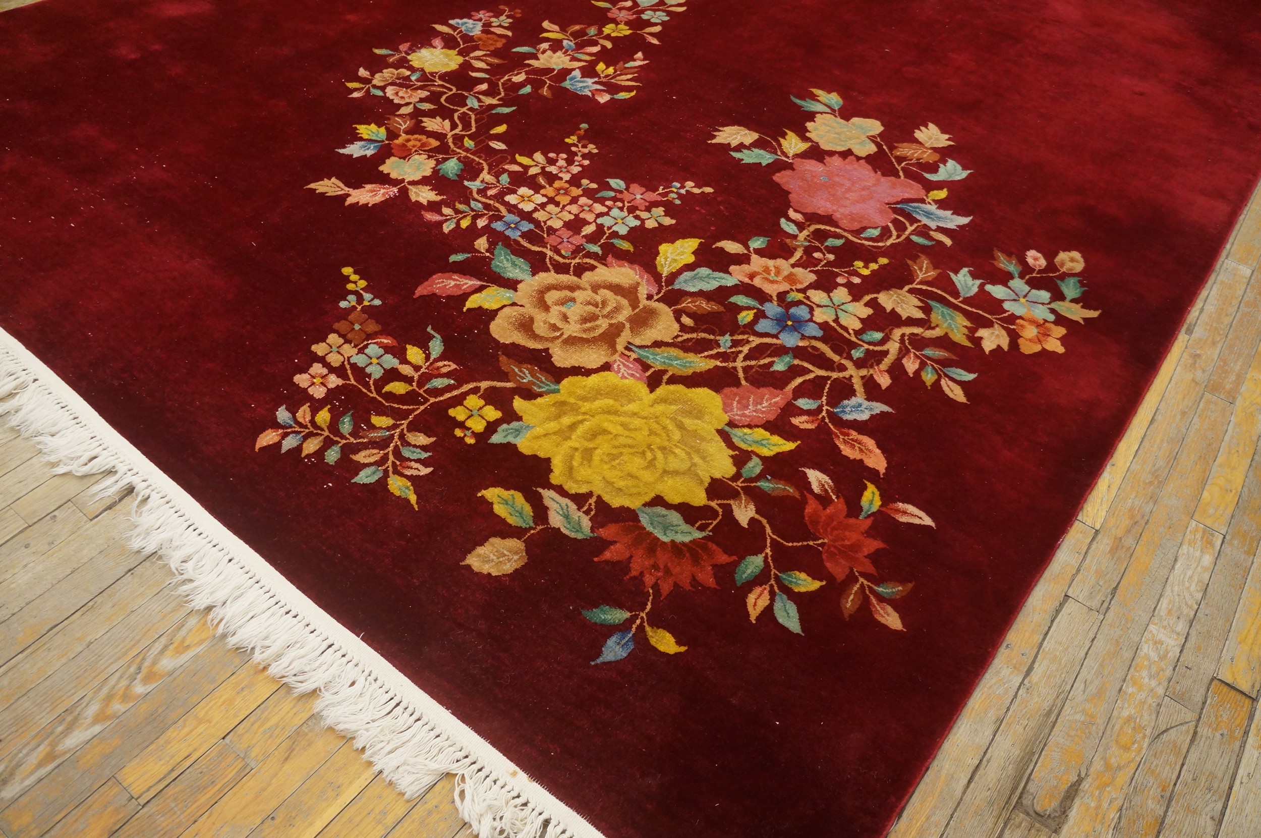 With its substantial dimensions, this piece is ideally suited to function as a room size rug in a grand living space or formal dining room. It remains an enduring testament to the glamour and artistic innovation of the 1930s, offering both historical value and striking visual impact for the discerning collector.