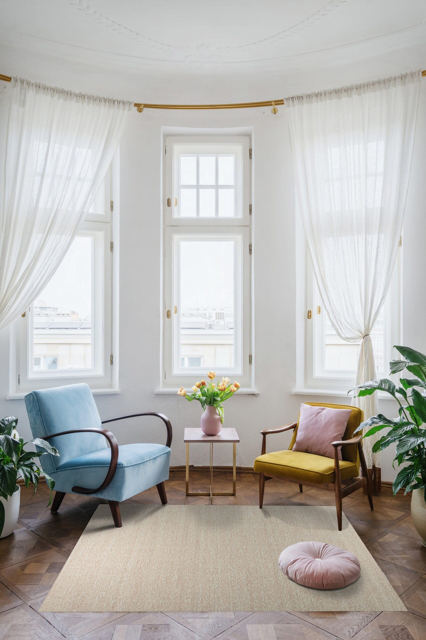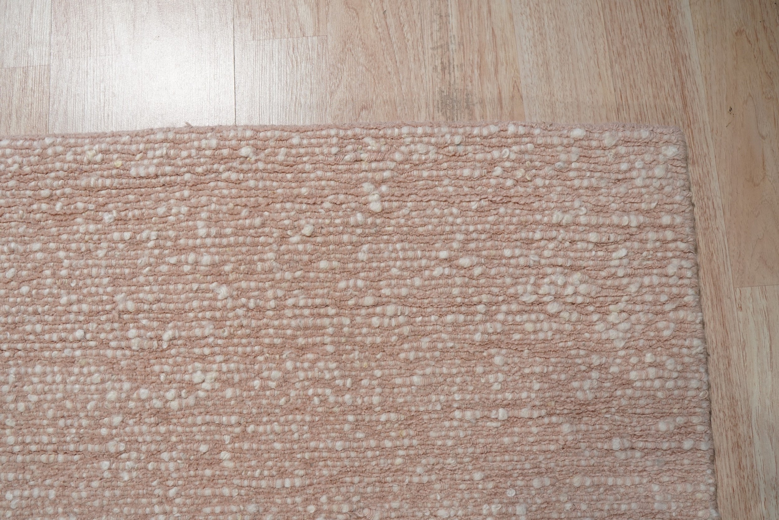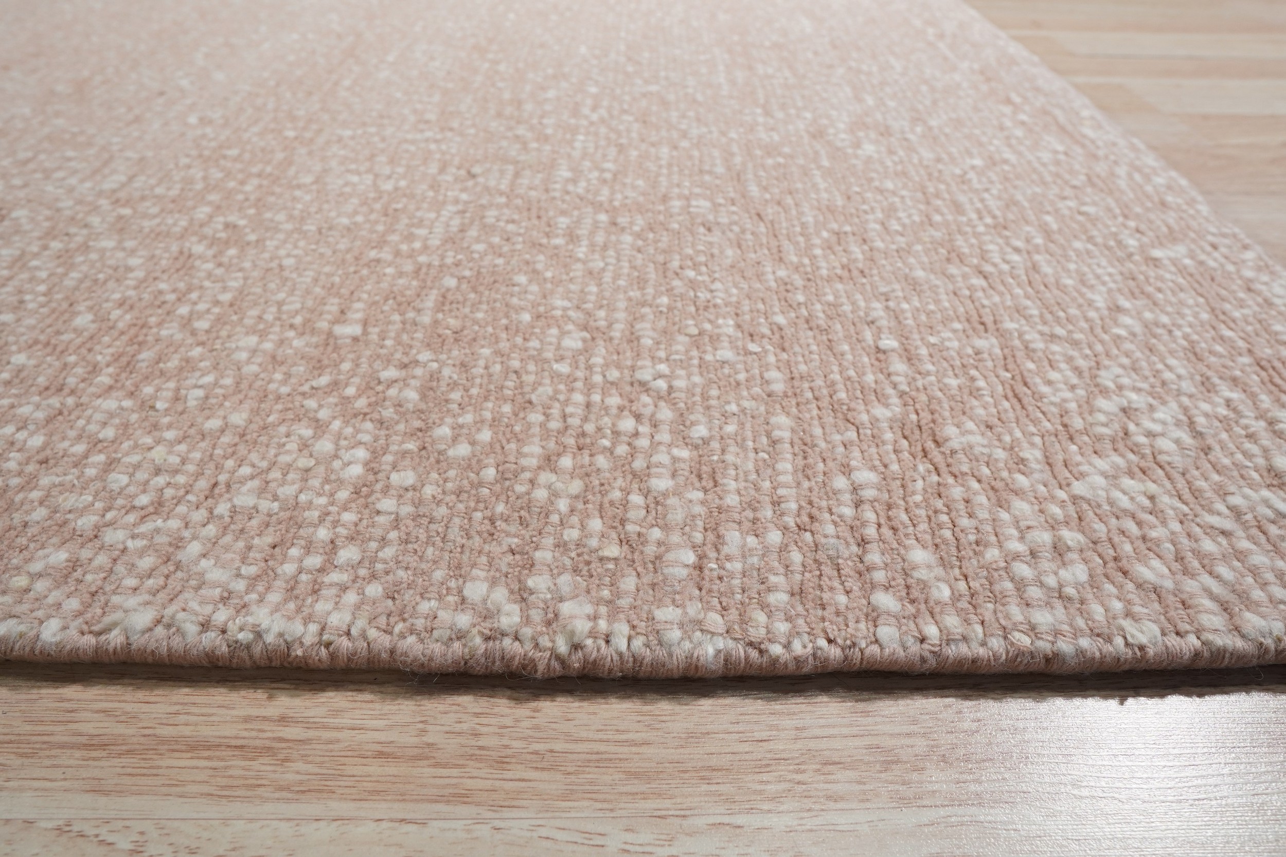 The gentle, dusty hue of the Freya rug places it perfectly within the category of refined pink color rugs. The subtle variation in the weave—a sophisticated stipple effect blending blush and cream fibers—prevents the color from feeling monolithic, lending depth and softness to the overall presentation.