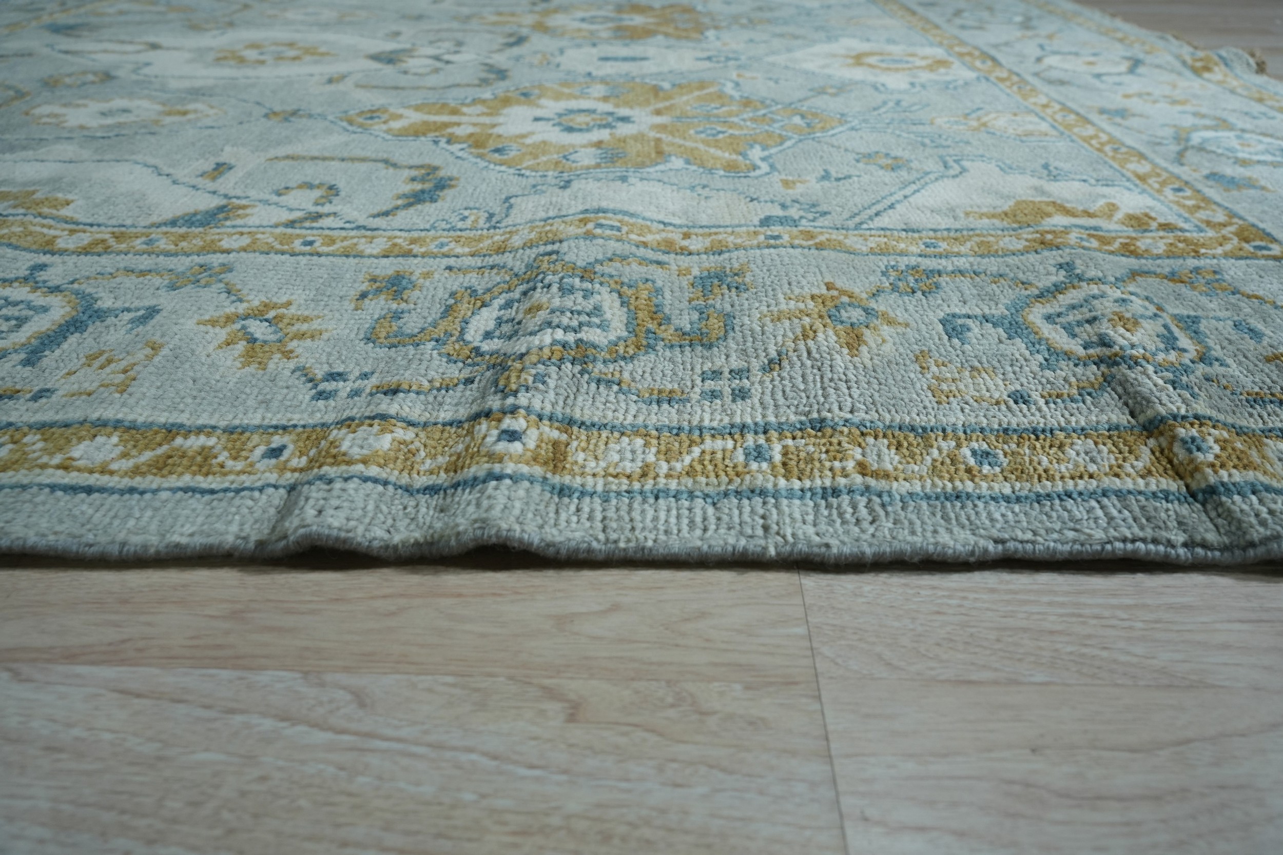 Characteristic of the Oushak revival style, the design employs large, stylized medallions and palmettes, avoiding excessive detail for a clean, contemporary presence. The generous scale of the pattern makes this an ideal selection for those seeking room size rugs that define a space without overwhelming it, providing a soft foundation for major furnishings.