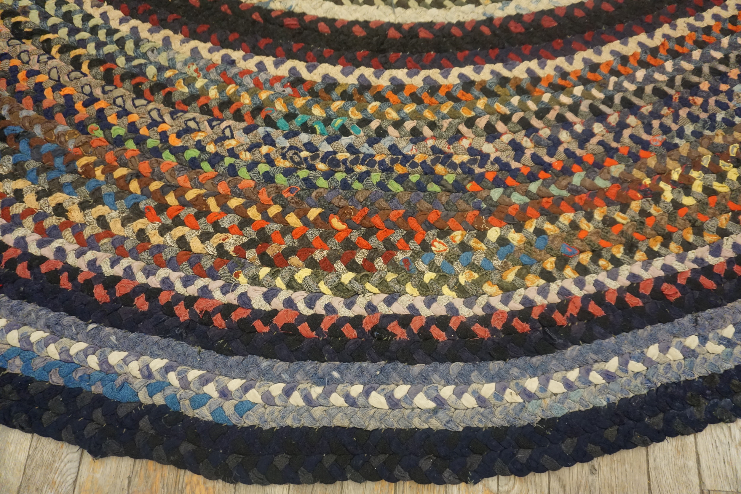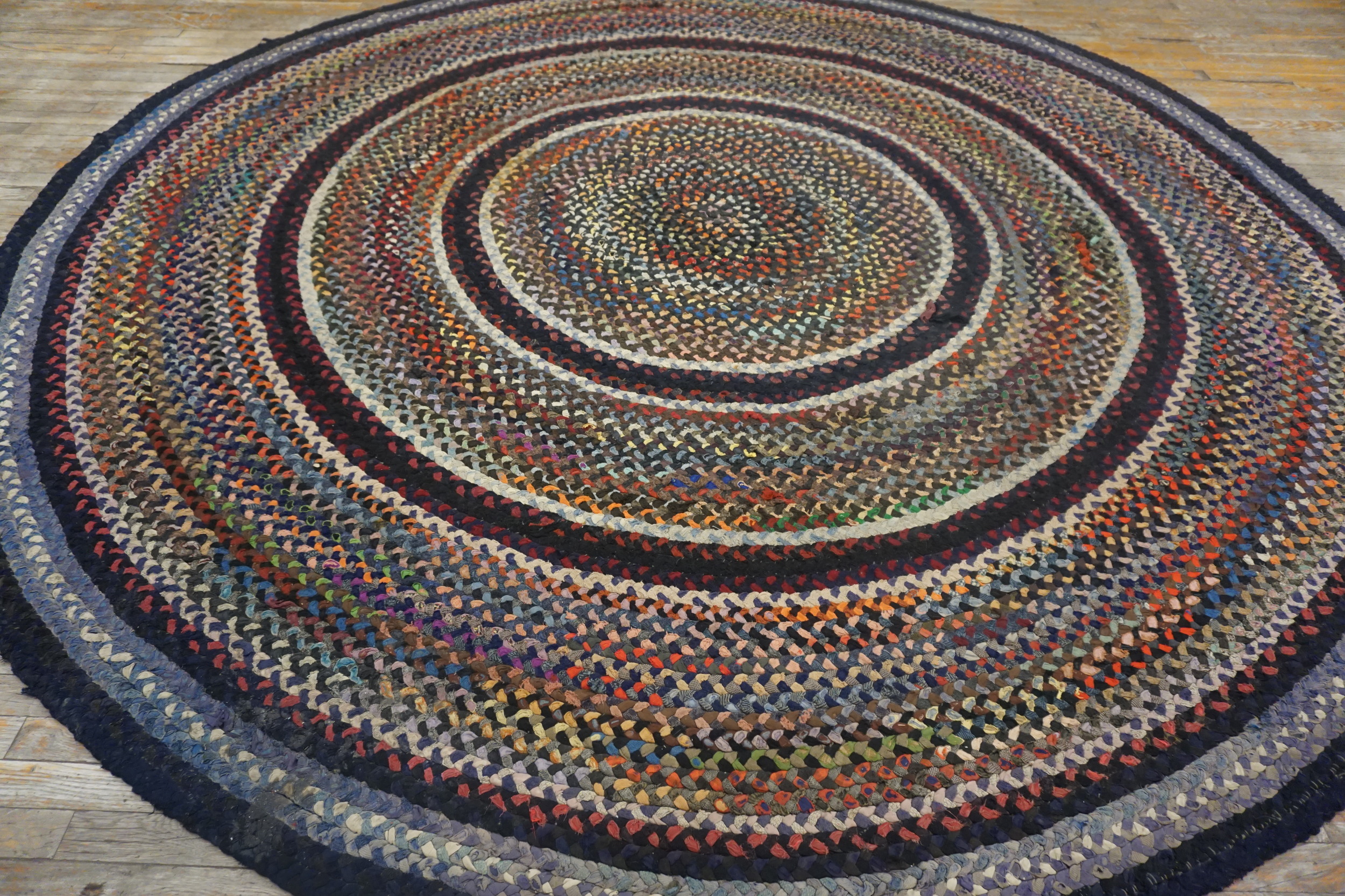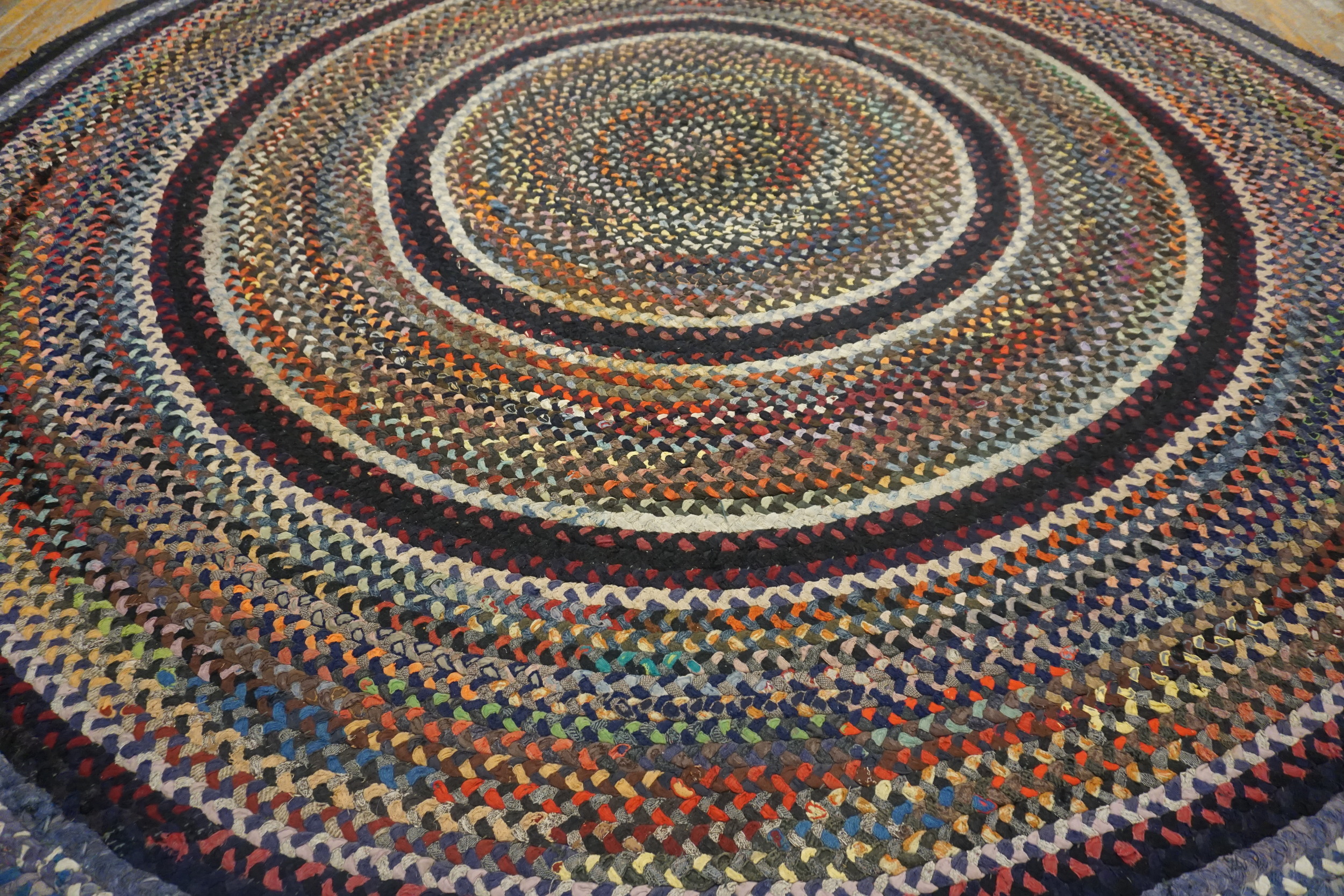 Originating in 1935, this piece offers a tangible connection to early 20th-century domestic craftsmanship. Unlike later mass-produced examples, the quality and intricacy of the braiding reflect dedicated handiwork and a resourceful aesthetic. It remains a superb example of antique rugs that transcends mere utility, offering historical depth and understated elegance to any discerning collection.