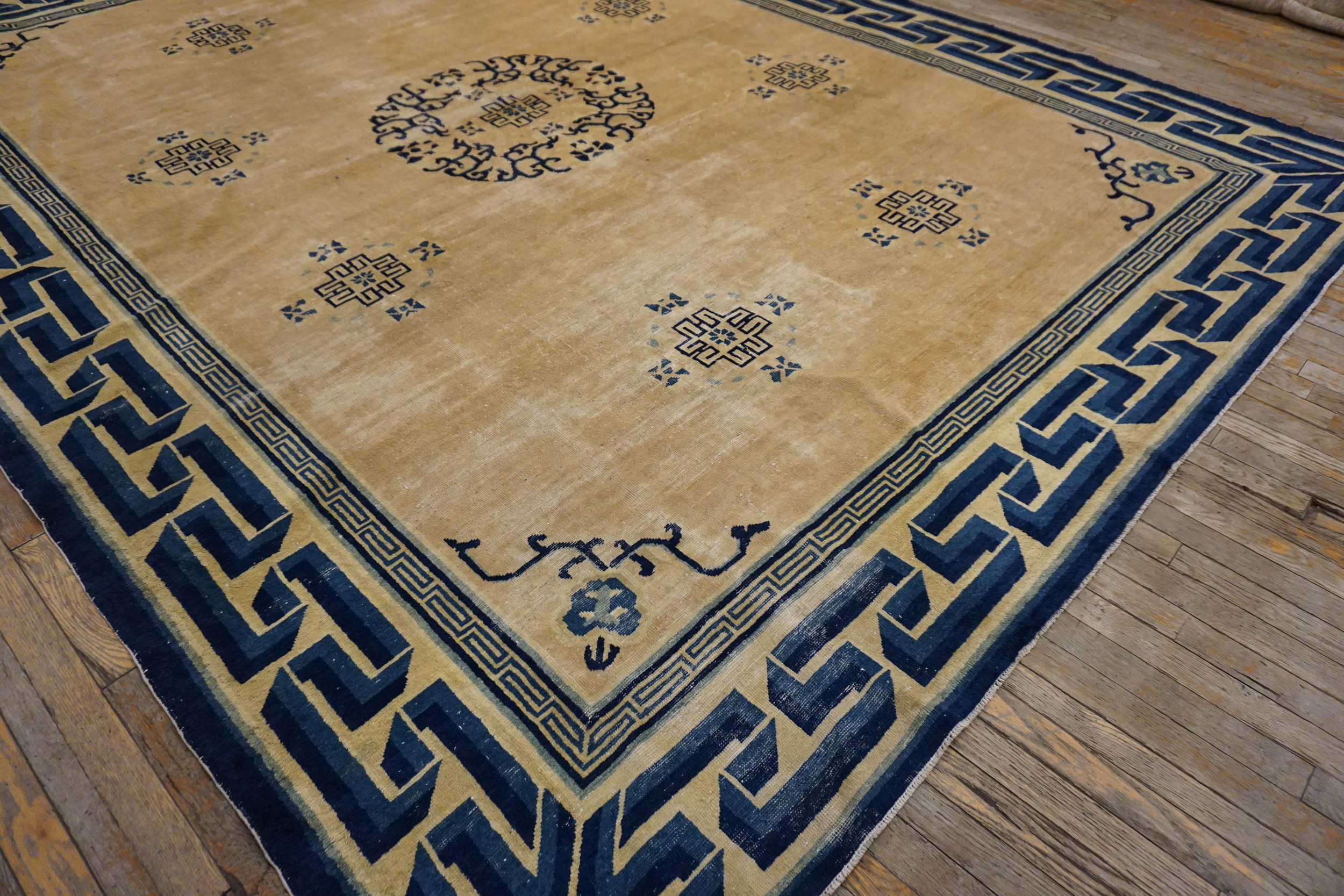 Designed for a grand interior, the scale of this piece allows the monumental border—a powerful, three-dimensional Greek Key fretwork—to truly define the space. Its substantial dimensions make it an ideal choice for collectors seeking true room size rugs that command attention and anchor a sophisticated design scheme.