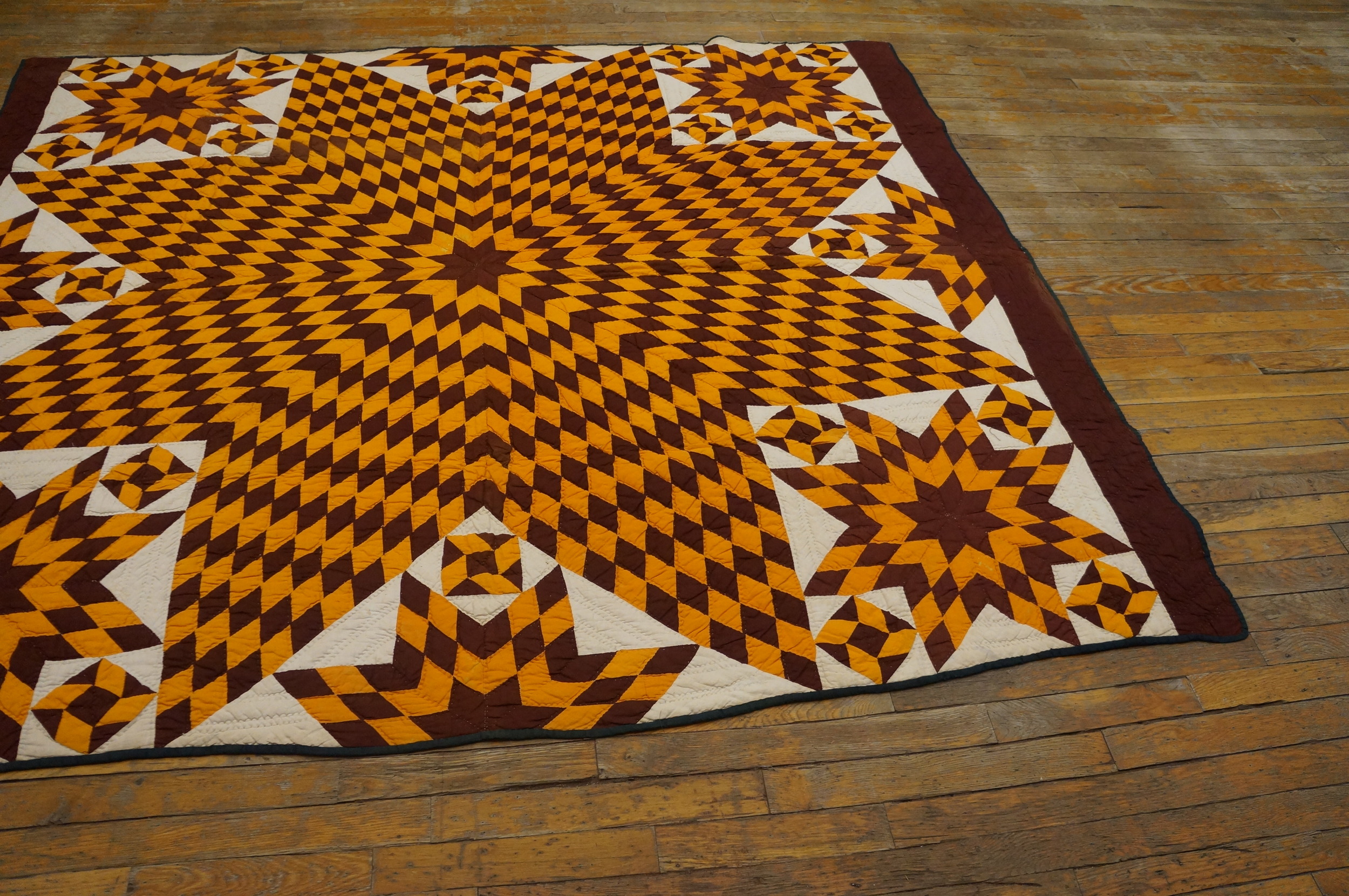 The design is dominated by a powerful central star motif, executed through meticulous piecing that creates a dynamic, three-dimensional effect. This highly structured composition is a prime example of geometric rugs, where repeating diamond and triangular forms build an optical illusion of depth and movement across the surface.