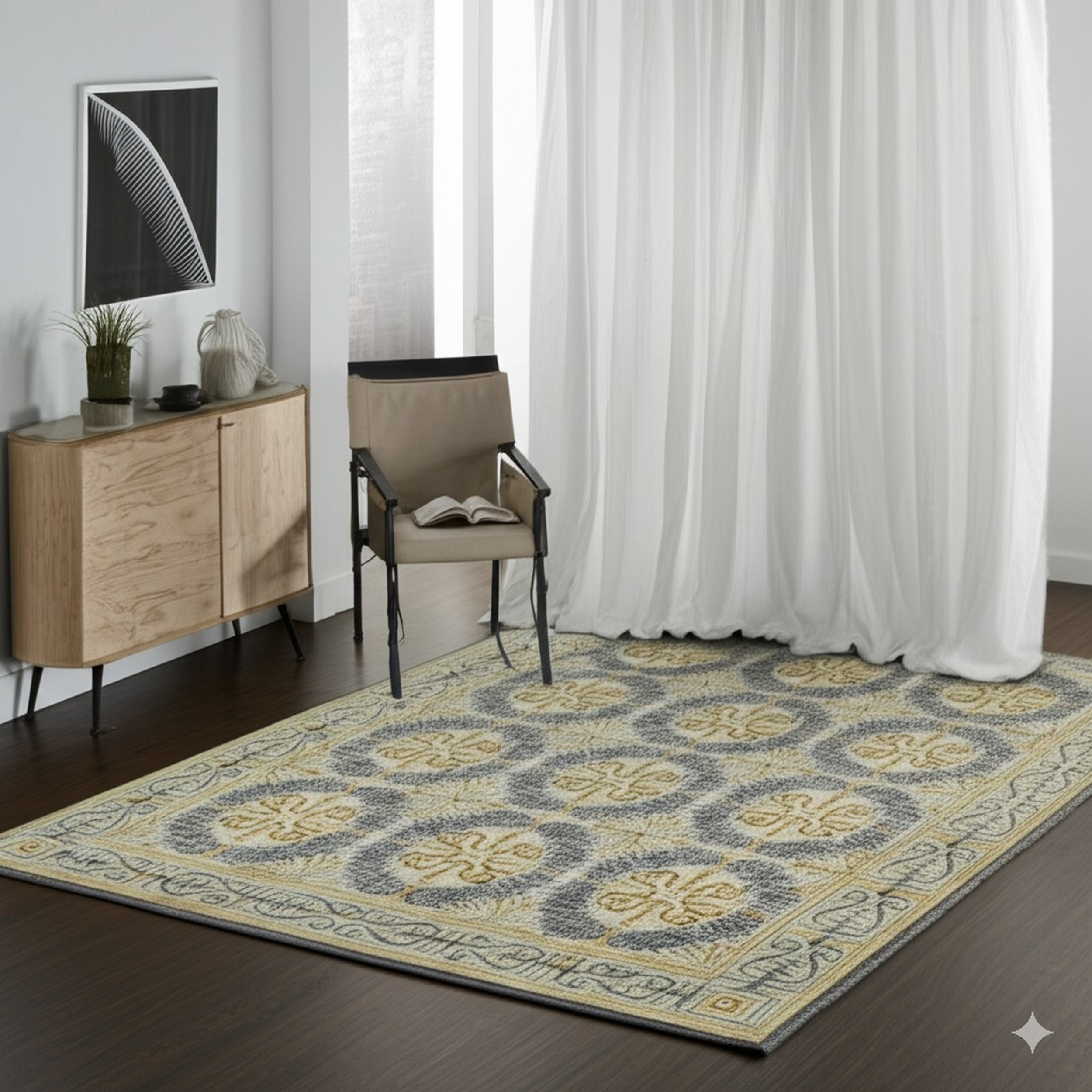 Giselle Exquisite Beige Hand Knotted Wool Rug, Country of Origin: China. This magnificent piece offers a sophisticated interpretation of classical European design, seamlessly blending traditional motifs with a contemporary color palette. Its refined structure makes it an ideal addition to any space seeking elegance and depth.