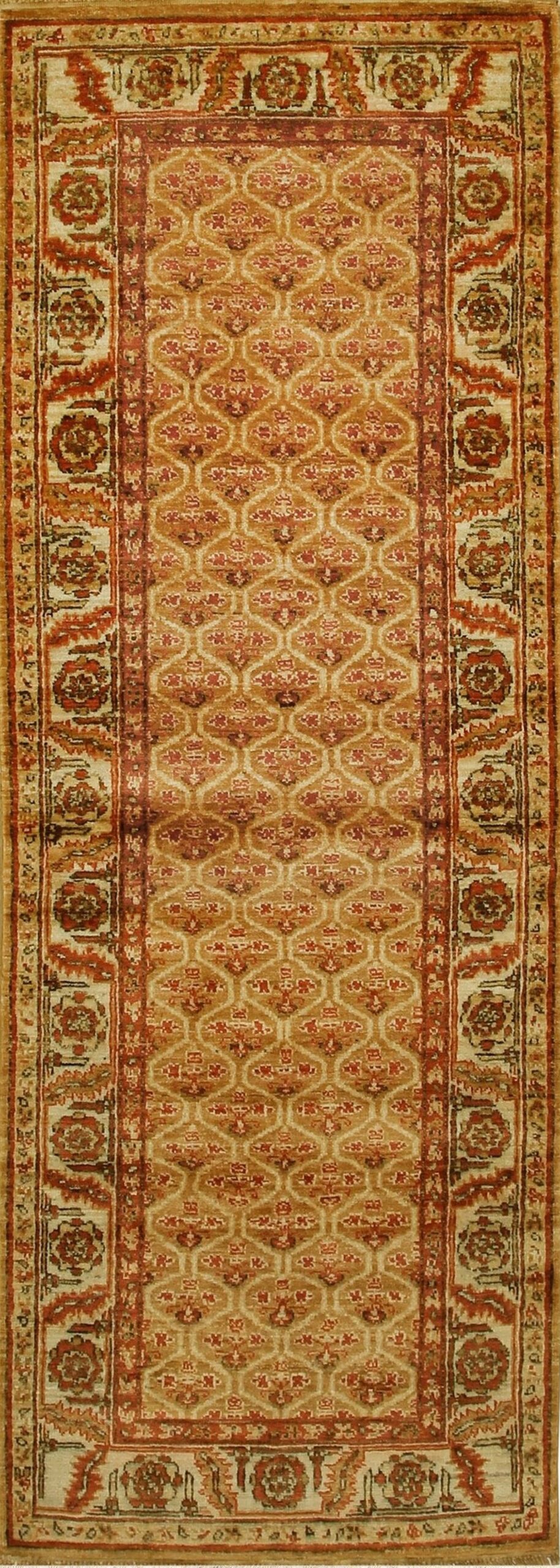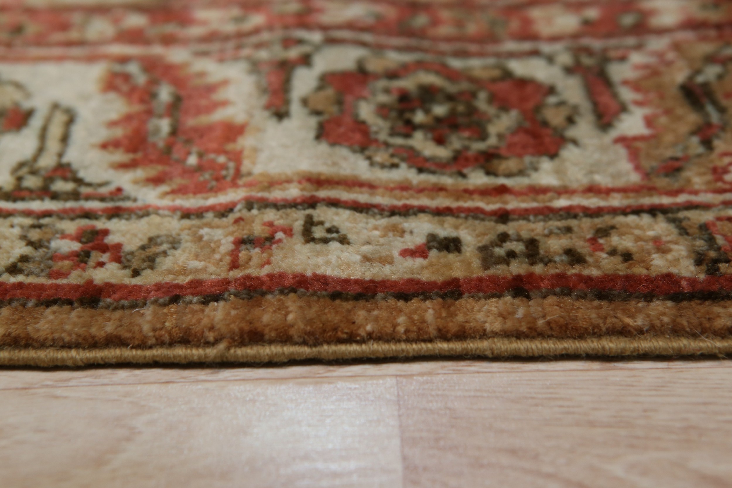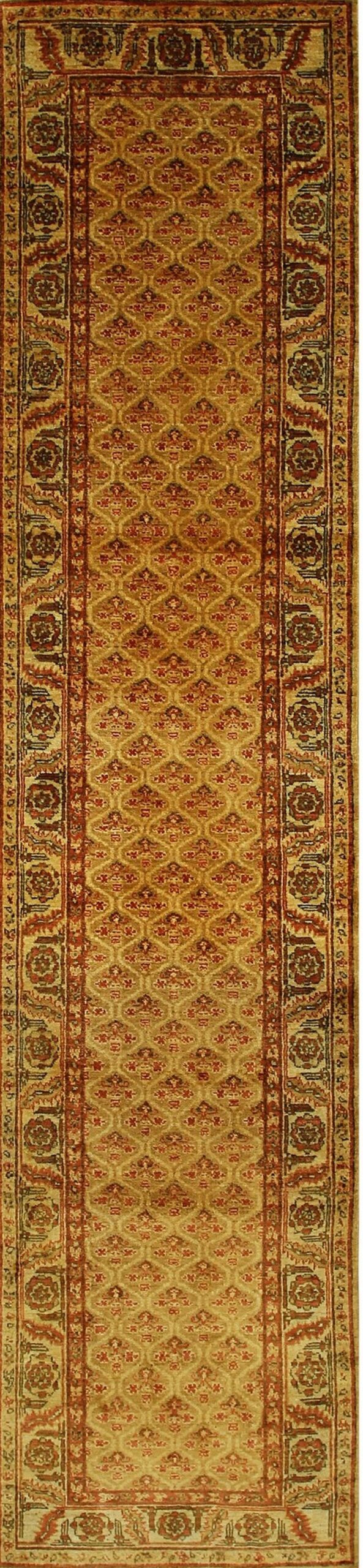 The palette is dominated by rich, warm hues, featuring a deep saffron field overlaid with rust and sienna accents. This masterful use of color creates a grounding effect, making it a superb example of brown earth tone color rugs that integrate seamlessly into traditional or transitional interiors while providing a comforting warmth underfoot.