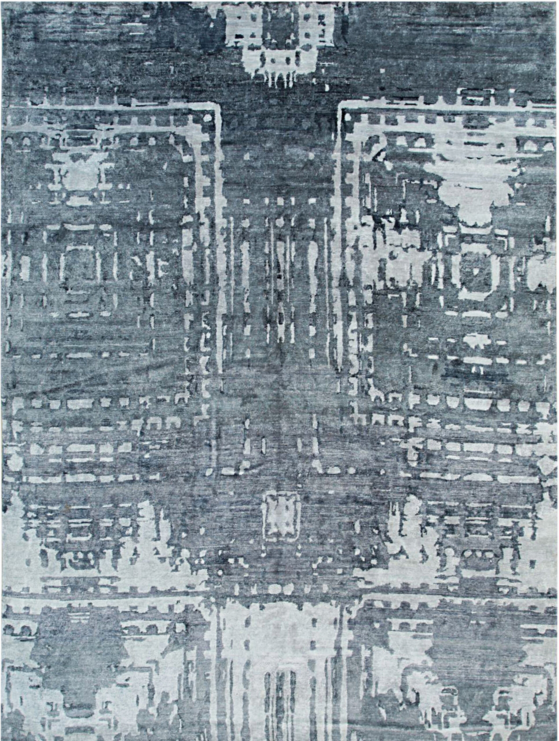 Graceful Classic Gray Hand Knotted Wool & Viscose Rug, Country of Origin: India. This exceptional piece merges traditional hand-knotted craftsmanship with a decidedly contemporary aesthetic, offering a sophisticated foundation for modern interiors. The blend of natural wool and luminous viscose enhances the texture, creating subtle shifts in sheen across the surface. Indian rugs are renowned for their adaptability and quality in producing diverse styles.