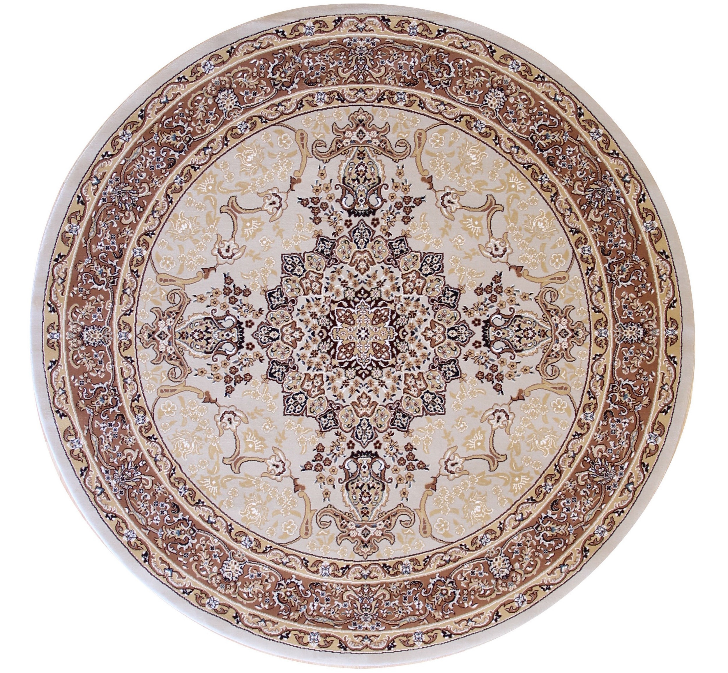 The refined aesthetic is built upon a delicate ivory and beige color palette, offering a luminous foundation that complements virtually any interior scheme. Richer tones of cocoa and deep taupe define the central medallions and the ornate border, lending depth and visual structure to the repeating pattern.