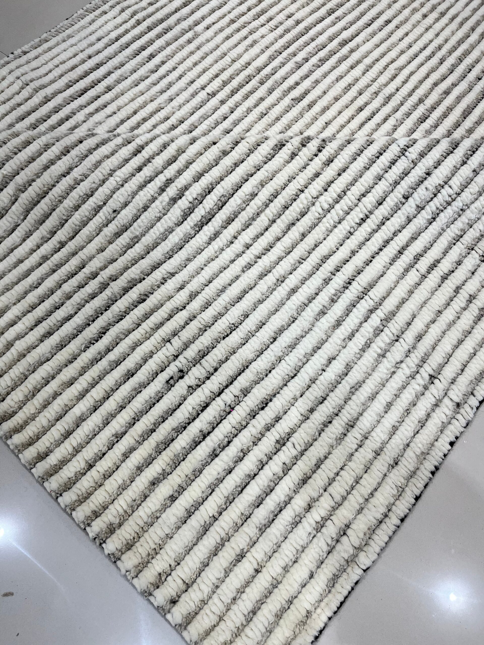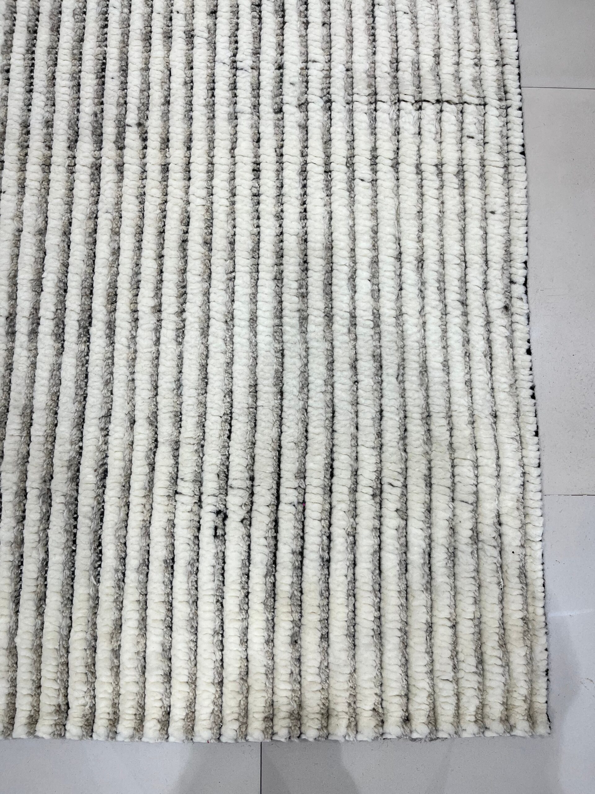 The design is defined by its striking vertical striations, creating a dynamic, high-relief texture reminiscent of corduroy. This tactile dimension prevents the rug from feeling flat, even within a monochromatic palette. The nuanced shading of the ivory color ensures versatility, allowing it to harmonize effortlessly with both minimalist and richly layered interiors.