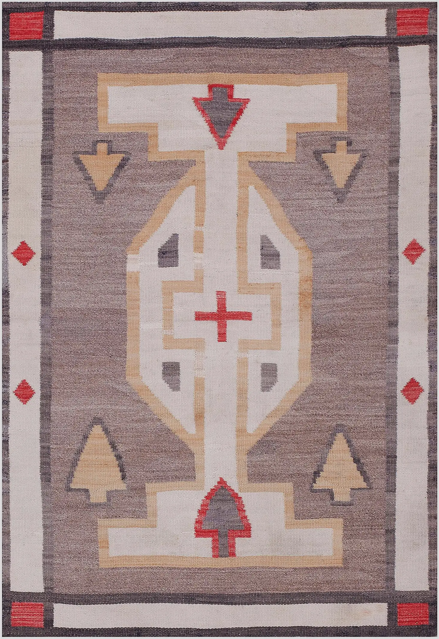 Antique American Navajo Gray 1920s Rug, Circa Date: 1920s. This exceptional piece of American textile art represents the pinnacle of early 20th-century Navajo weaving. Its bold, graphic composition distinguishes it among other antique rugs of the period, showcasing a masterful use of natural dyes and hand-spun wool.