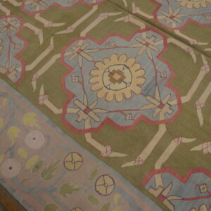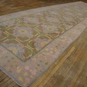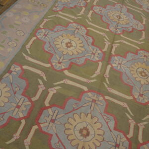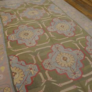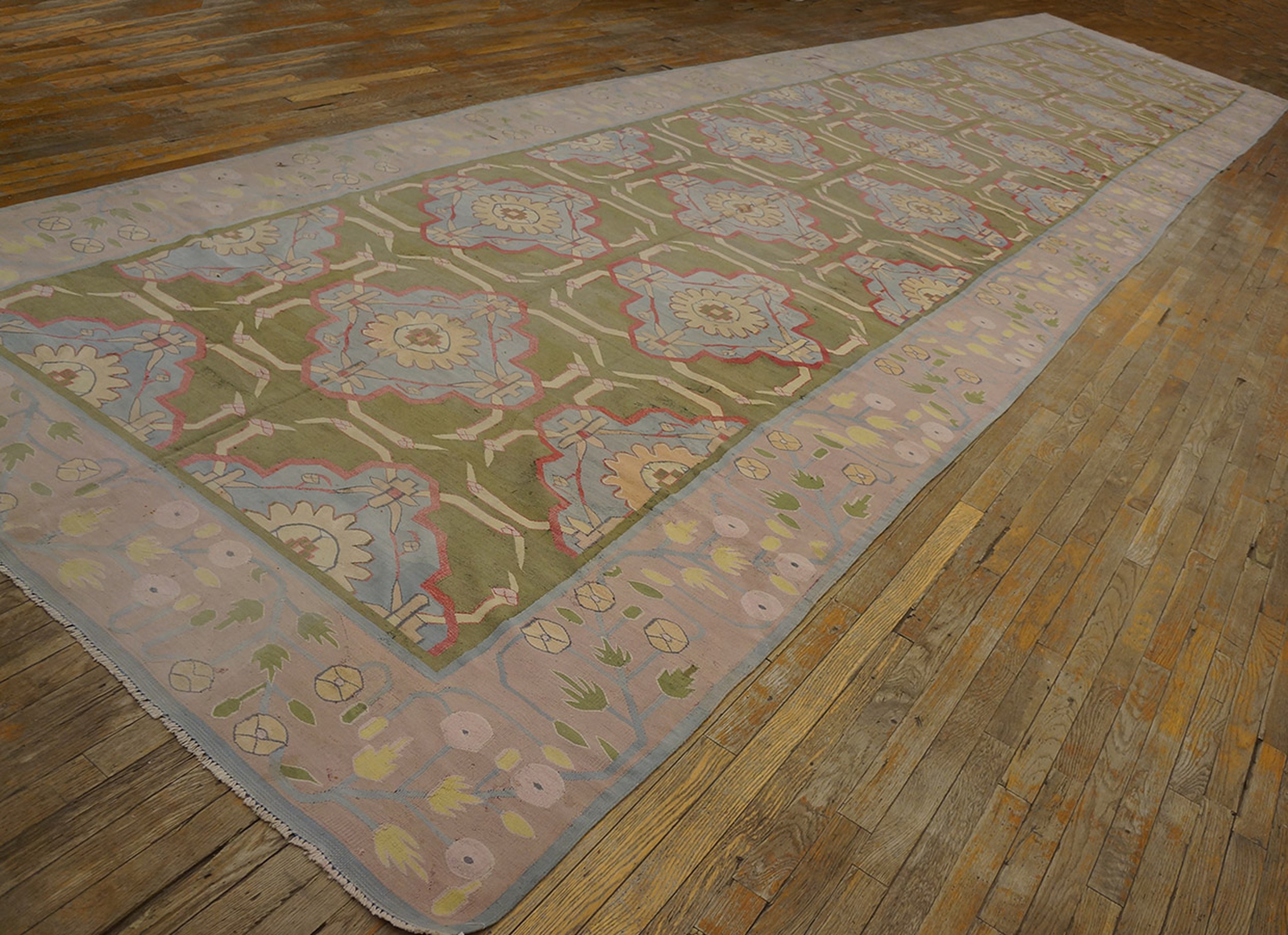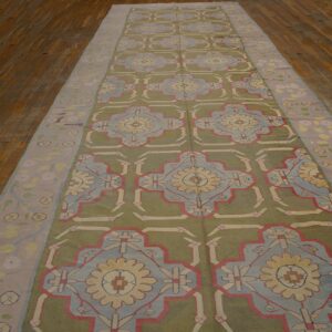 This green color artistic antique Indian flatweave cotton dhurrie long narrow gallery size rug is a striking example of of these flatweave rugs from India which offer both decorative artistry and everyday functionality. Crafted using classic flatweave rug weaving techniques, this elongated gallery-proportion dhurrie combines an inviting green color rug palette with artistic patterning — making it an excellent choice for transitional spaces in contemporary and classic interiors alike.
