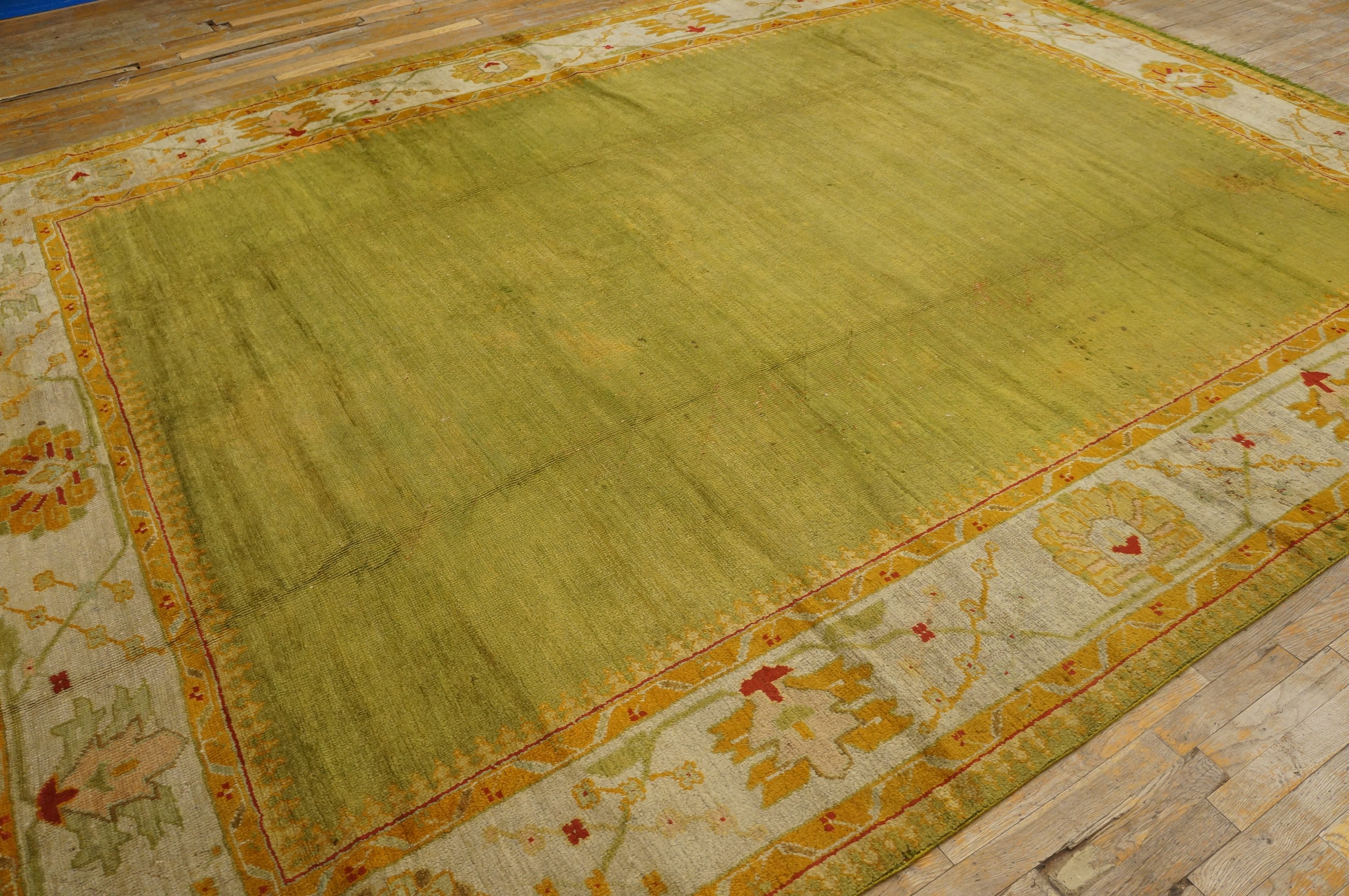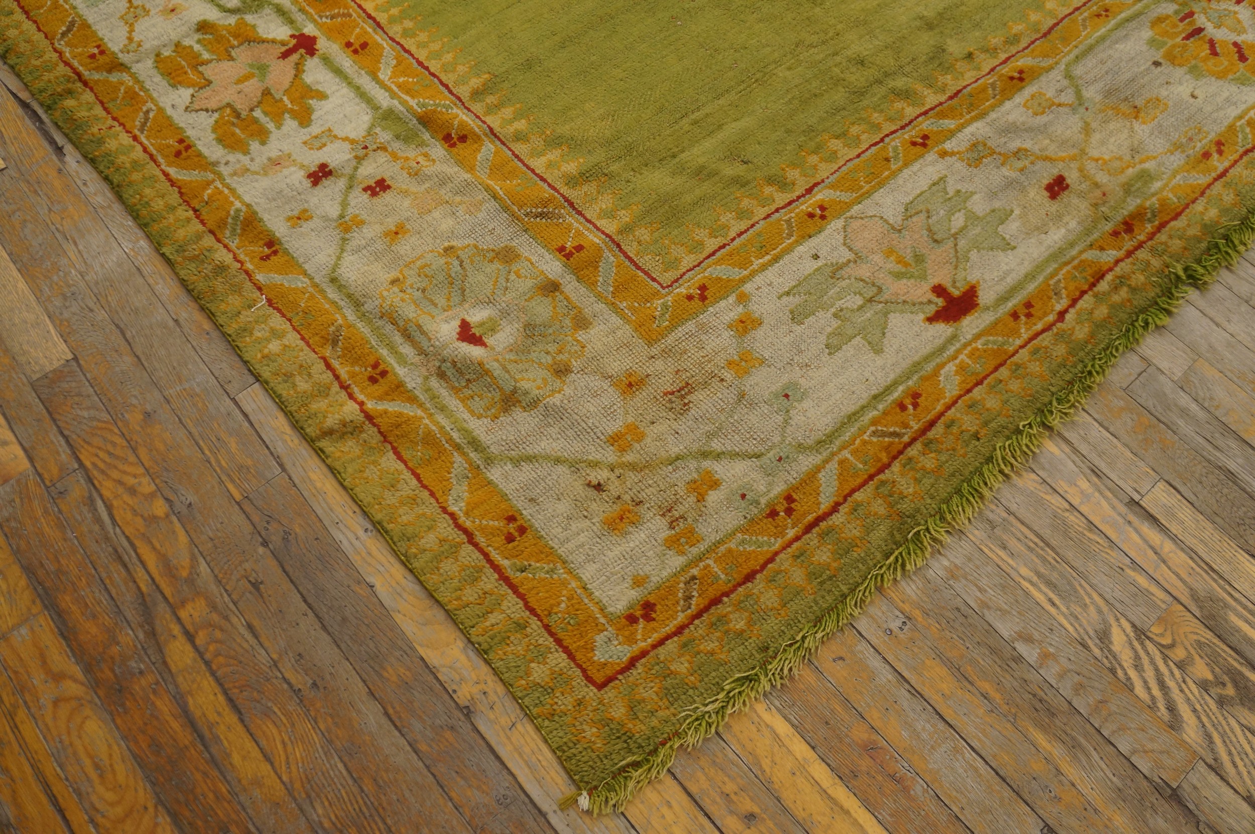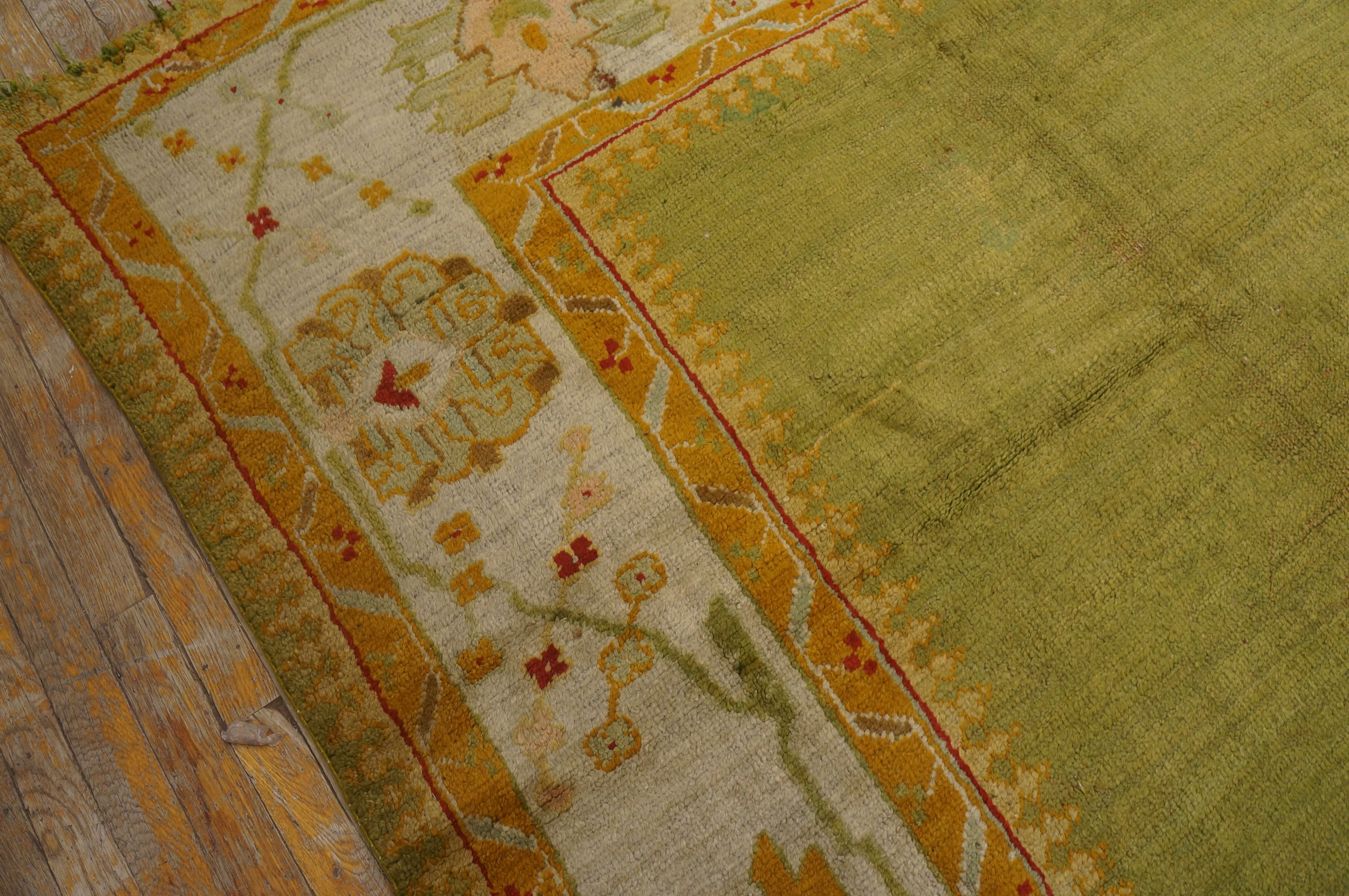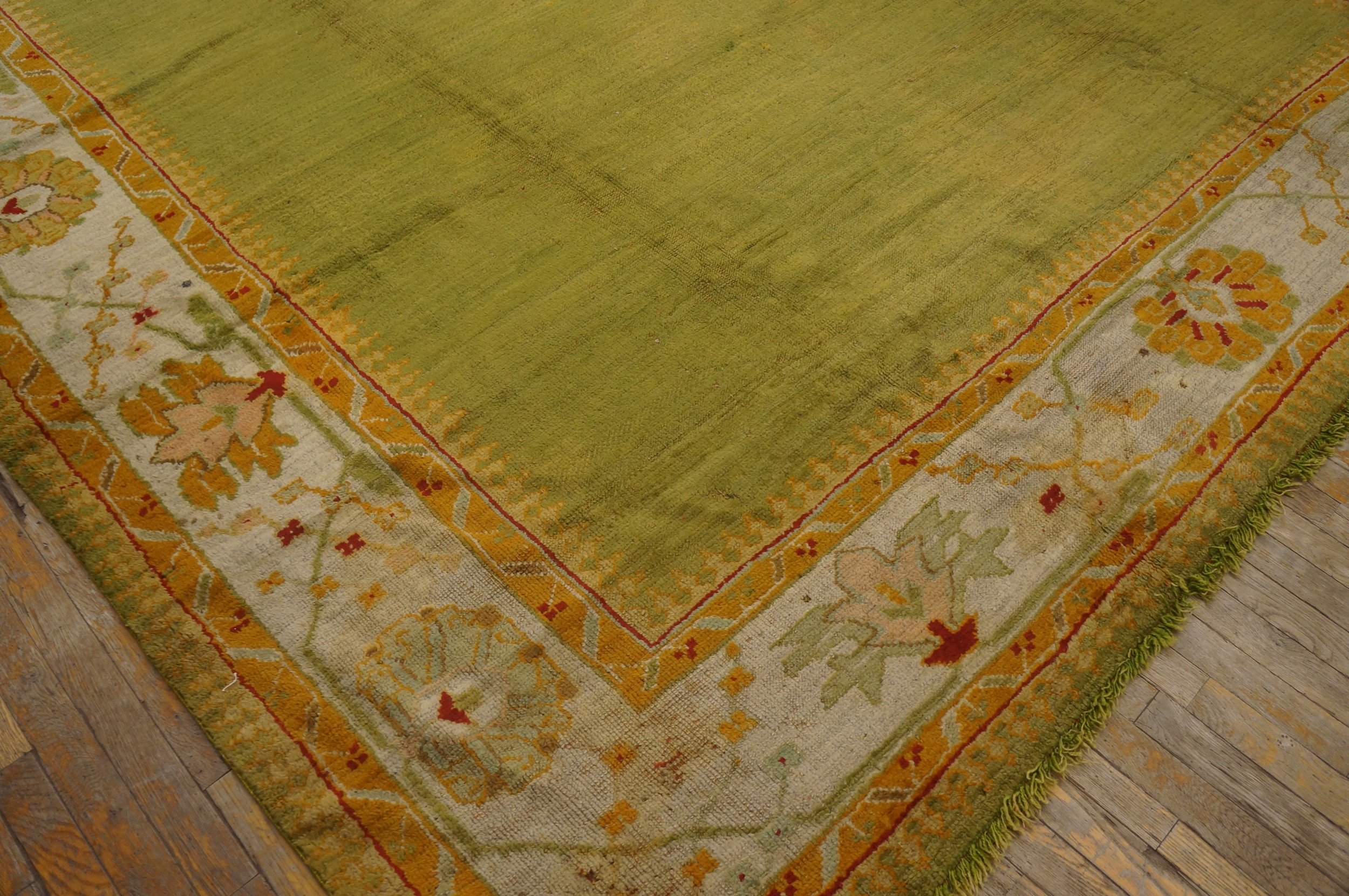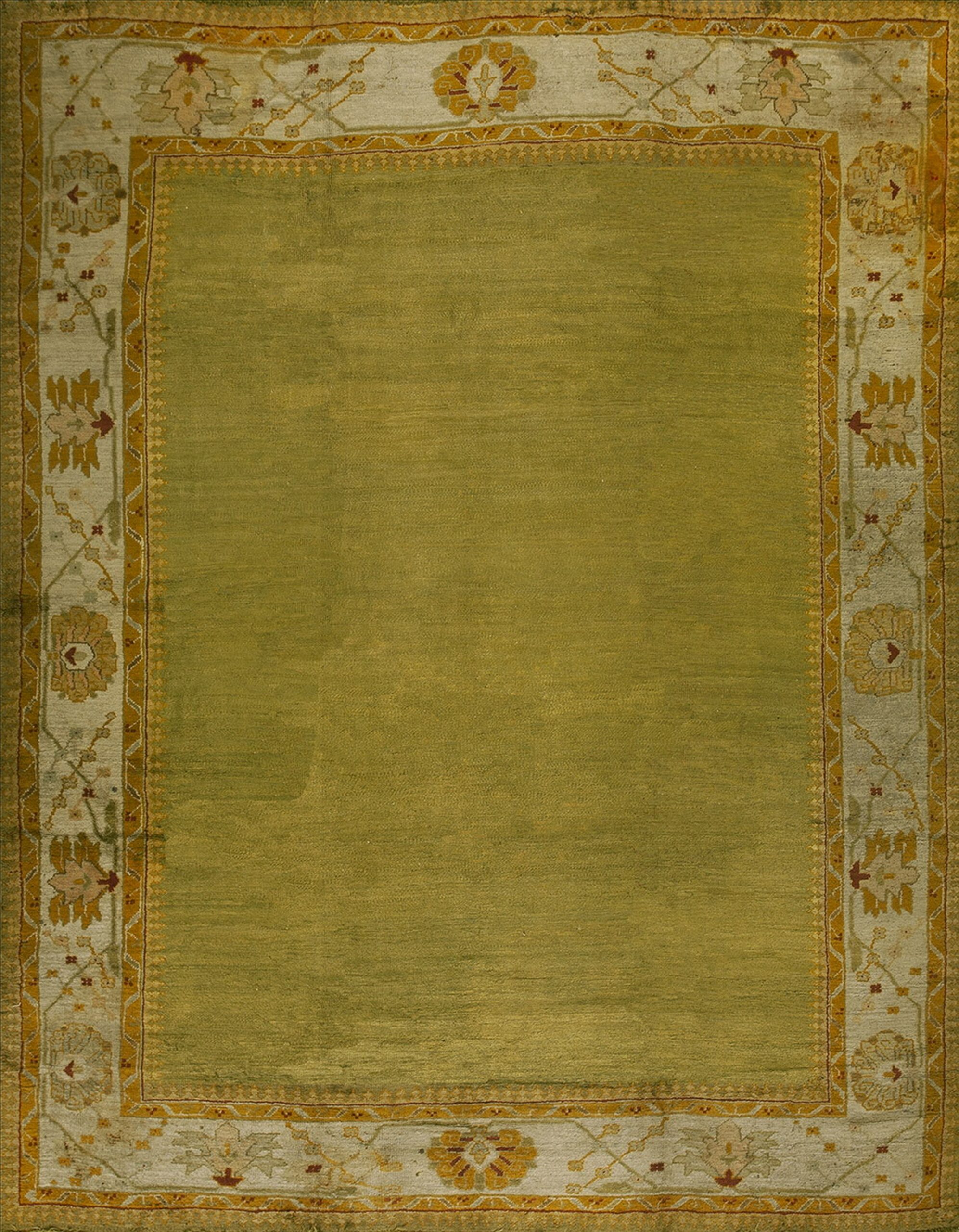 Antique Oushak Room Size Wool Green Rug, Circa Date: 1880s. This exceptional example of late 19th-century Anatolian weaving showcases the refined artistry characteristic of high-quality antique rugs. Its generous proportions and masterful design make it a commanding centerpiece.