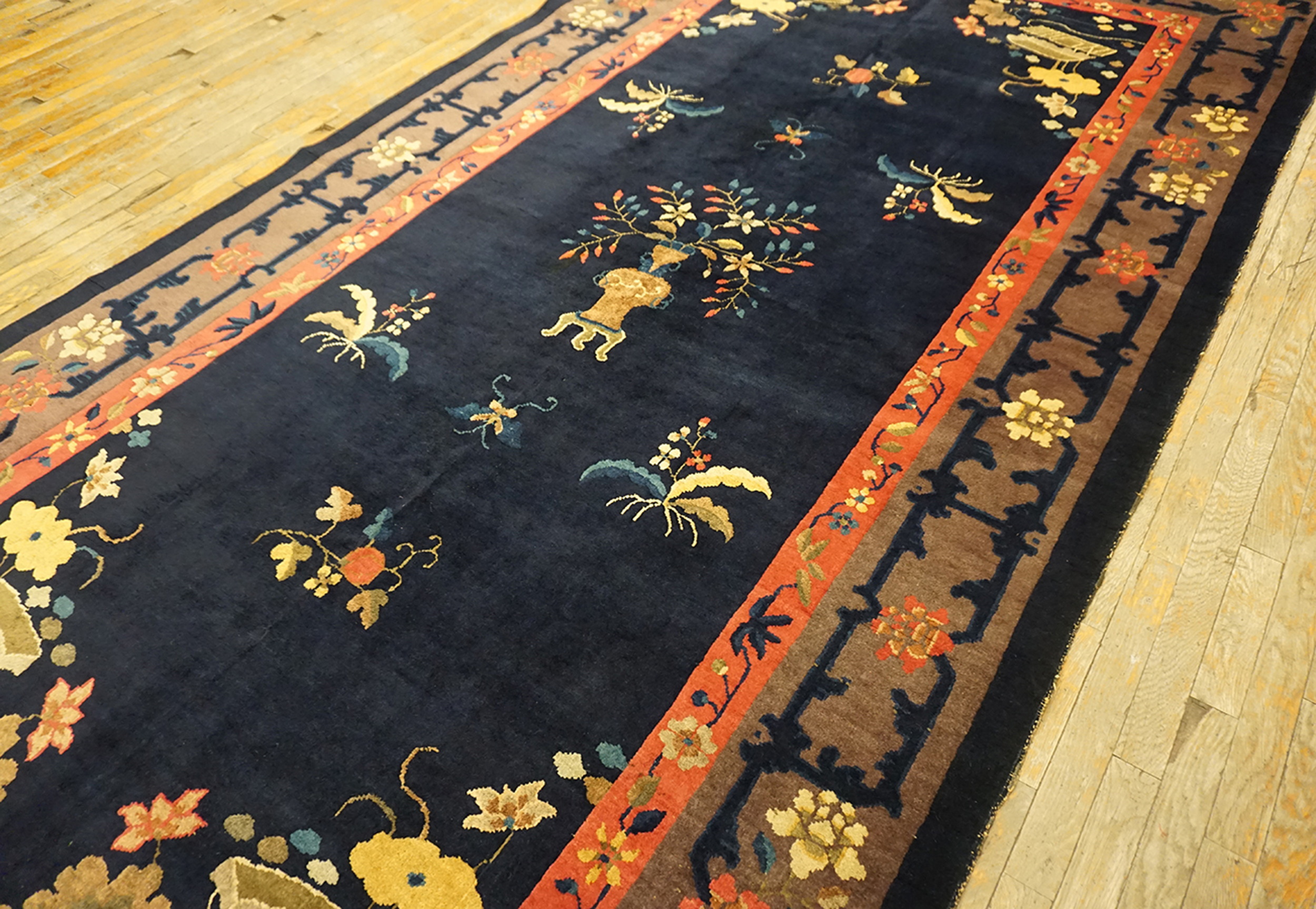 Hallway Runner Knotted Antique Chinese Blue – Peking 1920s Wool Rectangle Rug, Circa Date: 1920s. This exquisite piece represents the height of early 20th-century Chinese weaving, a period highly prized among collectors of antique rugs. The Peking style, known for its luxurious wool pile and sophisticated palette, offers a timeless elegance derived from traditional court designs.