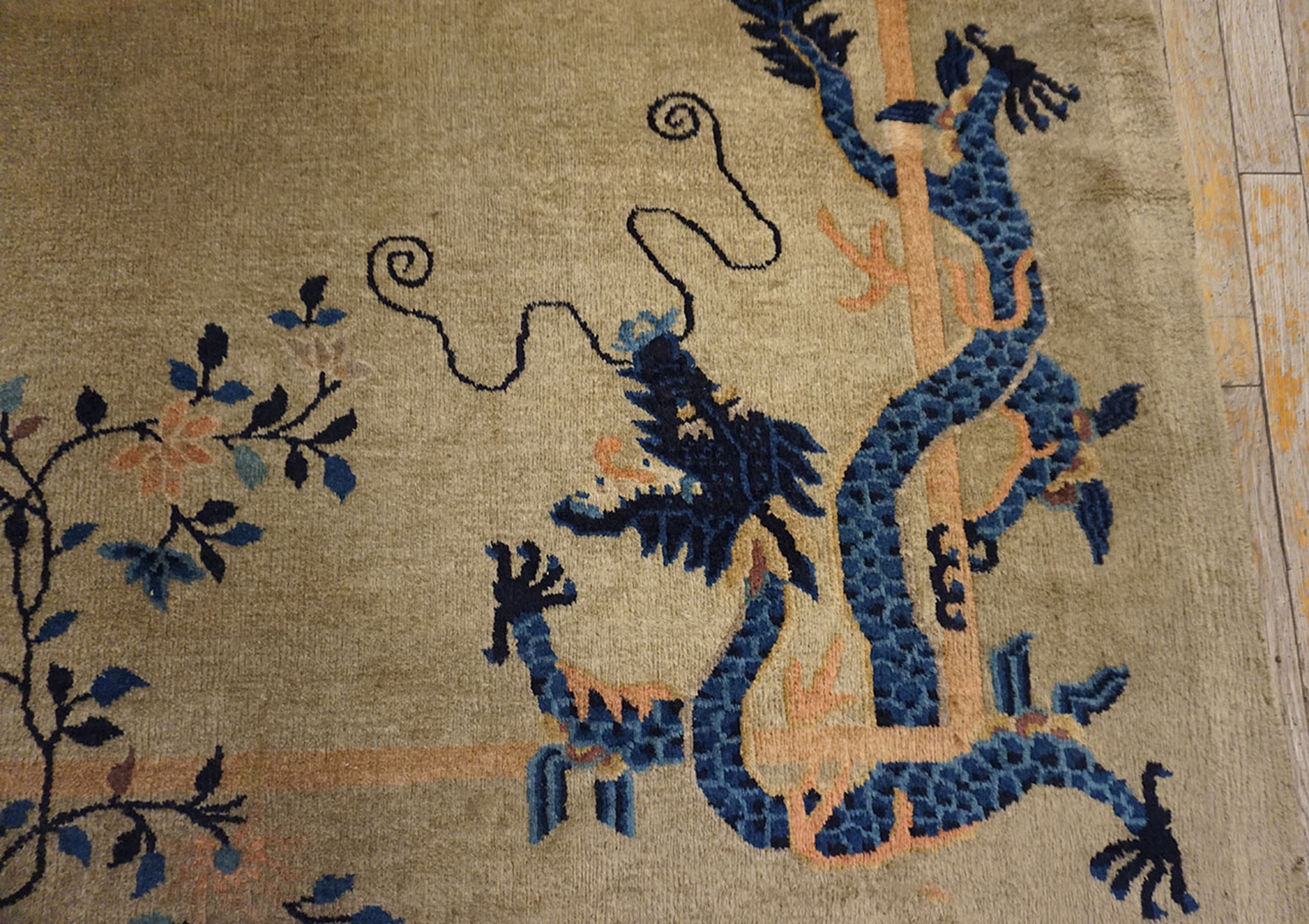 Hallway Runner Rectangle 1925 Ivory Antique Chinese – Peking Wool Knotted Rug, Circa Date: 1925. This exceptional piece is a classic example of Chinese Peking production from the early Republican era. Its elongated format is designed specifically for transitional spaces, making it a perfect hallway runner. This piece is sized for Room Size Rugs (6ft x 11.06ft).