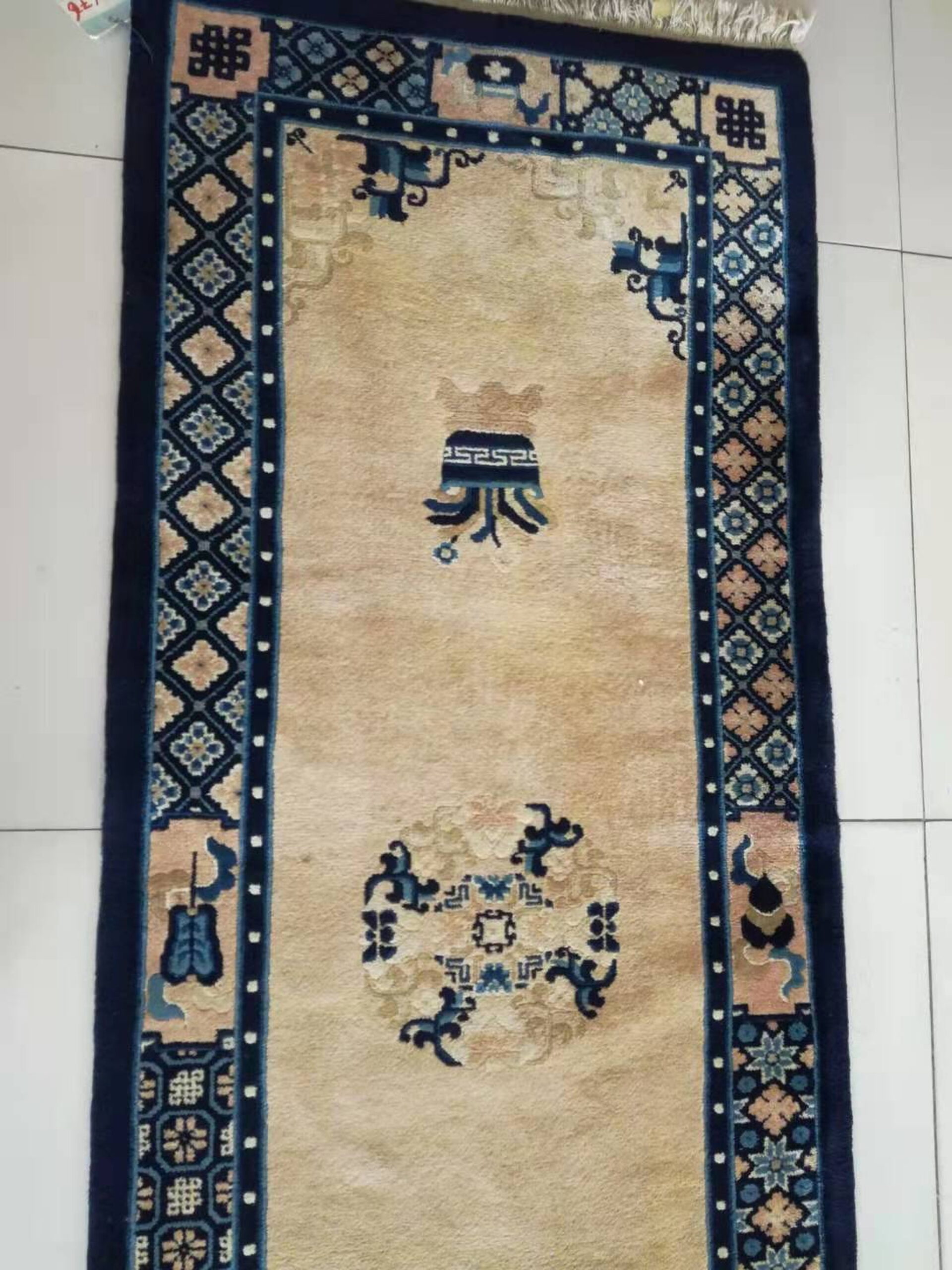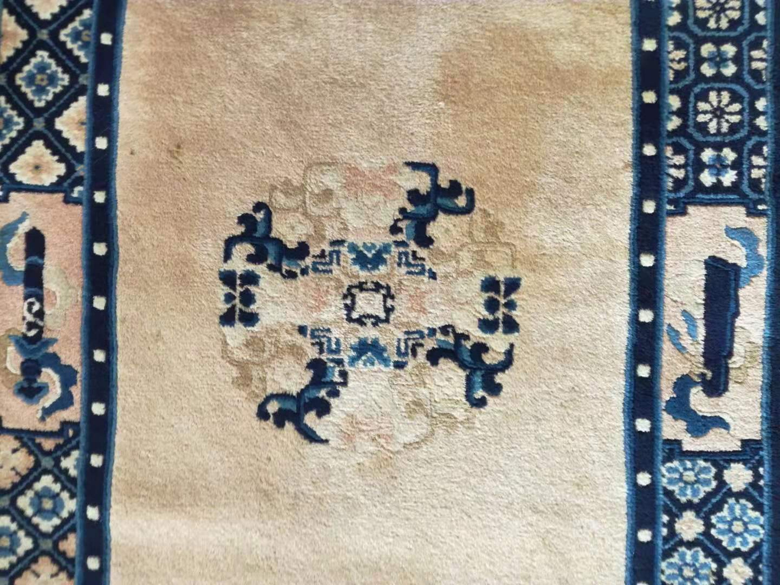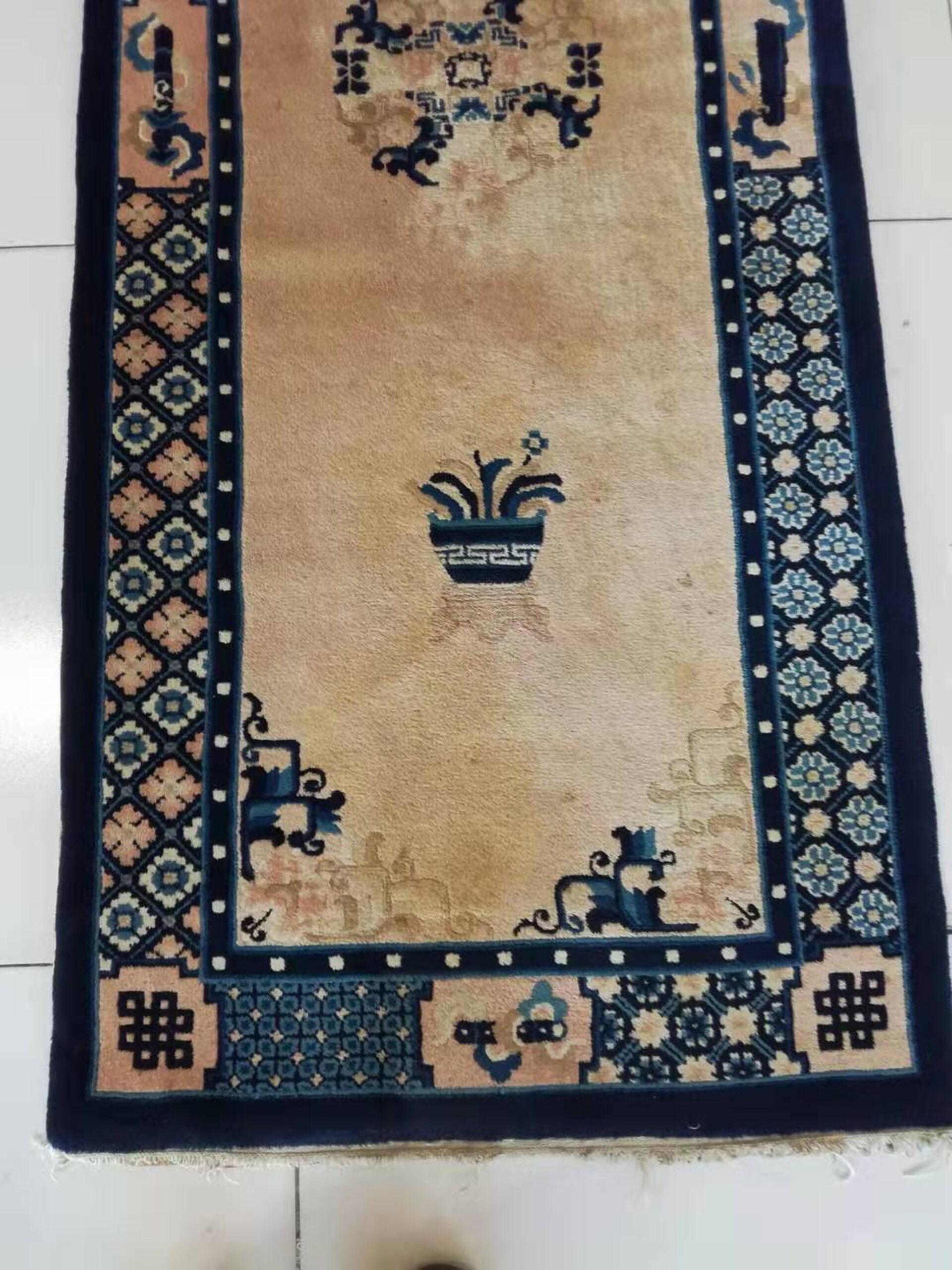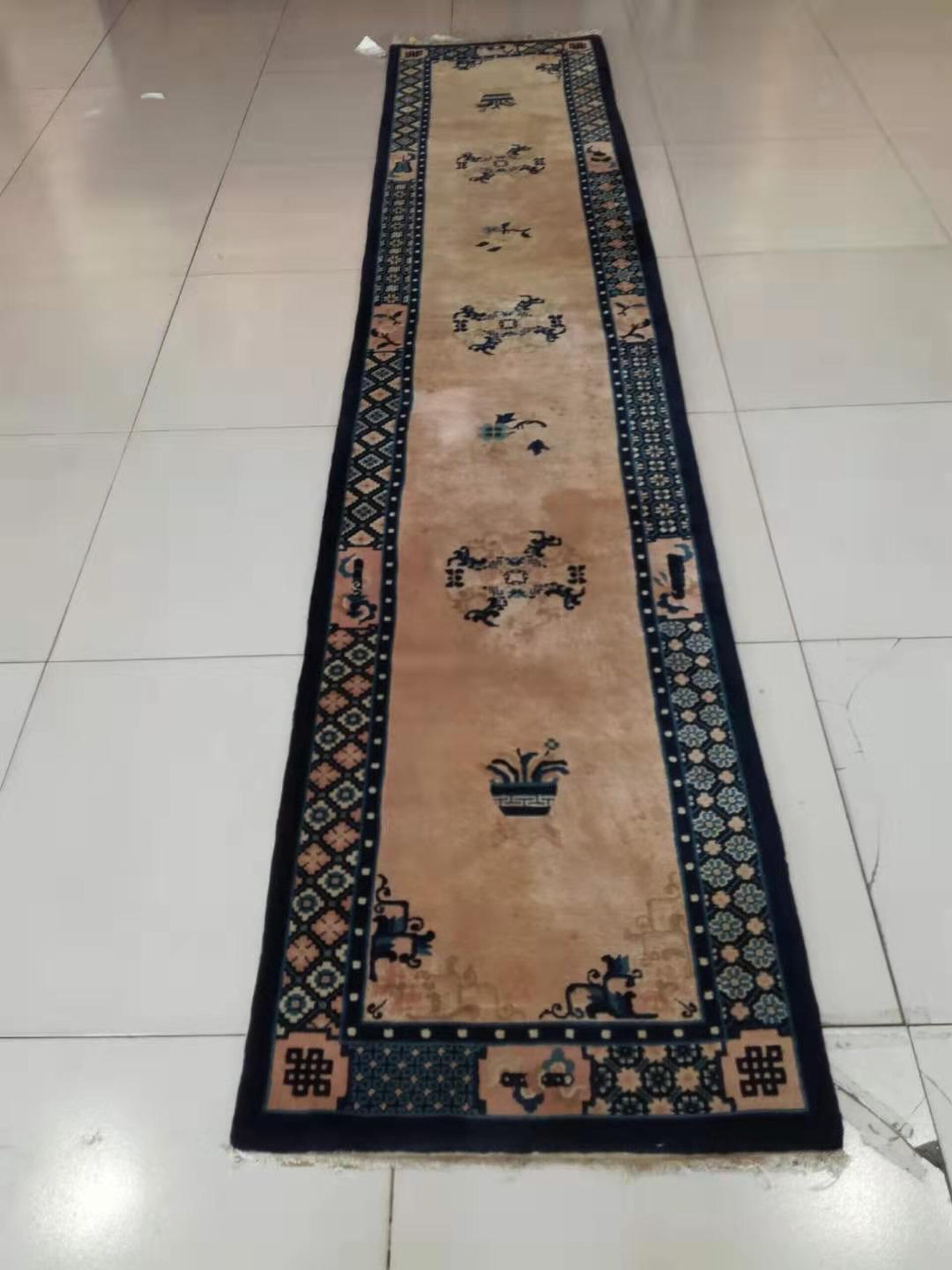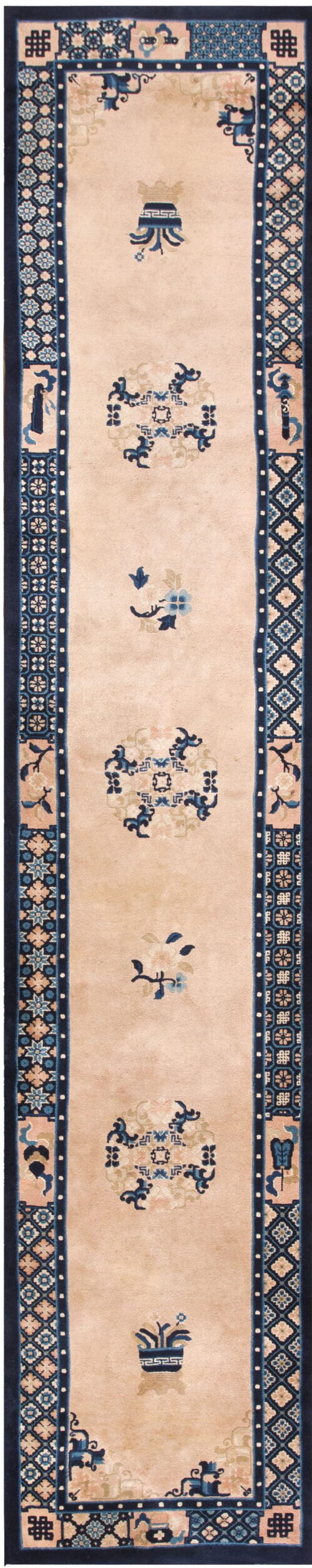 Hallway Runner Rectangle Wool Chinese – Peking Ivory Vintage Knotted 1960s Rug, Circa Date: 1960s. This exquisite piece, a classic example of mid-century Chinese weaving, is perfectly scaled for long corridors, serving as a distinctive hallway Runner. The Peking style, known for its refined wool quality and restrained color palette, is immediately evident in this handsome textile.