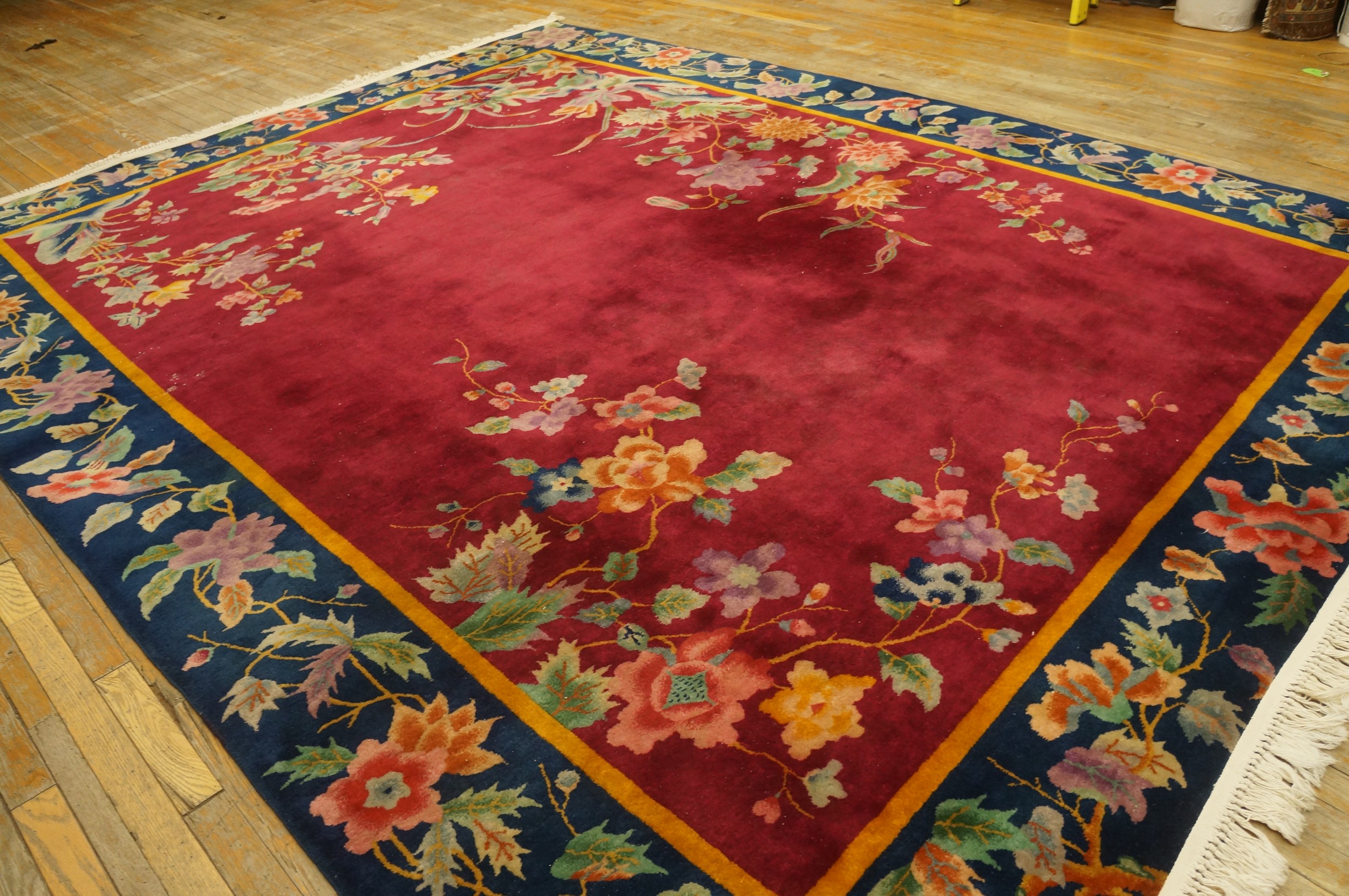 Woven with a substantial wool pile, this hand-knotted textile retains excellent condition commensurate with its age. Given its generous dimensions (8.1ft x 11.02ft), this piece is ideally suited for placement as one of our distinctive room size rugs, capable of anchoring a grand living space or formal dining area with its unparalleled color and historical presence.