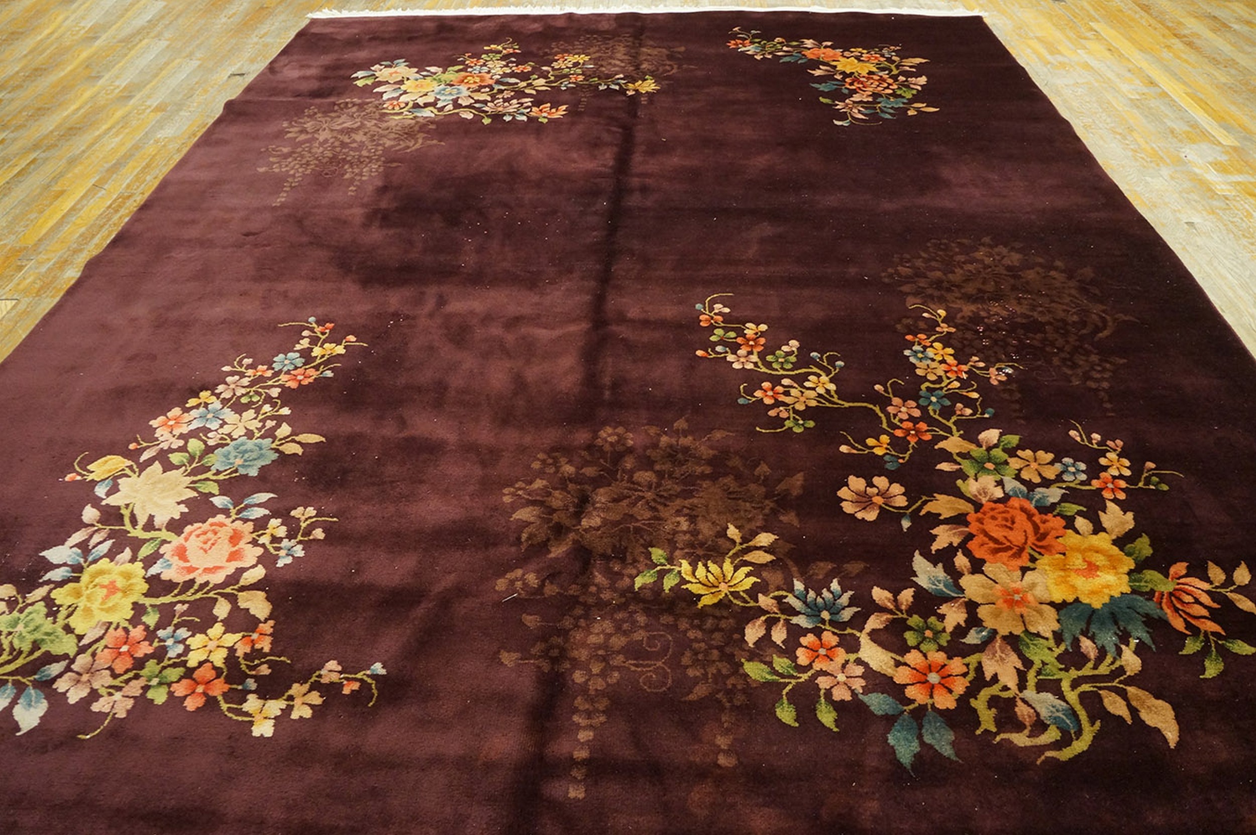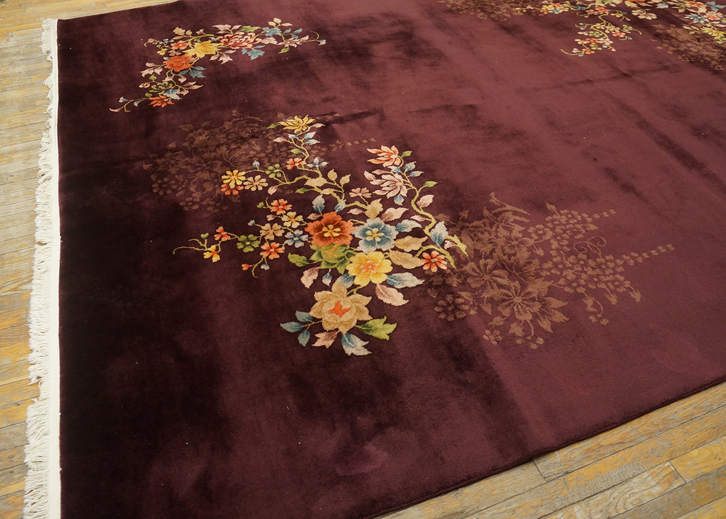 Hand Knotted Pile Wool Rectangle Purple / Lavender Mauve 1920s Antique Rug, Circa Date: 1920s. This exceptional piece captures the opulent aesthetic of the Art Deco period, presenting a sophisticated example of antique rugs crafted from luxurious hand-knotted wool.