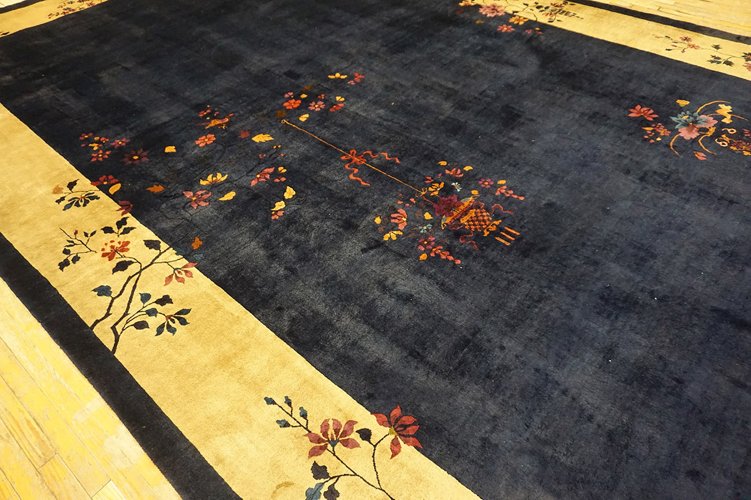 Measuring as a true large oversized rug, this piece is perfectly suited to anchor a grand living space or dining room, offering both unparalleled softness underfoot and a significant architectural presence. This hand-knotted wool textile is not merely floor covering, but a sophisticated statement of early 20th-century decorative art.