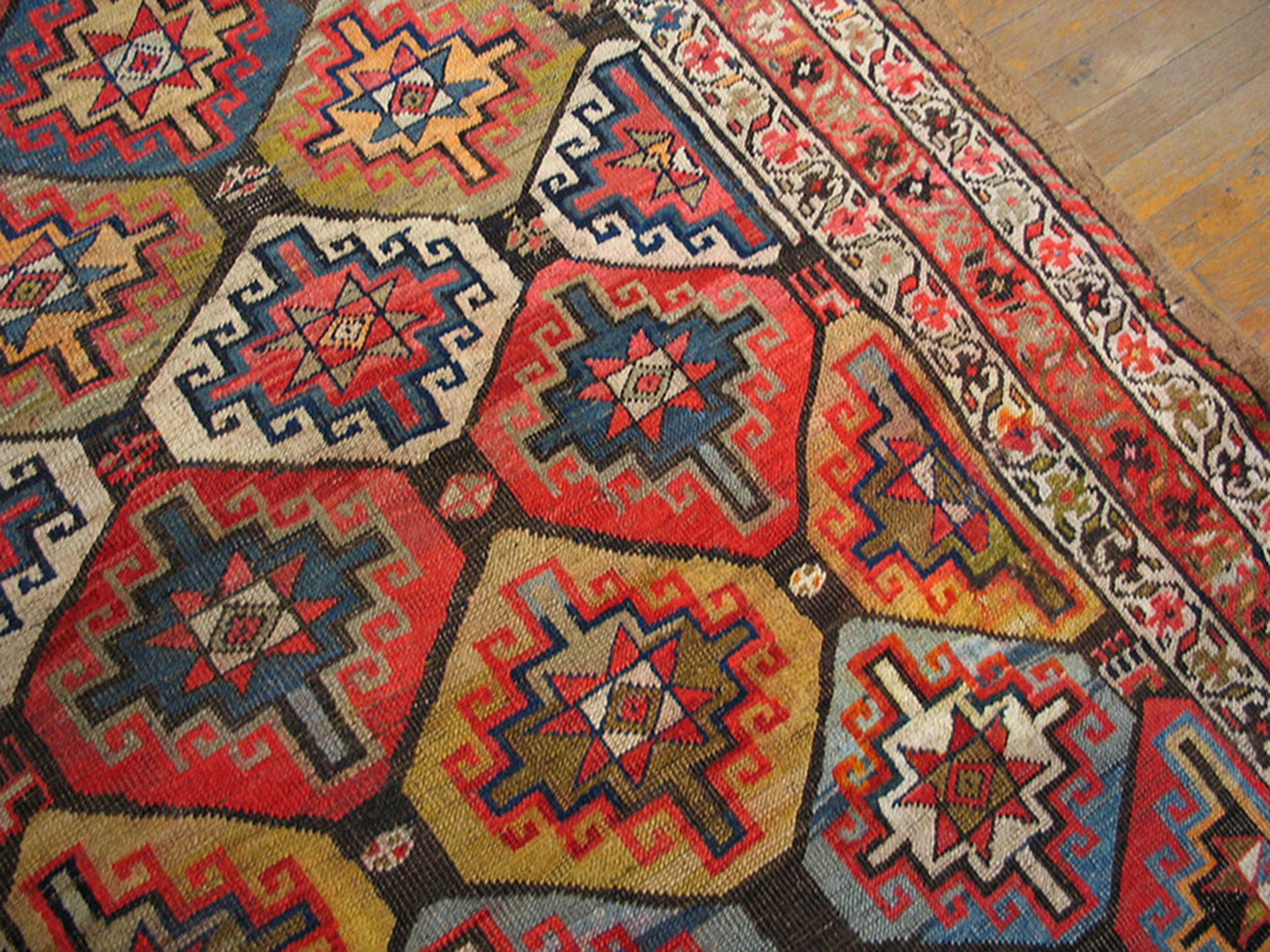 The field features a tightly packed, repeating lattice of stylized geometric medallions and star motifs. This dense arrangement creates a powerful visual rhythm characteristic of allover rugs, ensuring the eye travels smoothly across the entire composition rather than resting on a single central element. The complex design is framed by multiple narrow guard borders featuring delicate floral and vine patterns.
