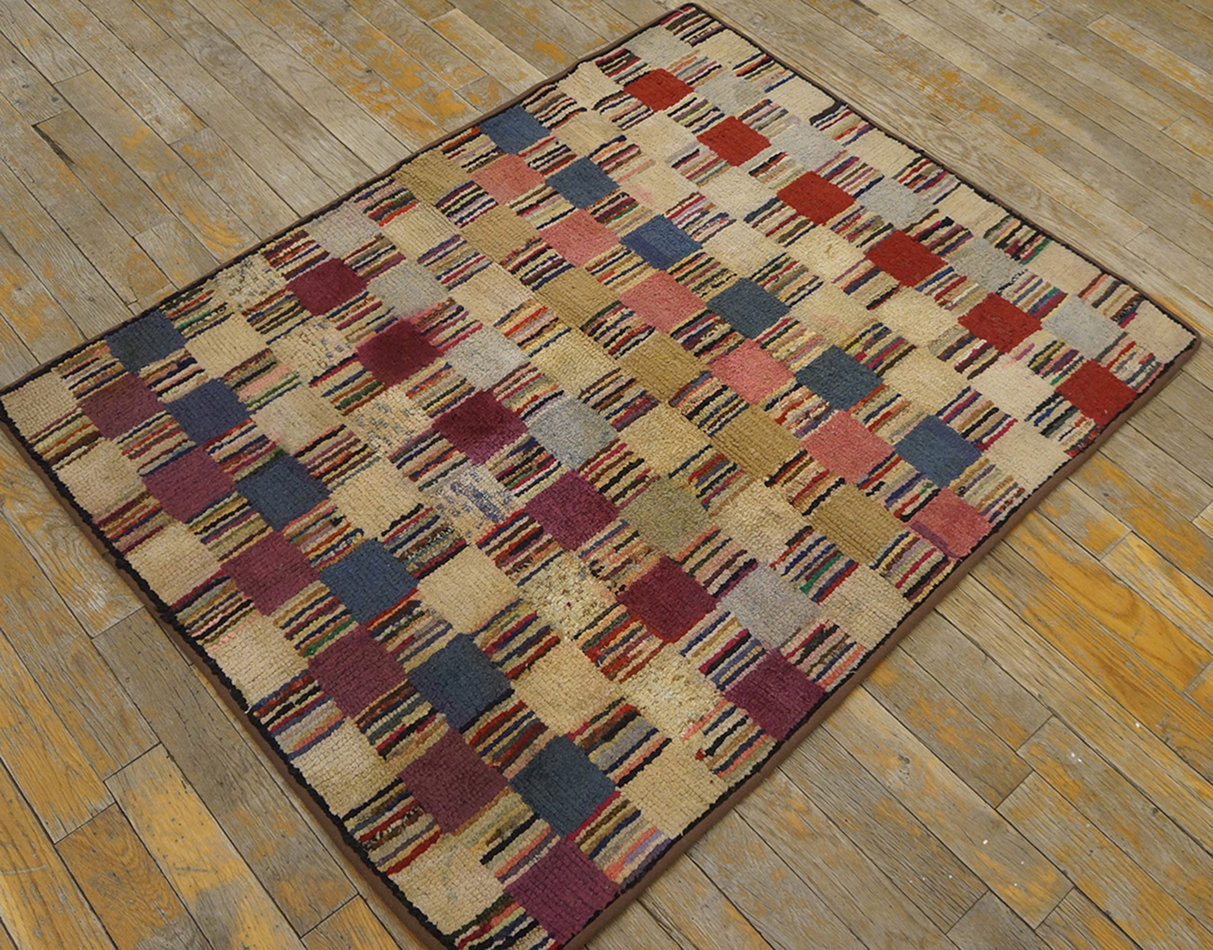 As a genuine piece from the 1930s, this rug offers a unique glimpse into early 20th-century American textile history. The enduring quality and folk art aesthetic make it a desirable addition to any collection of authentic antique rugs, providing warmth and character to modern or traditional interiors alike.
