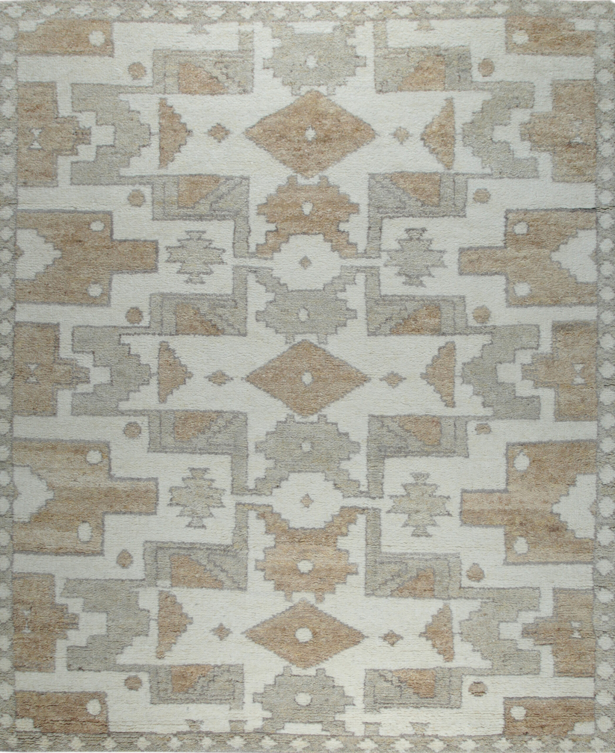 A striking central medallion, composed of interlocking diamonds and stepped geometric forms, anchors the design, echoing the tribal heritage while maintaining a clean, architectural feel. Hand-knotted from high-quality wool, the density and texture of this piece ensure longevity and comfort underfoot, making it suitable for high-traffic areas and ideal as one of our essential room size rugs.